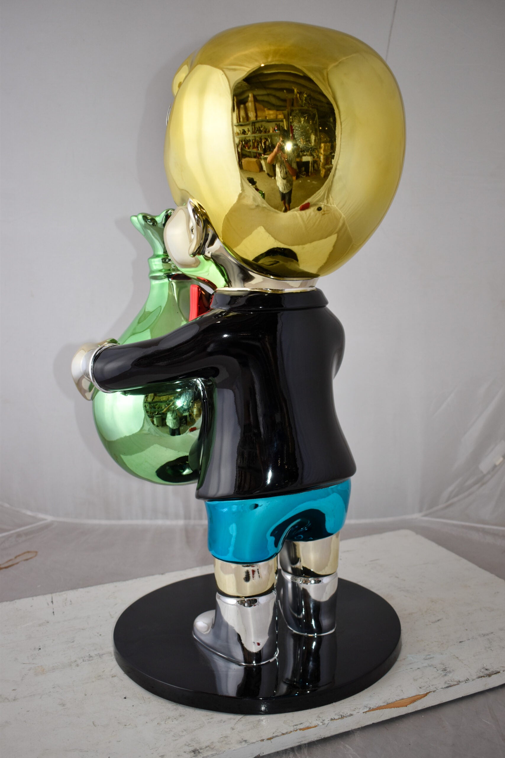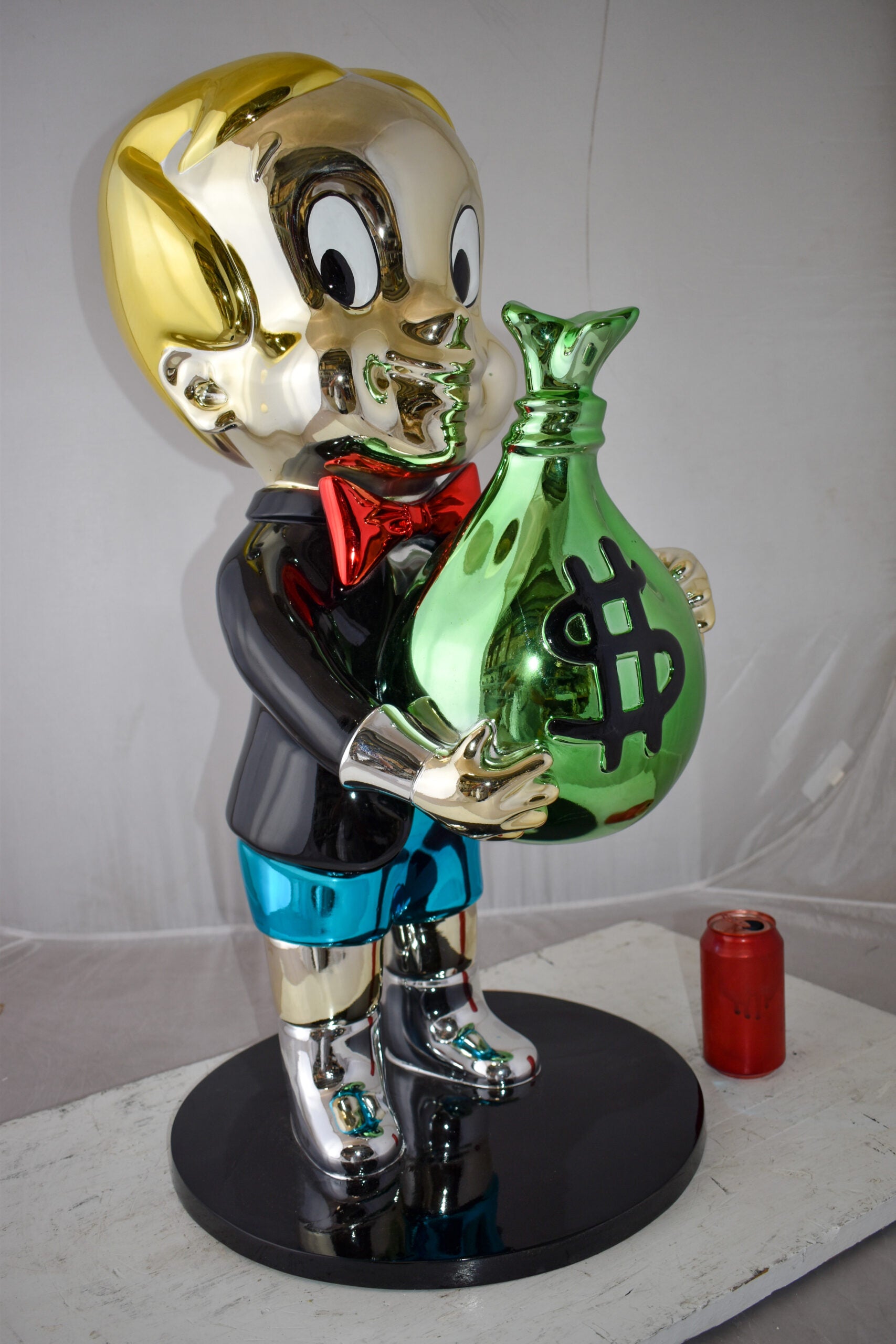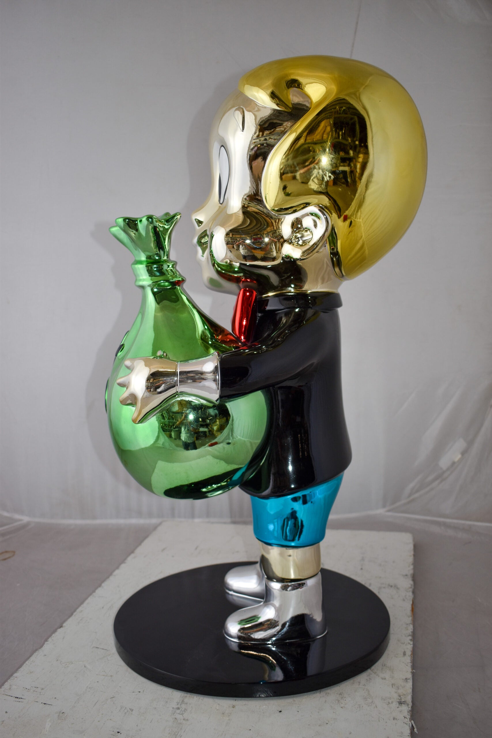 Excited Cartoon Boy Holding Money Bag Resin Statue Large Size: 16" x 16" x 32"H