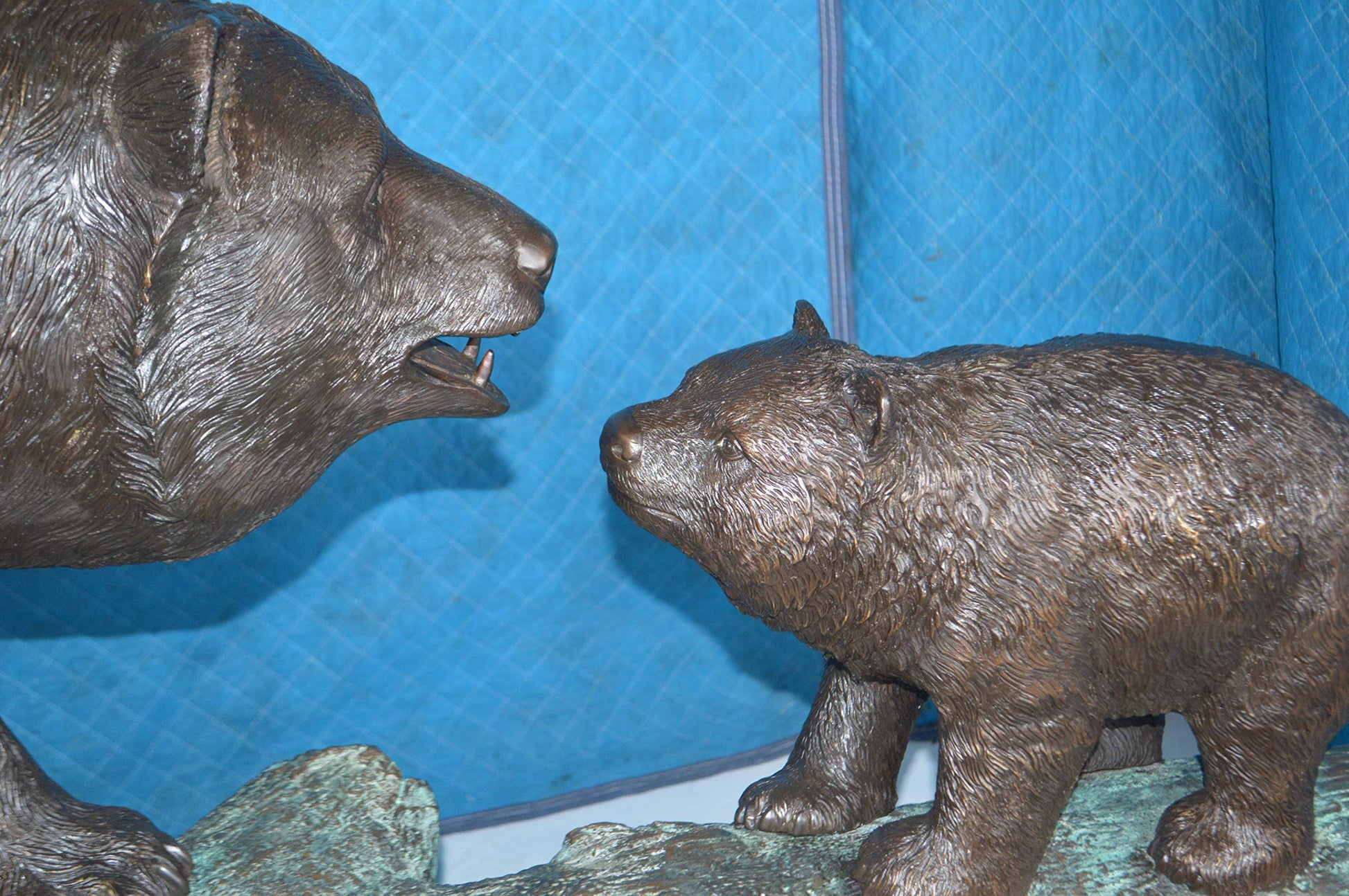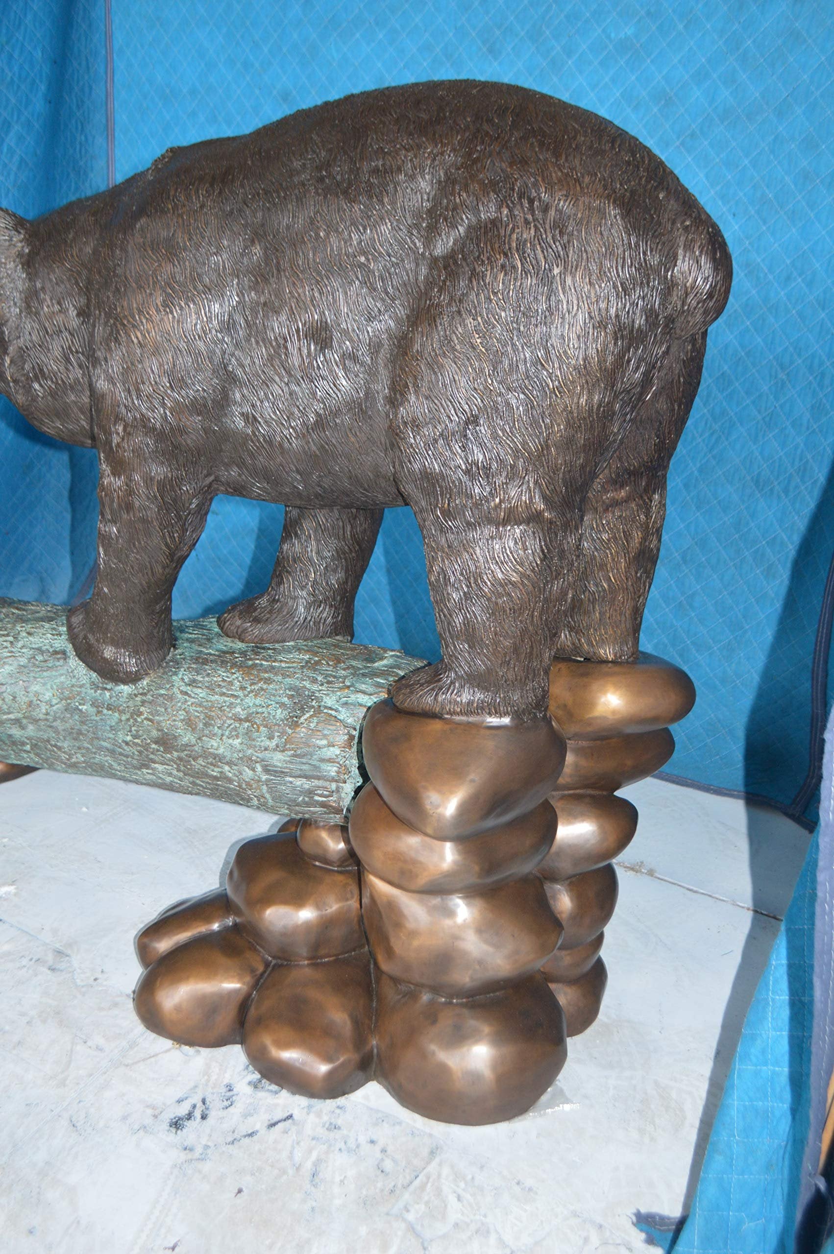 Family Bear on log giant bronze statue - Size: 61"L x 34"W x 45"H.