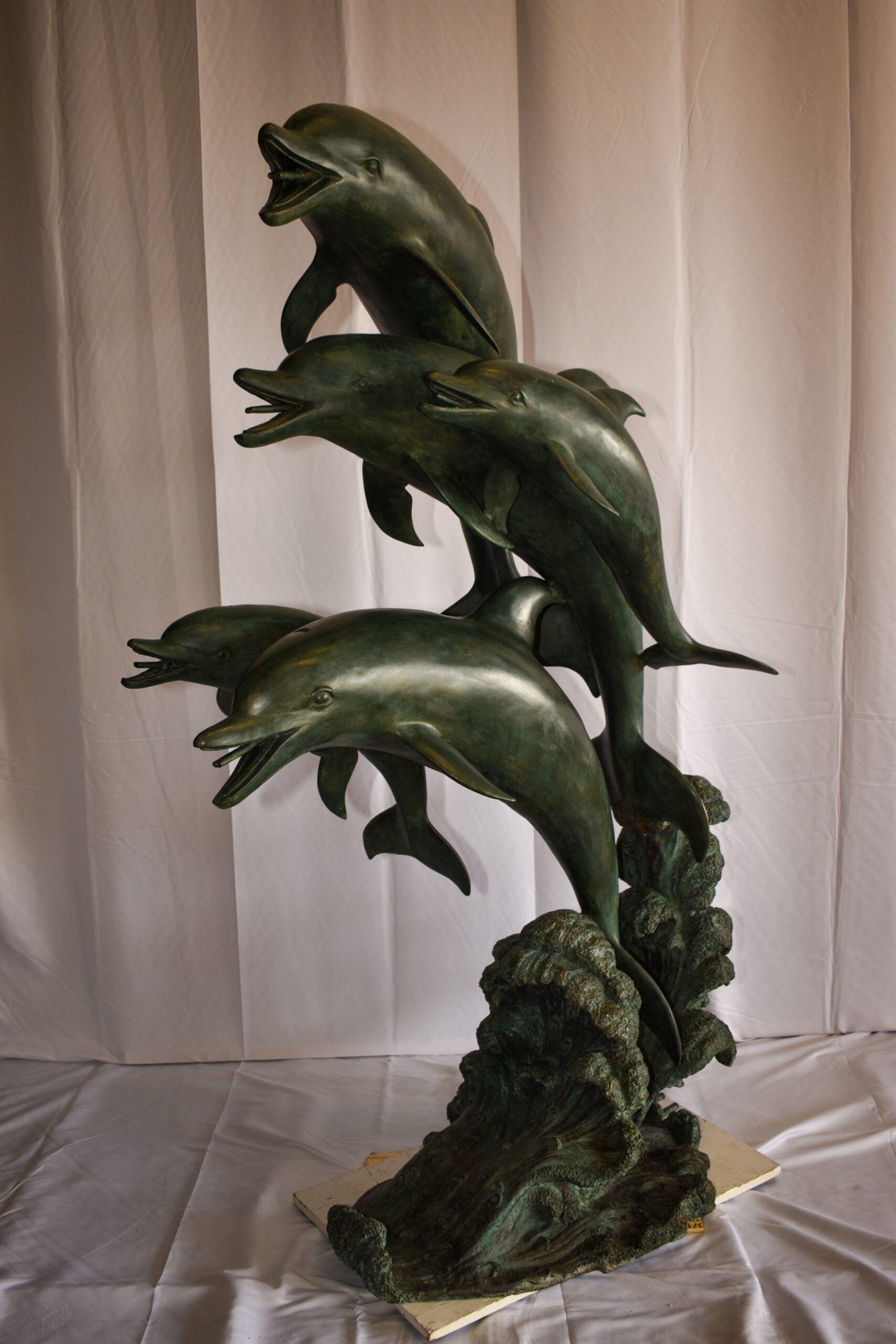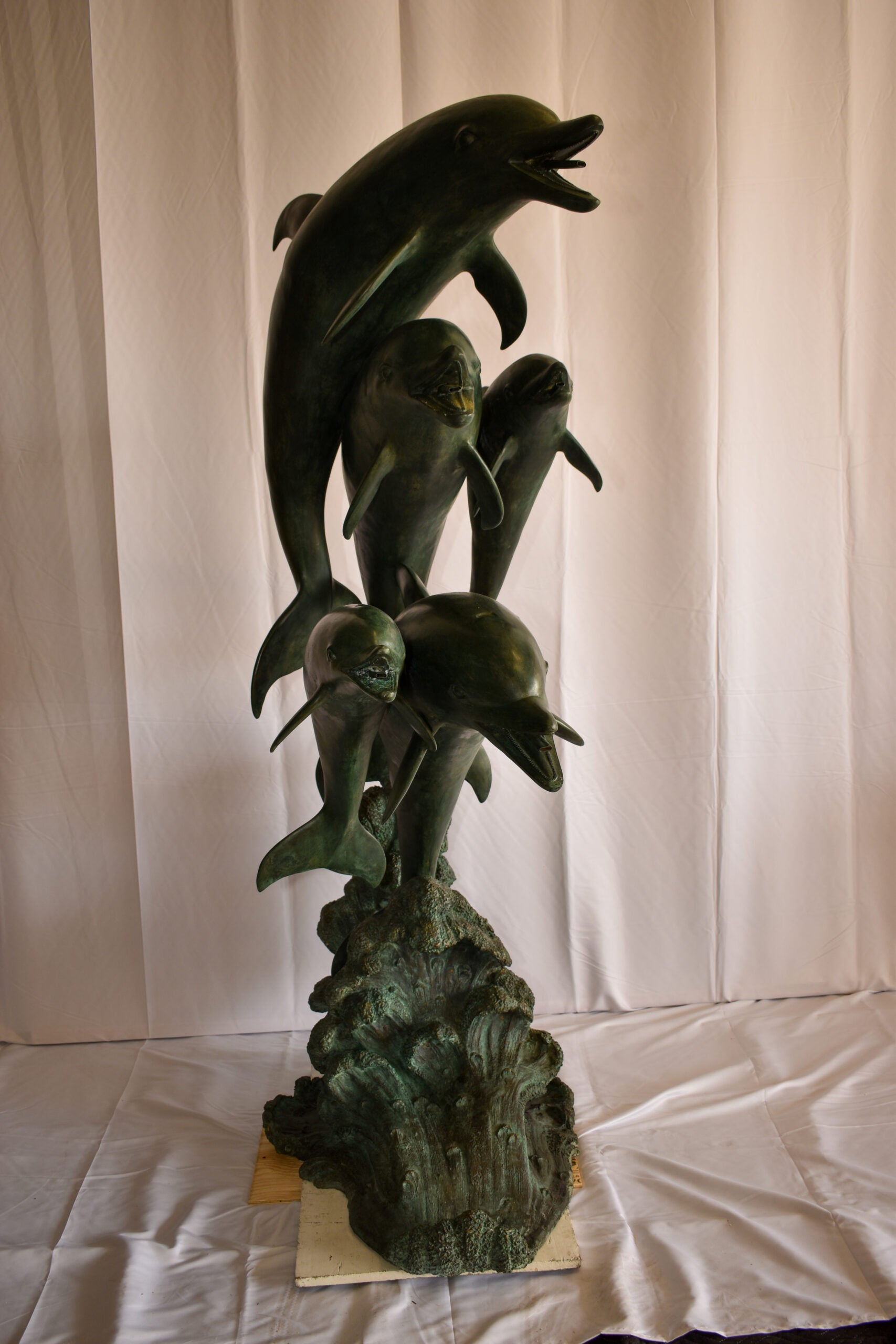 Five life size Dolphins bronze fountain Green Patina 47" x 27" x 84"H