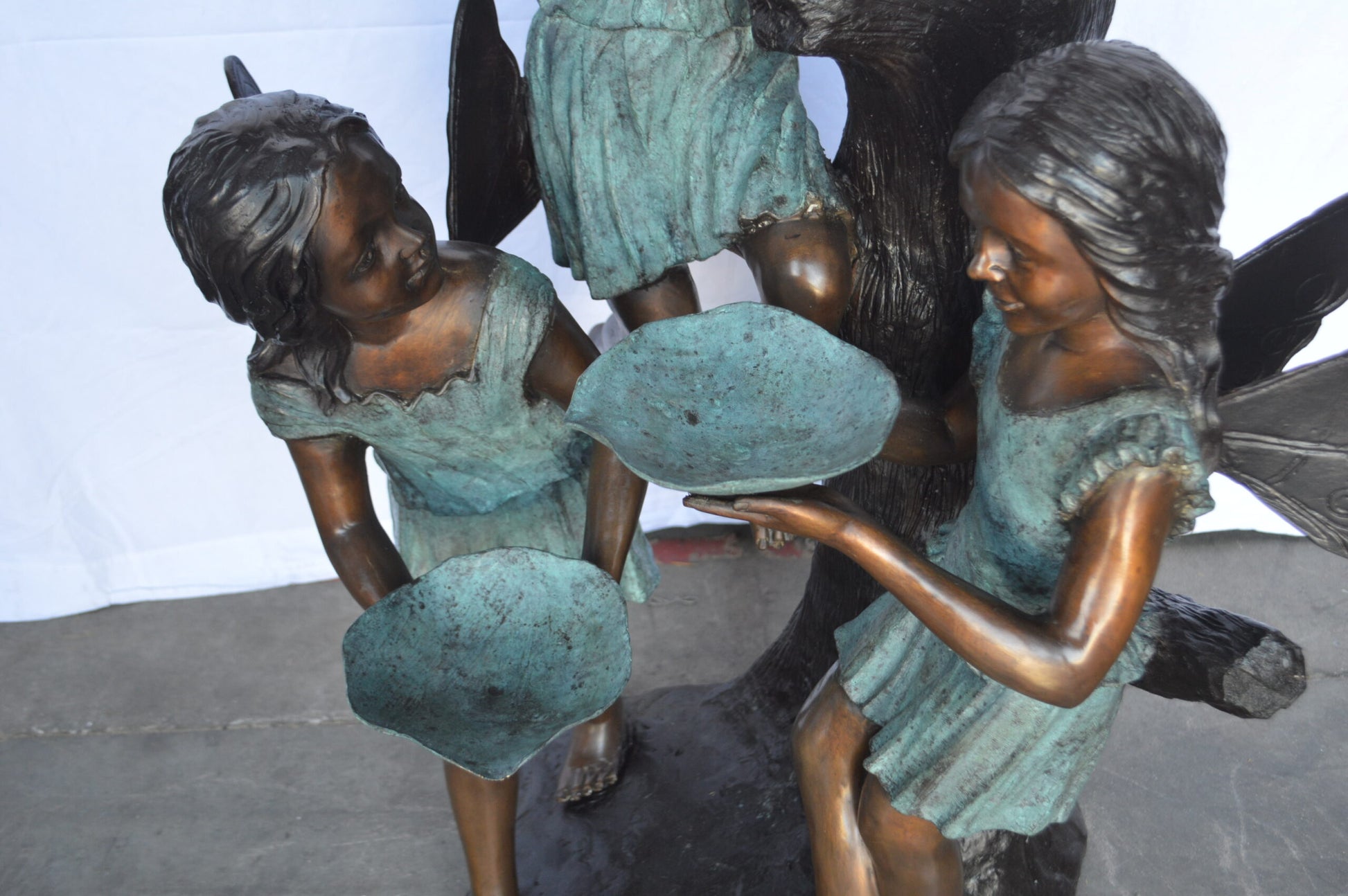 This beautiful, large, hand-cast bronze Sculpture depicts four angels playing with outside with water. The statue is equipped with a hose that leads water, with the use of a fountain pump (pump is not included) to the top angel’s shell, and from there spill by gravity from one shell to another. The figures feature a bronze finish that has been crafted to create aged, weathered nuance. This Sculpture would be a great addition to your pond, patio, garden, lawn, or anywhere else. Size: 35"L x 28"W x 66"H. Weight is: 191Lb