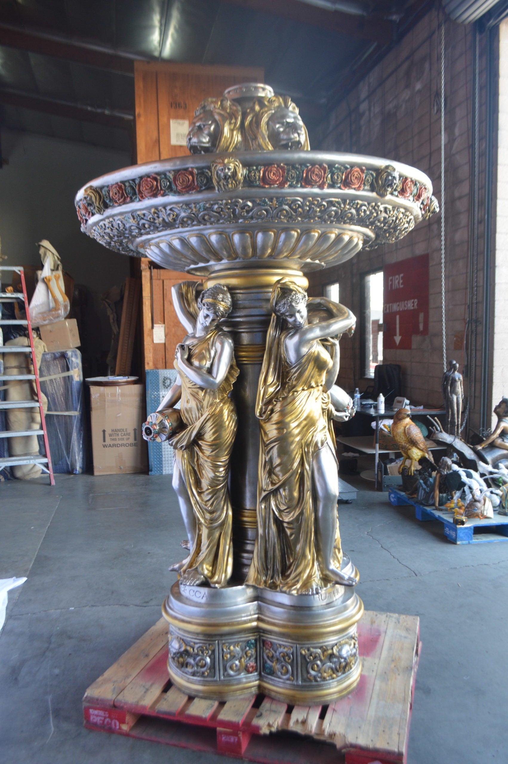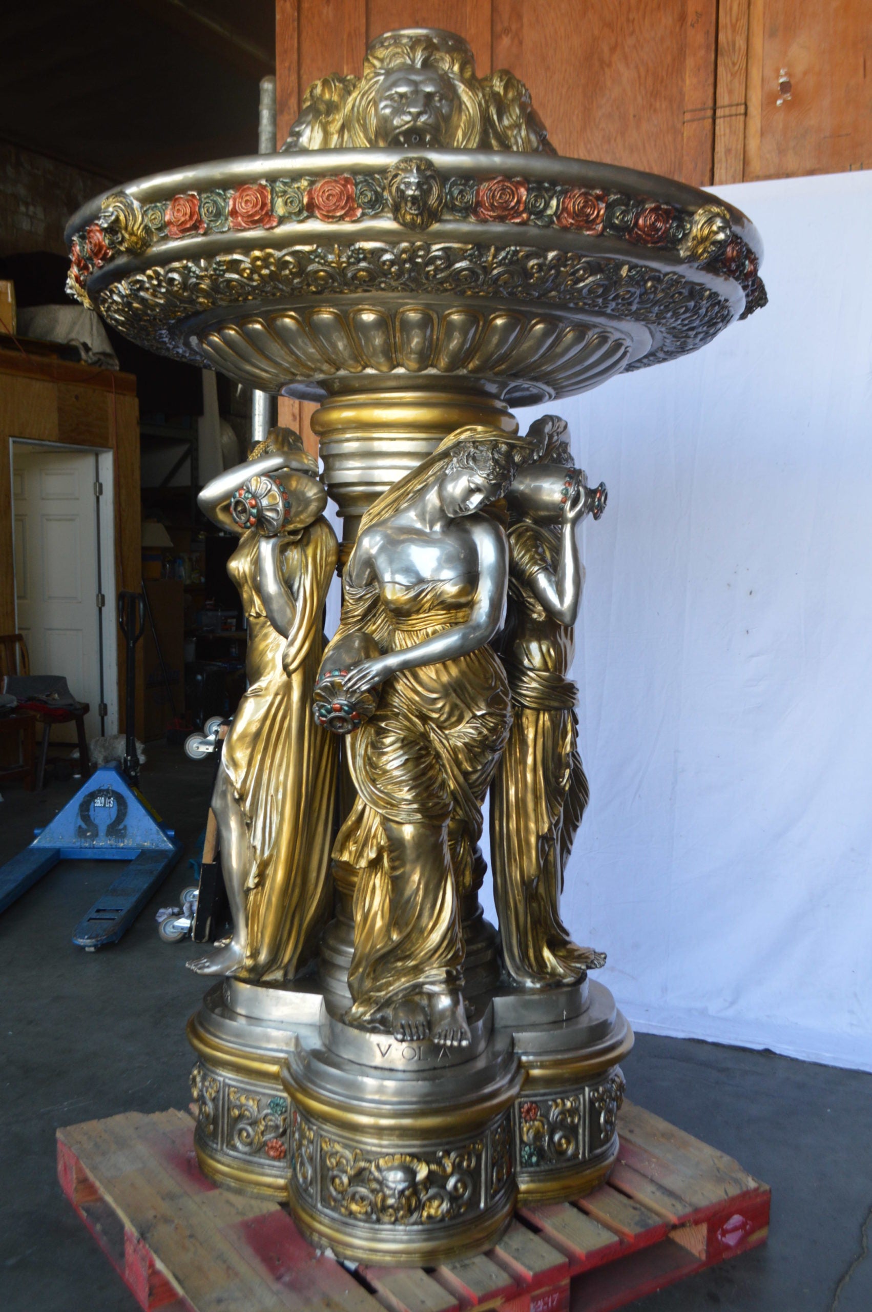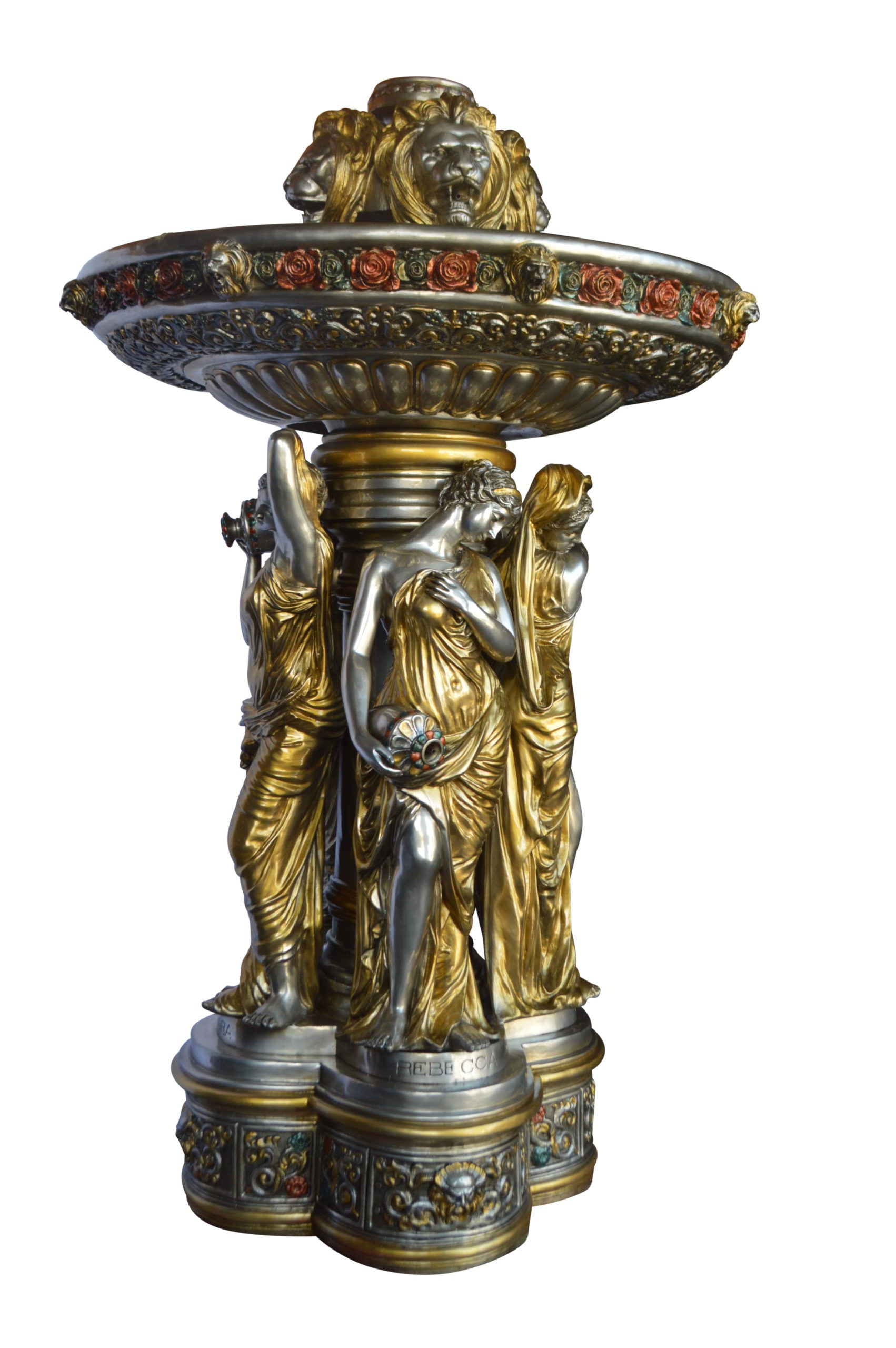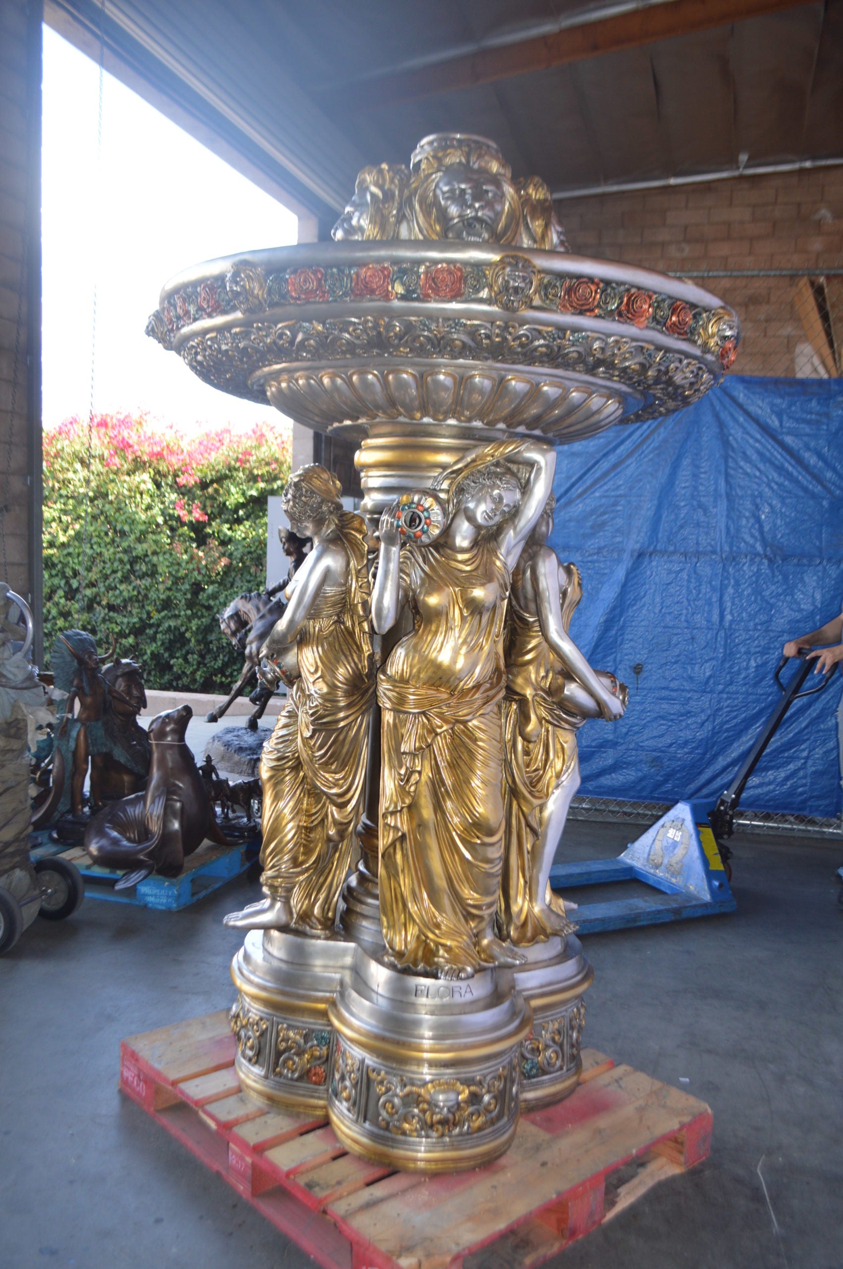 This beautiful and glorious bronze statue is of a four seasons fountain is beaming with beauty and class. The graceful fountain uses a process known as enameling over bronze, to create the gold finish, making it a beautiful addition for any outdoor area. (Pump is not included). Size: 53"L x 53"W x 96"H. Weight is: 679Lb