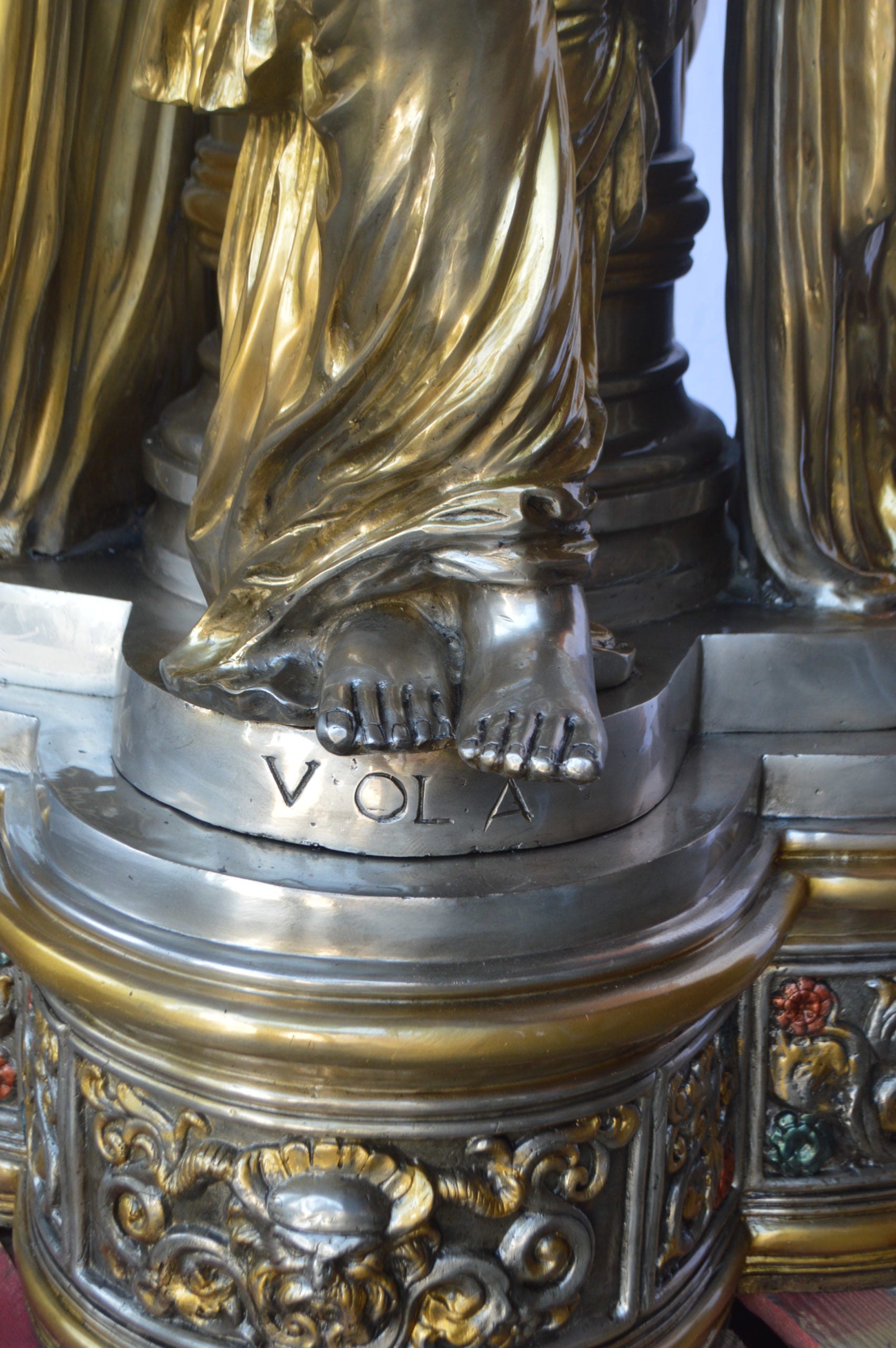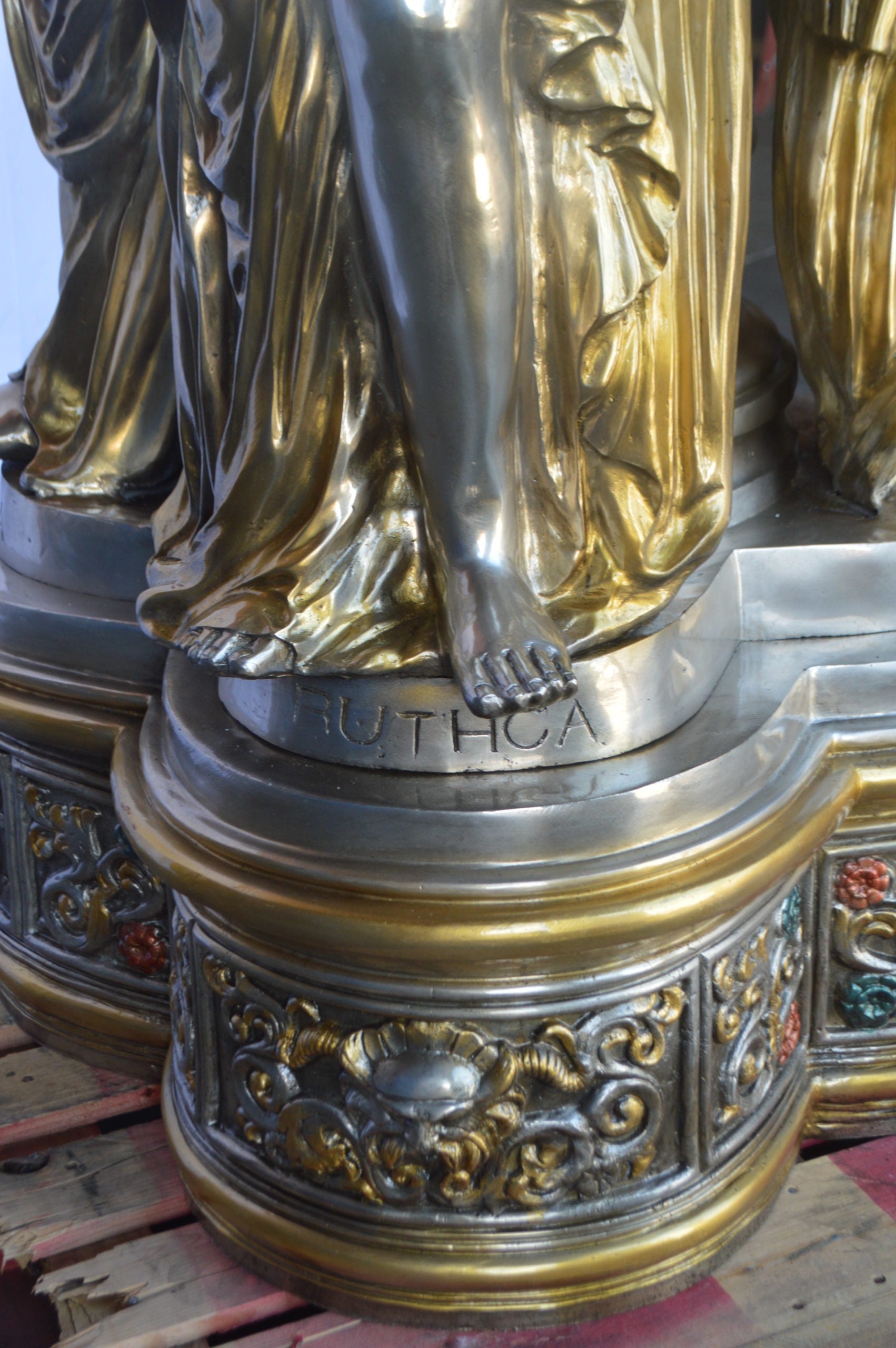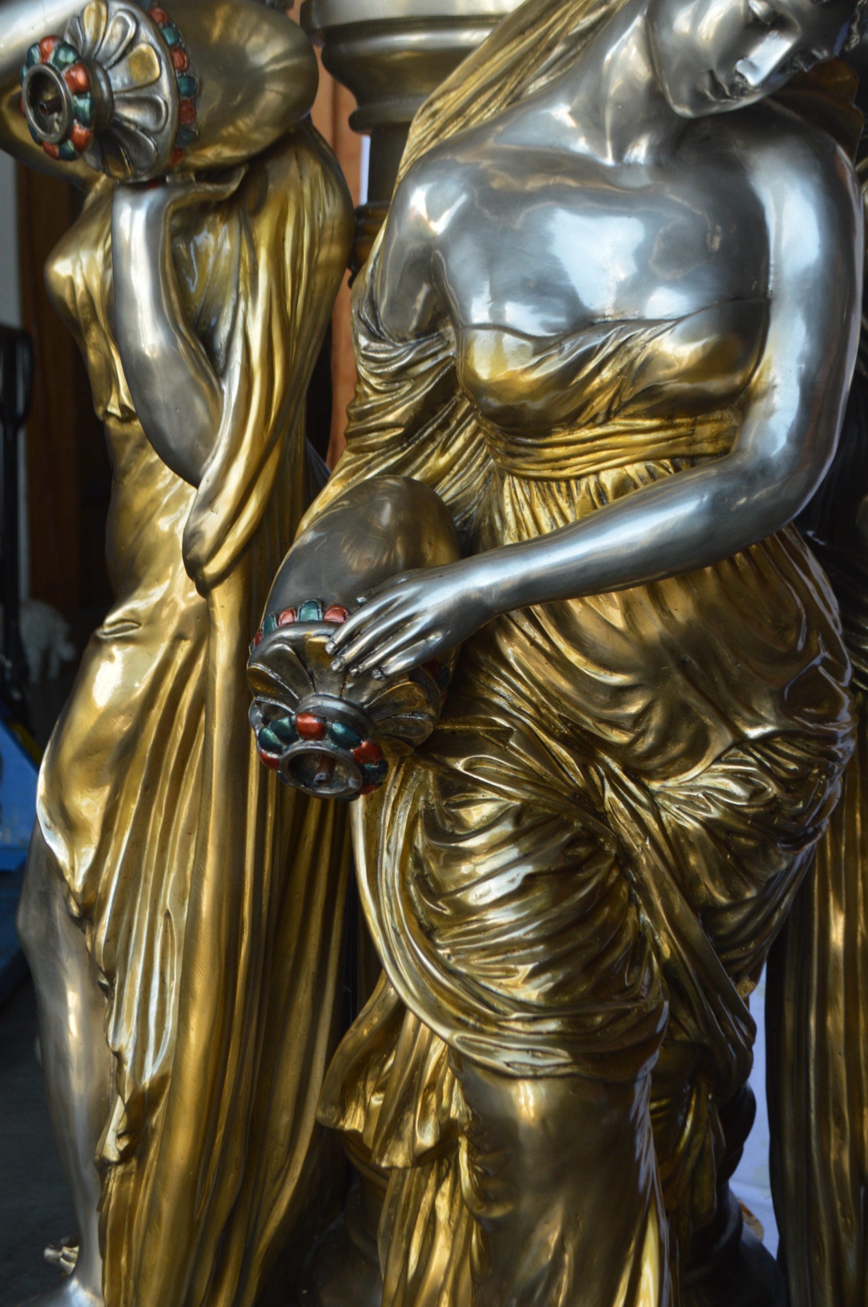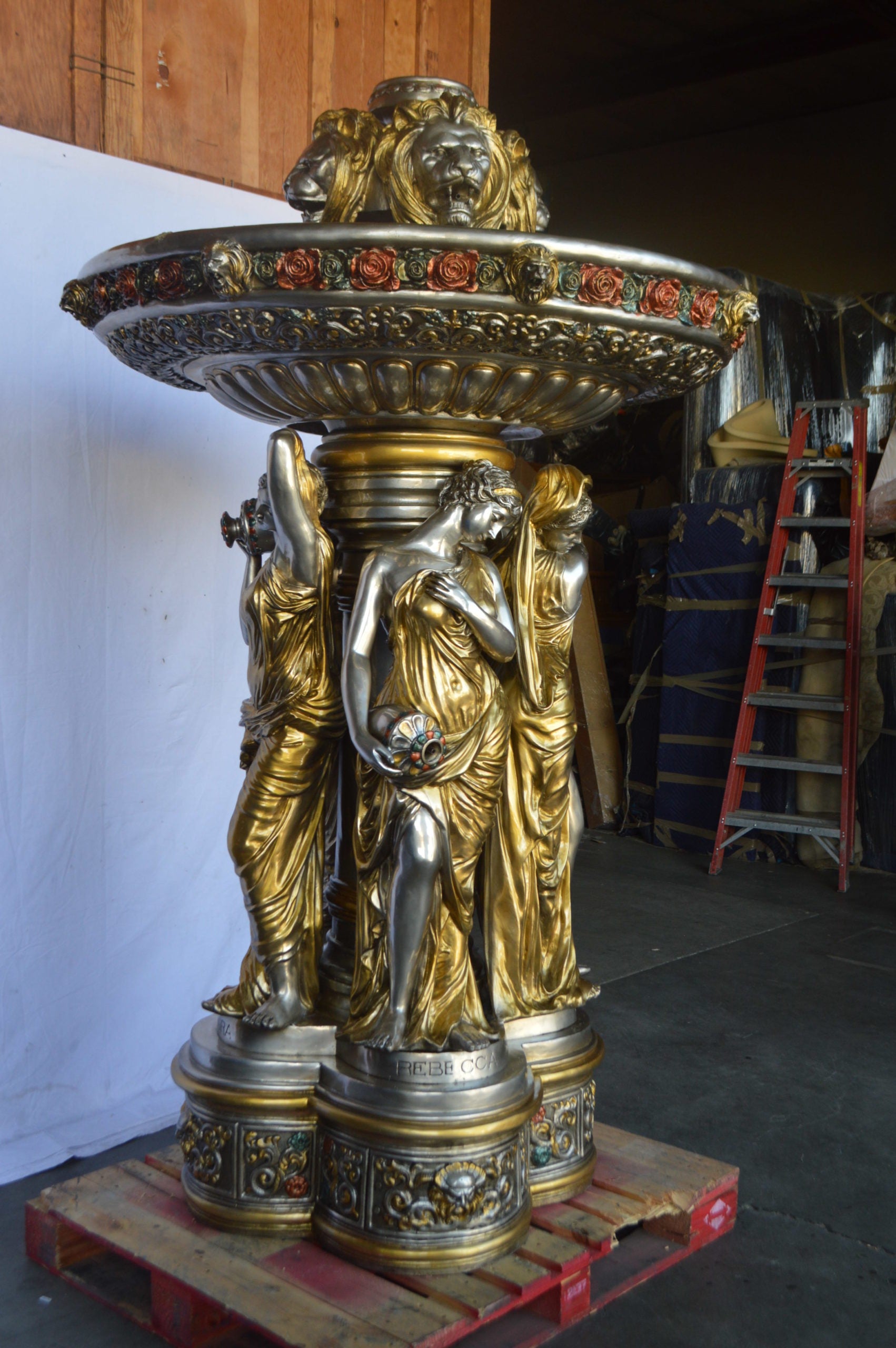 This beautiful and glorious bronze statue is of a four seasons fountain is beaming with beauty and class. The graceful fountain uses a process known as enameling over bronze, to create the gold finish, making it a beautiful addition for any outdoor area. (Pump is not included). Size: 53"L x 53"W x 96"H. Weight is: 679Lb