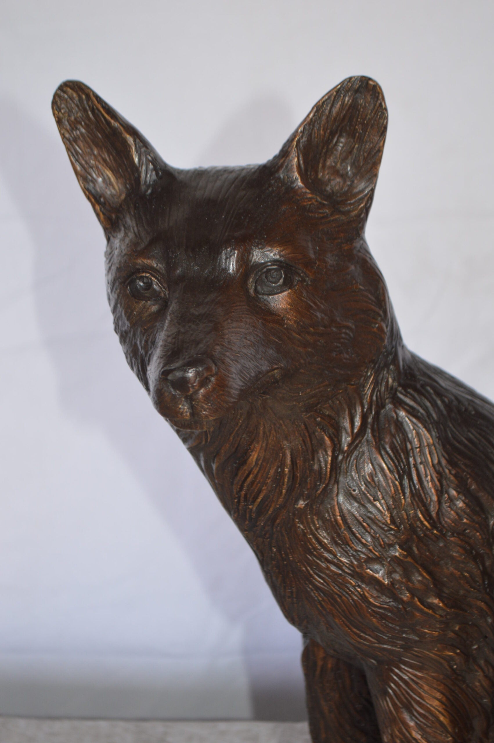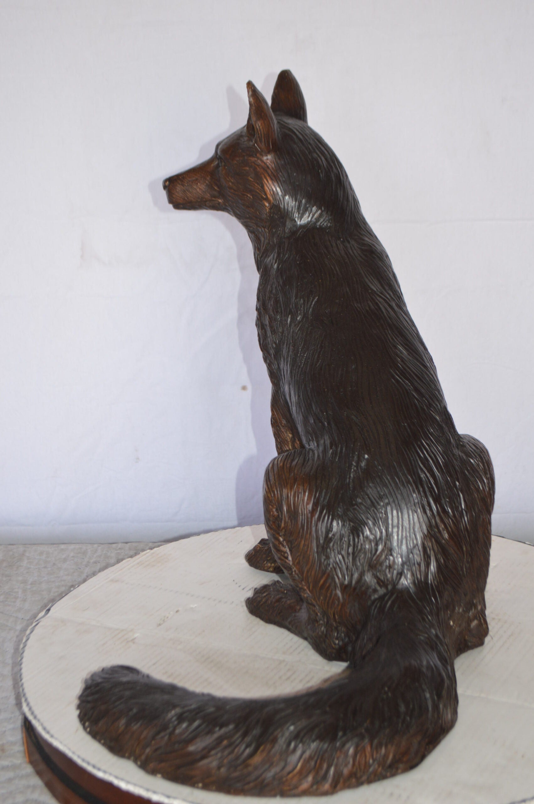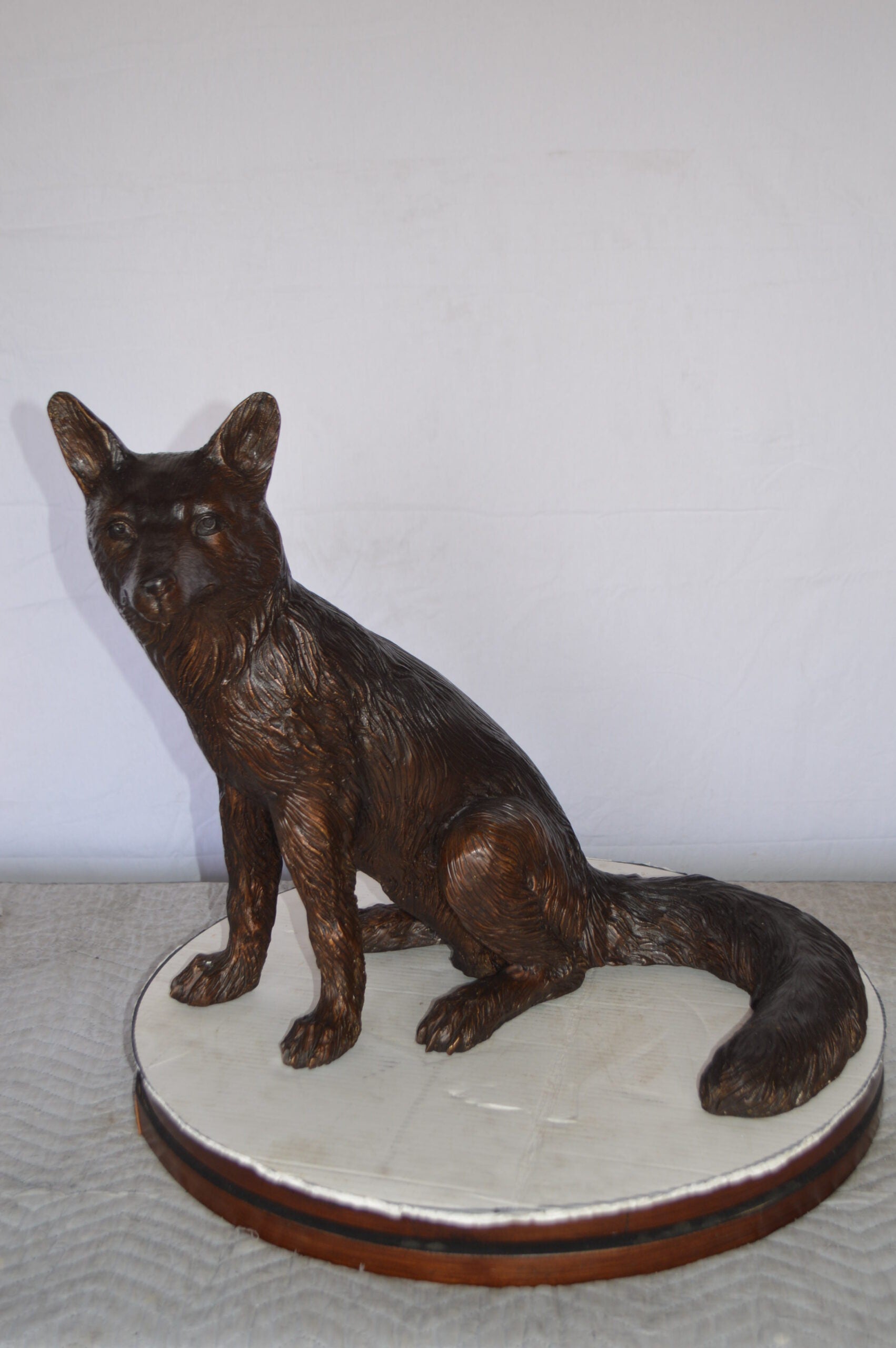 Fox Sitting Bronze Statue - Size: 23"L x 17"W x 20"H.