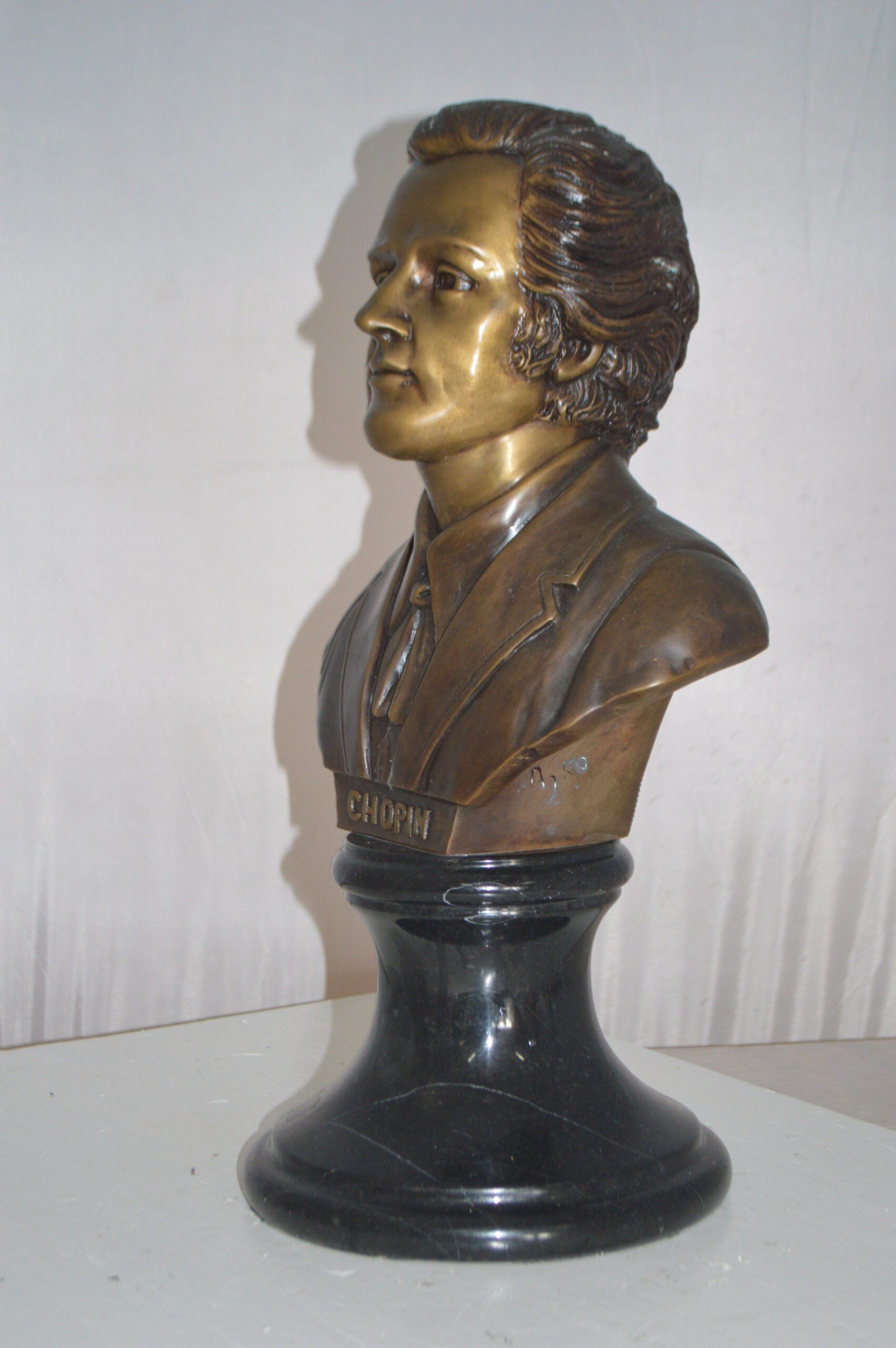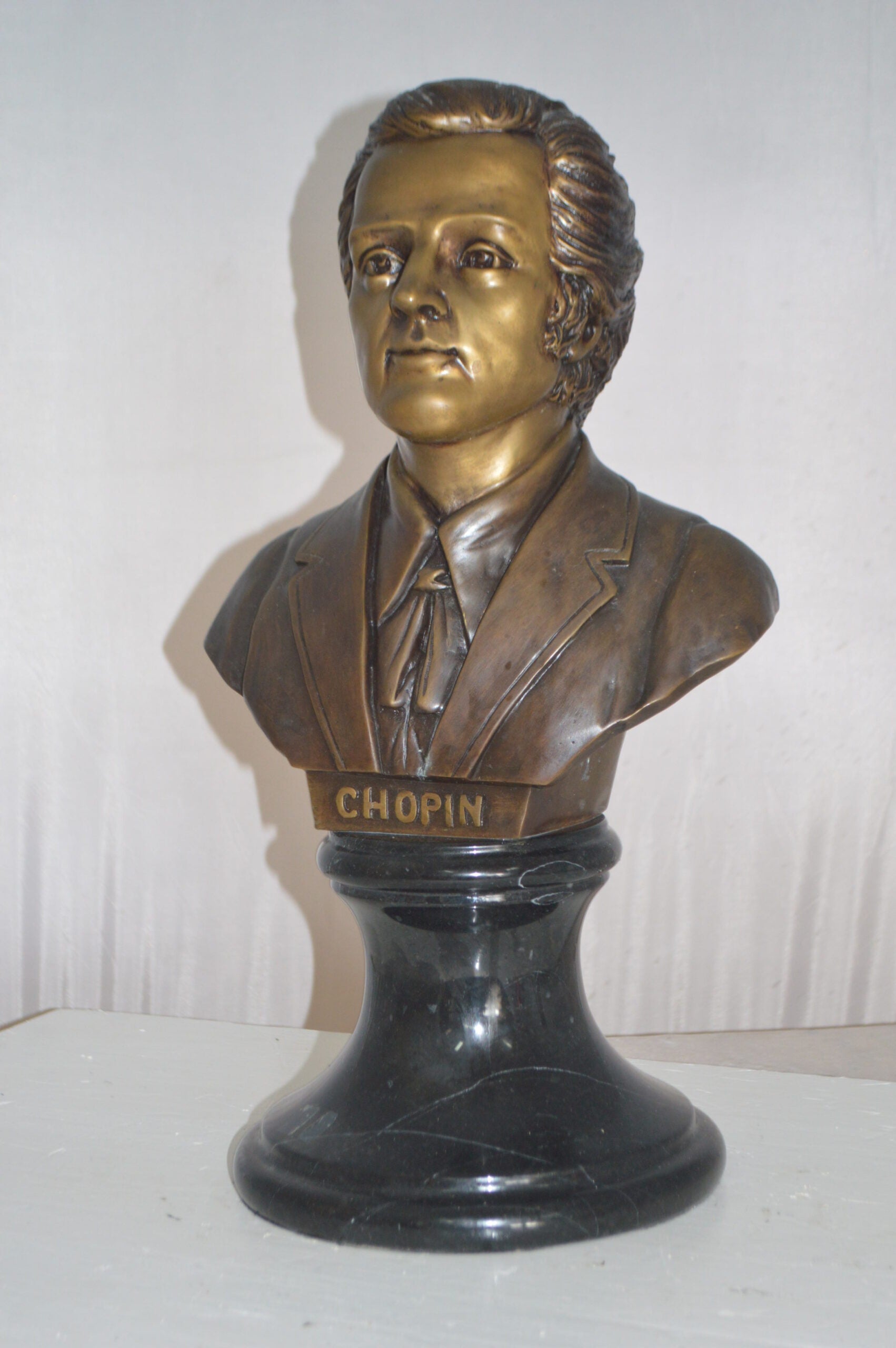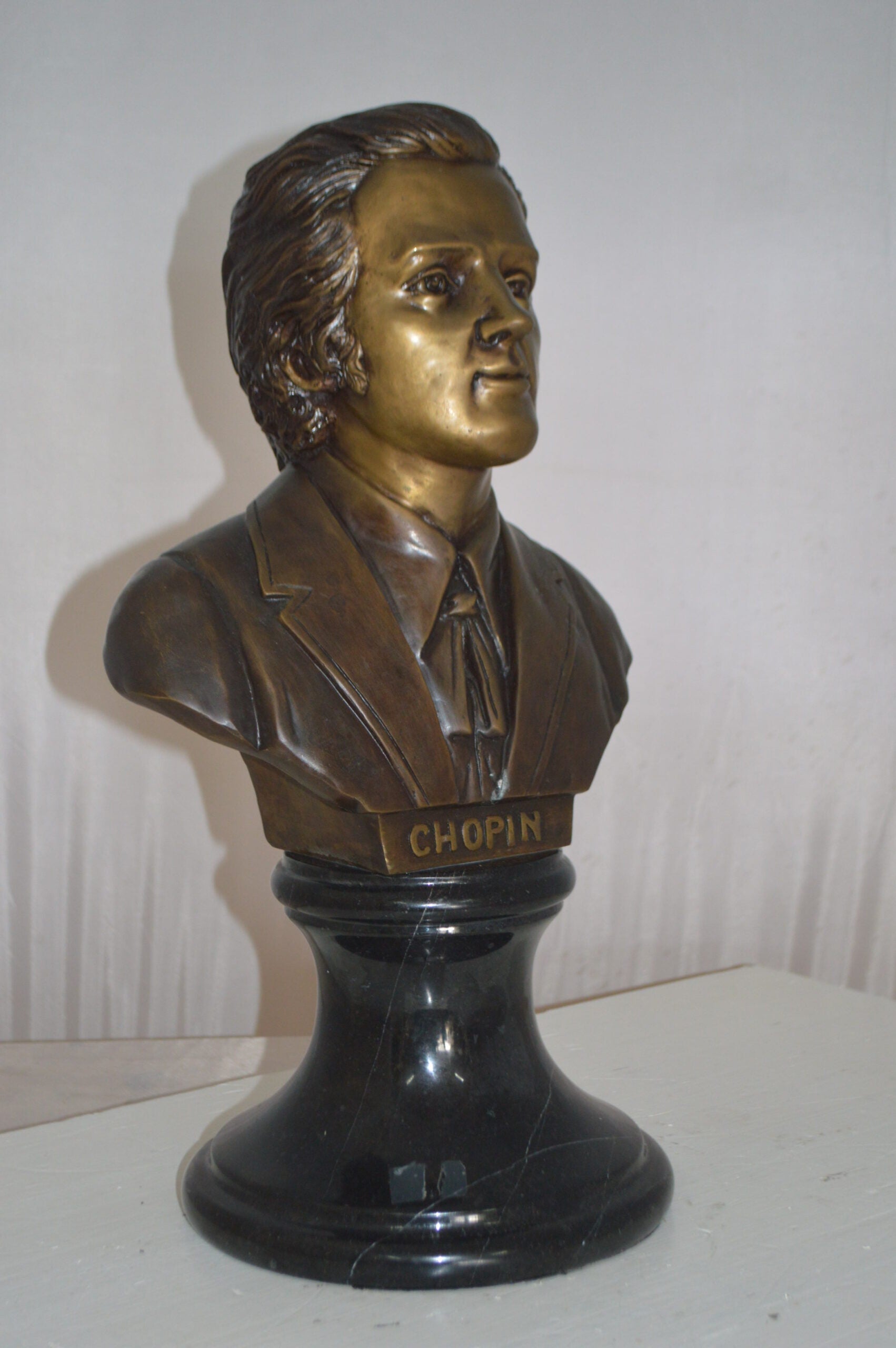 Frederic Francois Chopin Bust Bronze Statue - Size: 12"L x 8"W x 21"H.