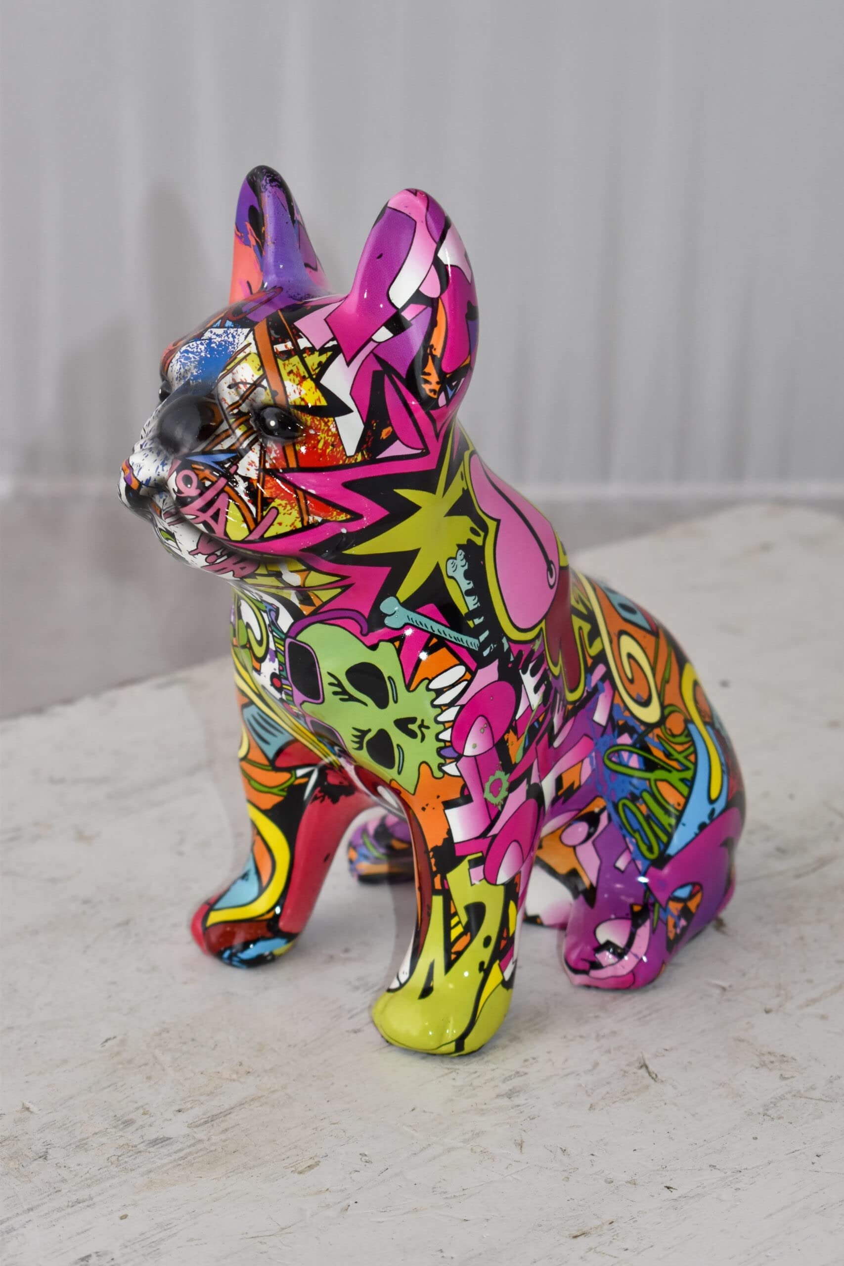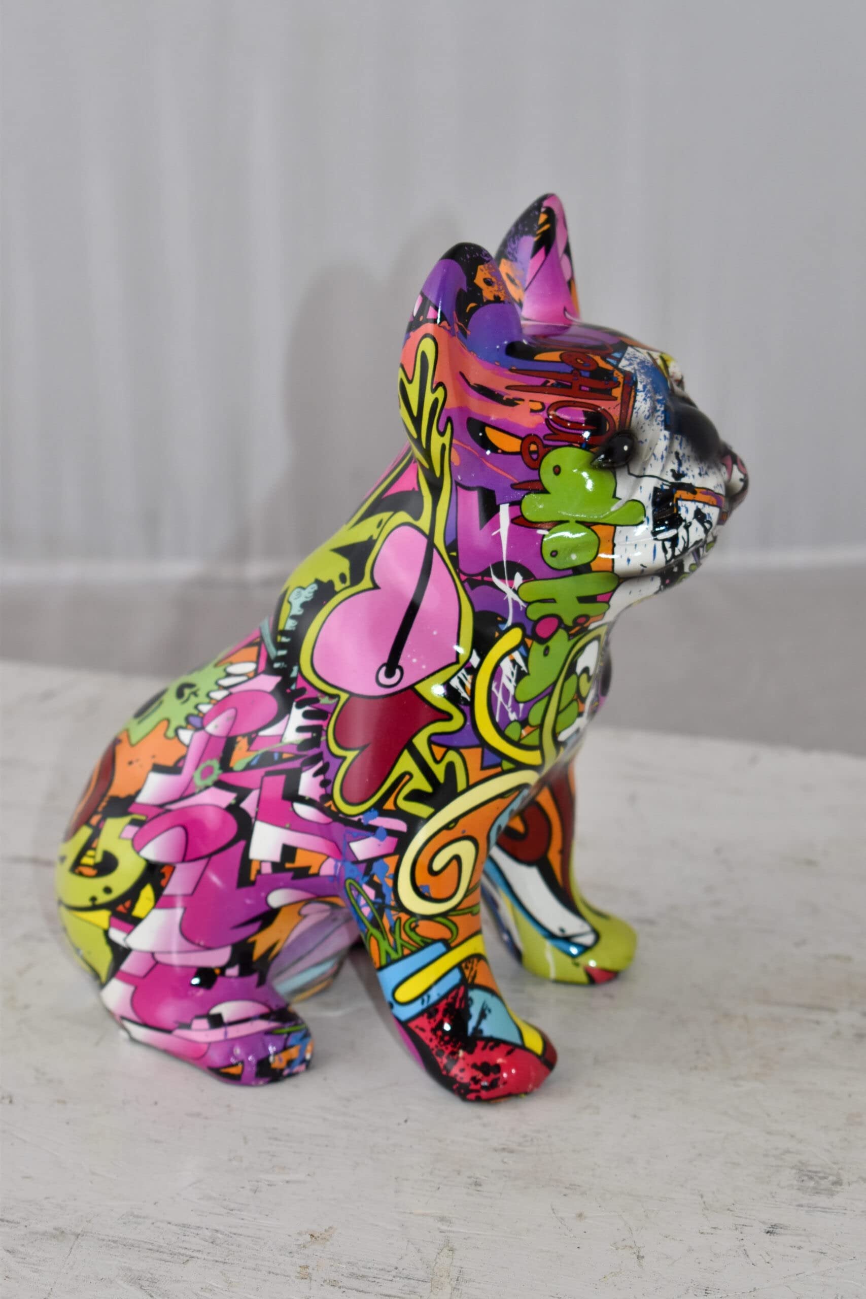 French Bulldog Painted Purple Graffiti Resin Statue Size: 8" x 5" x 10"H
