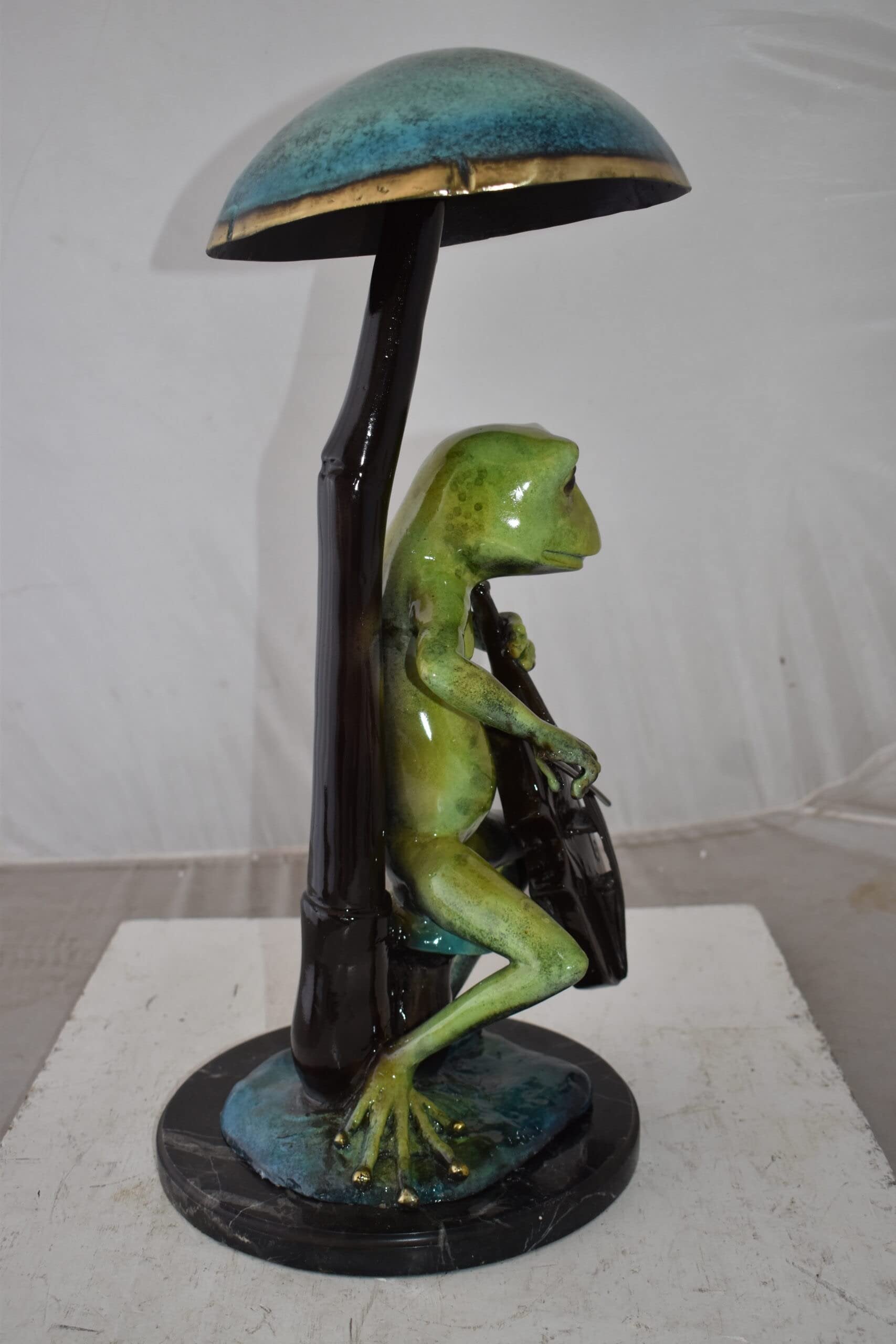 Bring some enthusiasm to any space with this bronze statue of a frog playing a cello. With colors such as bright green and turquoise, it is not only humorous and fun but also tasteful and full of artistic talent. It is a must have piece for any art lover. Size: 12"L x 11"W x 24"H. Weight is: 27Lb