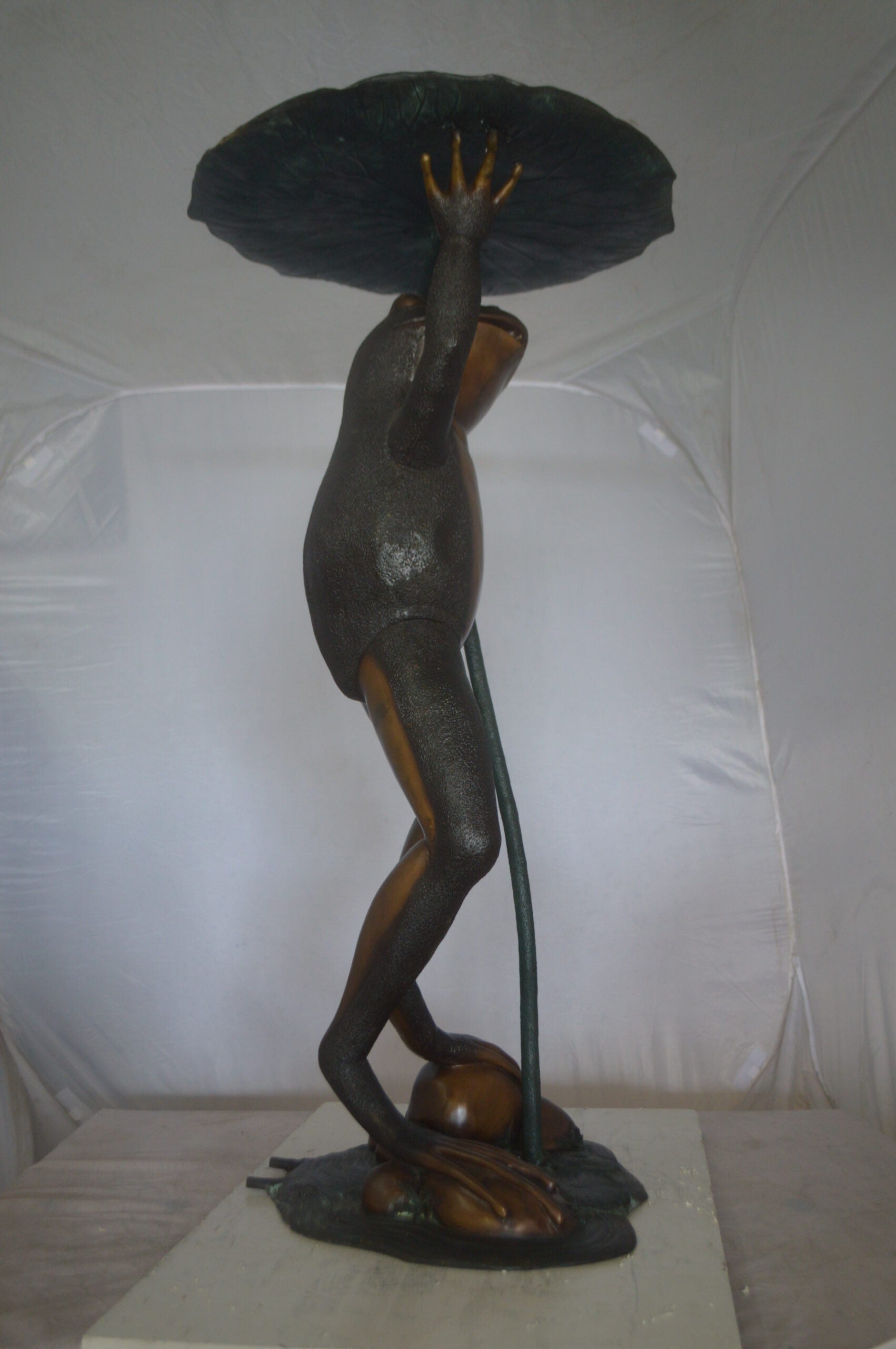 Frog with Umbrella Fountain Bronze Statue - Size: 22"L x 22"W x 43"H.