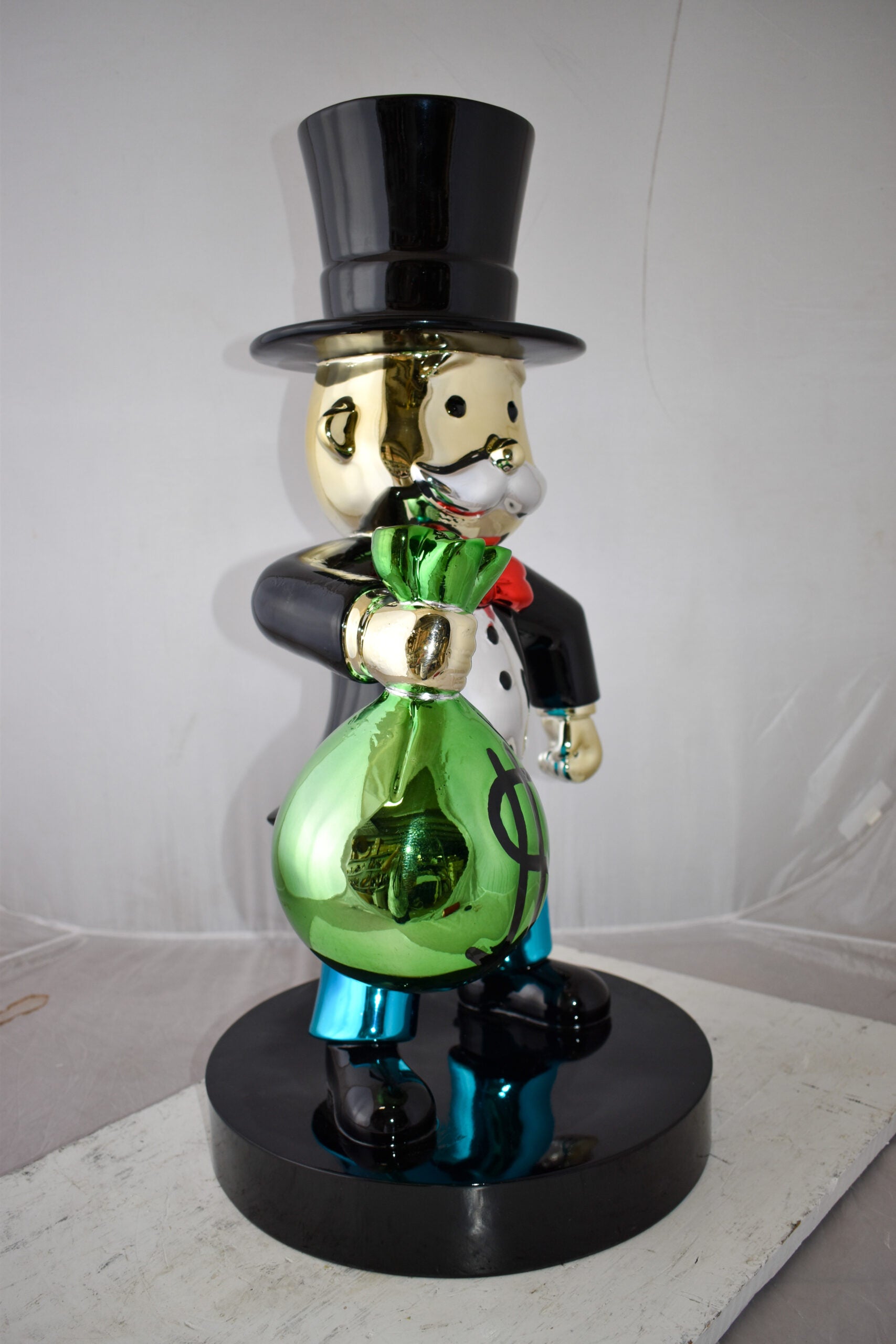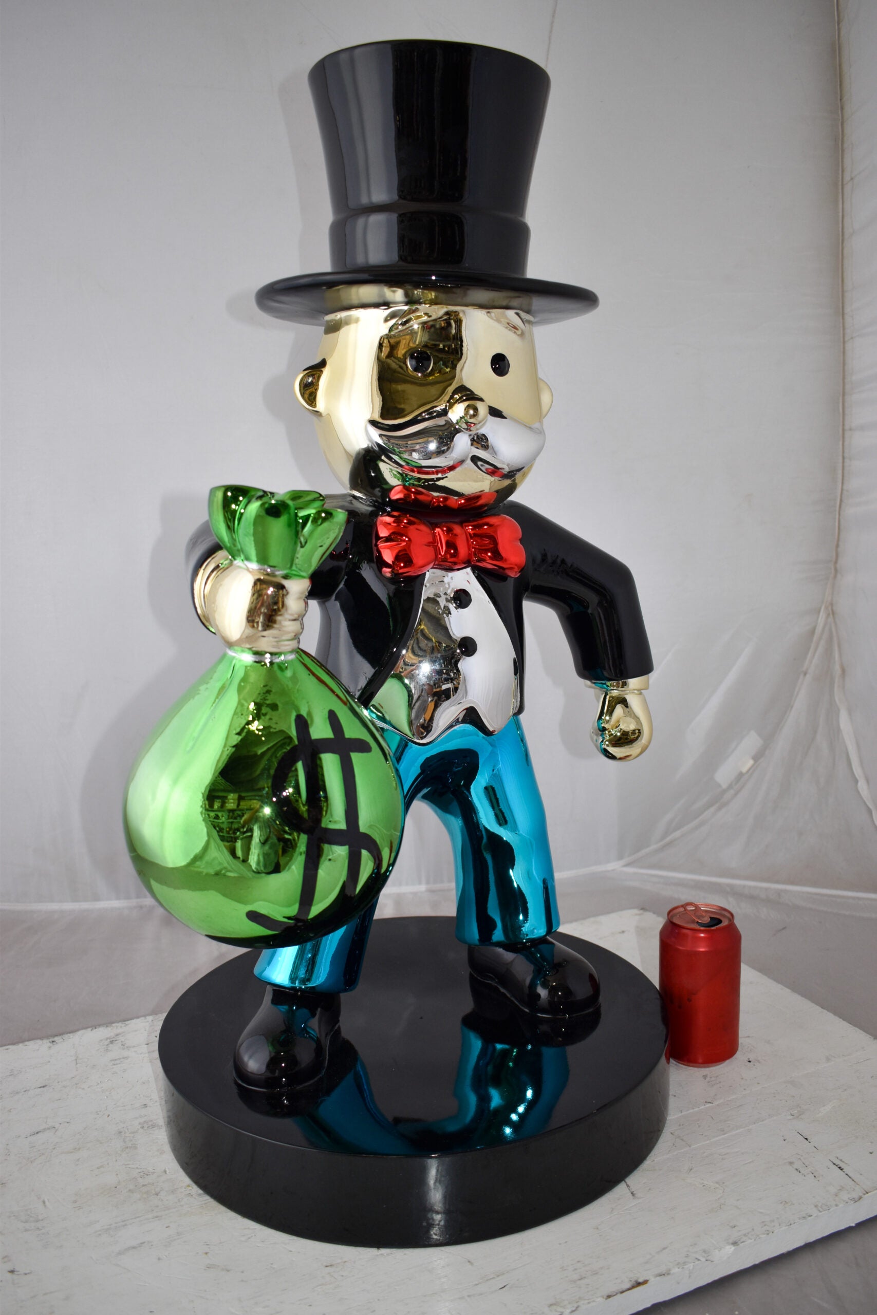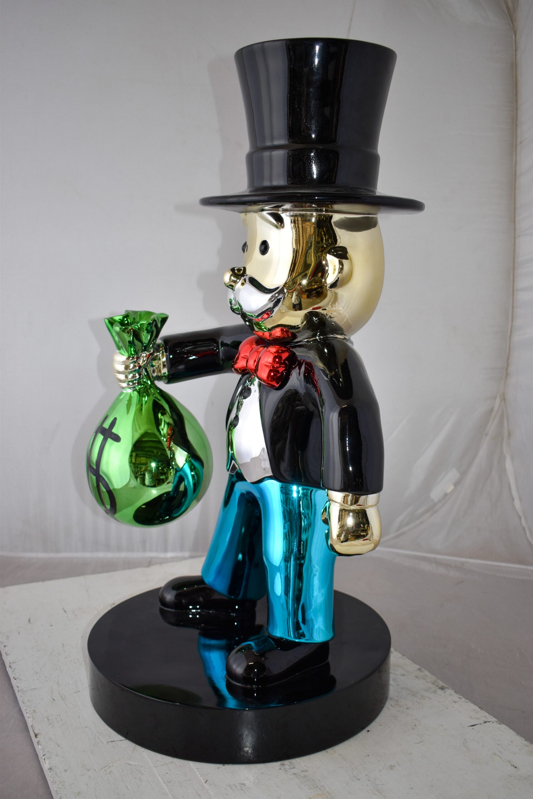 Decorate your home with this beautiful resin statue, also known as the Monopoly Man Holding Money from the old well know monopoly game. This decorative statue will become an extraordinary focal point to any kitchen, Livingroom, or patio! You can be sure it will be a conversation starter and the topic of much appraised comments in your home. Size: 17"L x 15"W x 31"H. Weight is: 24Lb