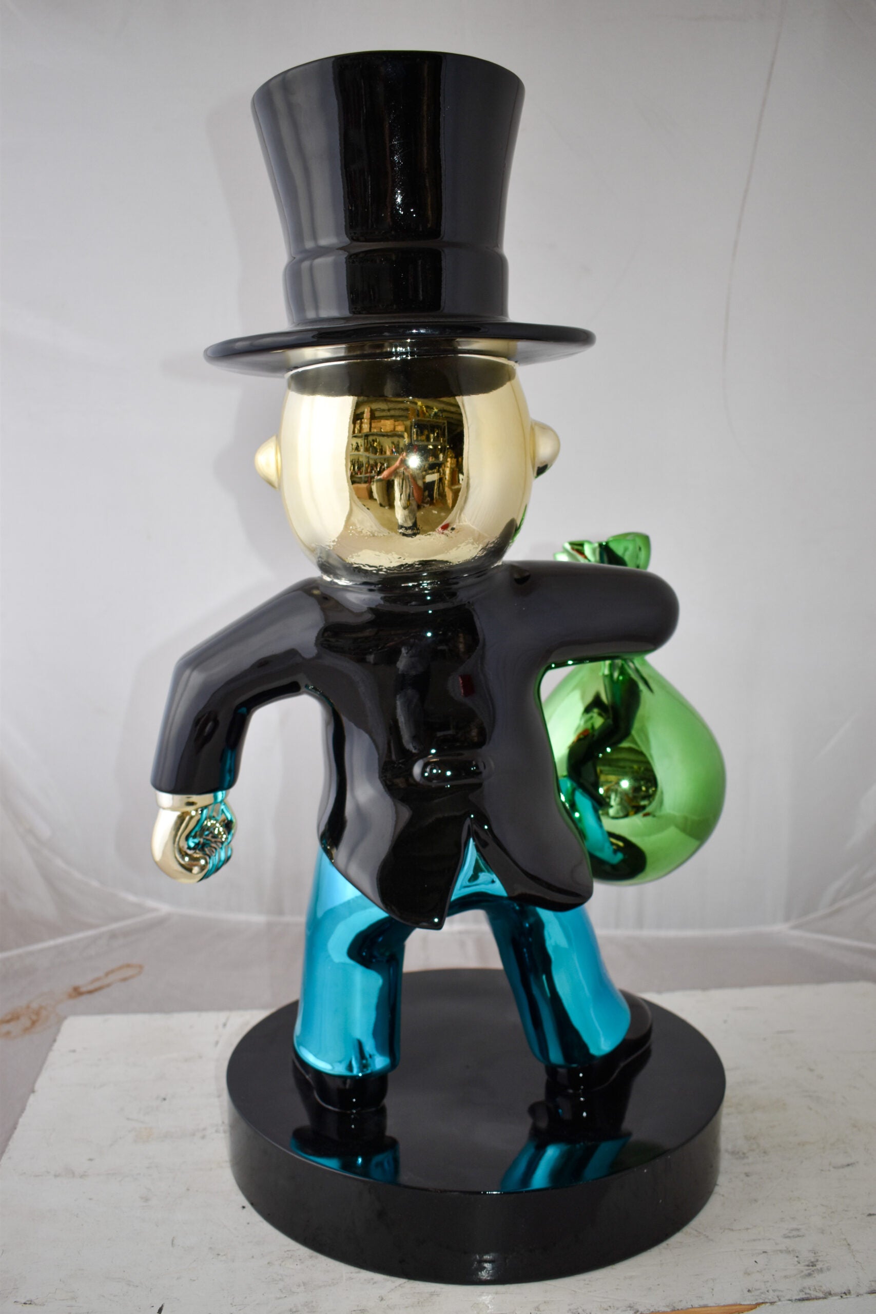 Frowning Monopoly Man Holding Money Bag Resin Statue Large 17" x 15" x 31"H