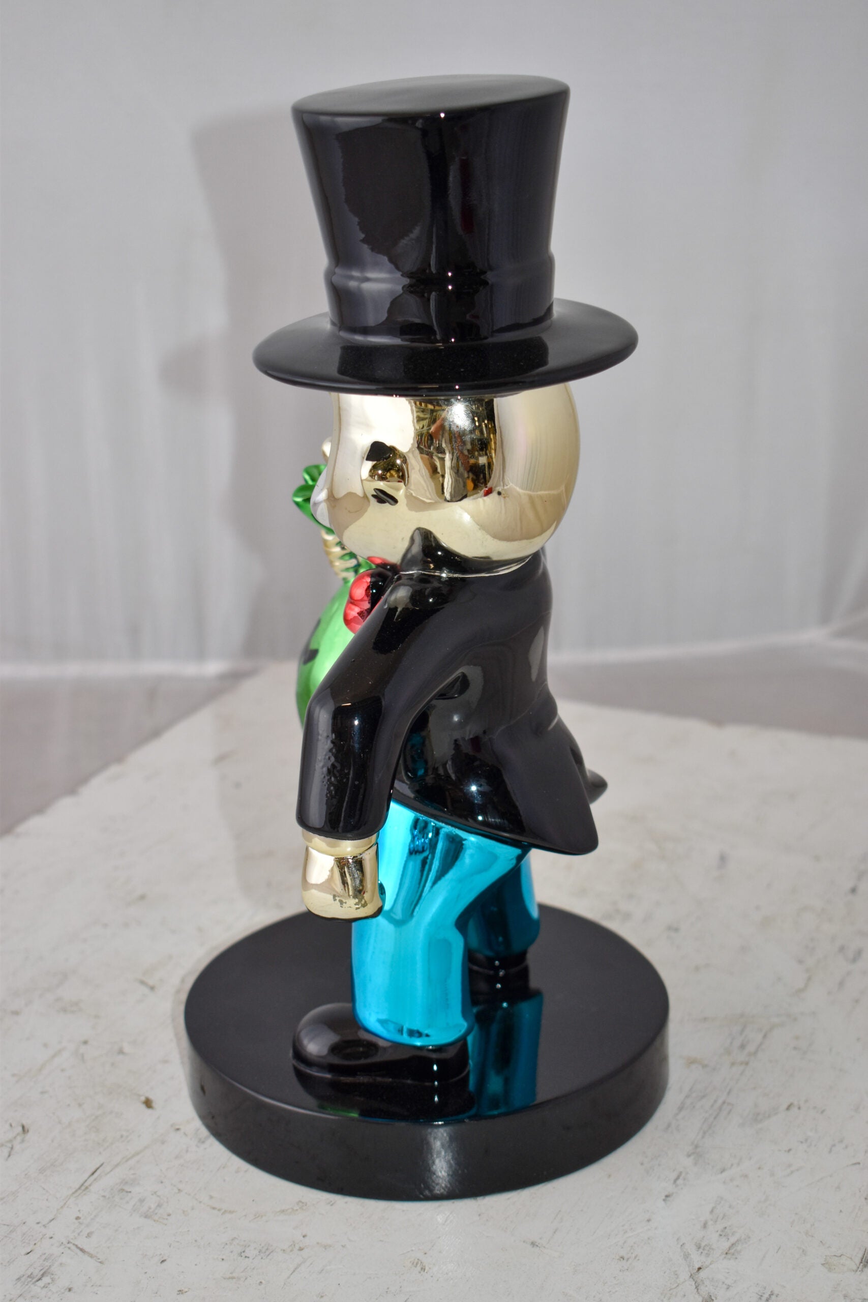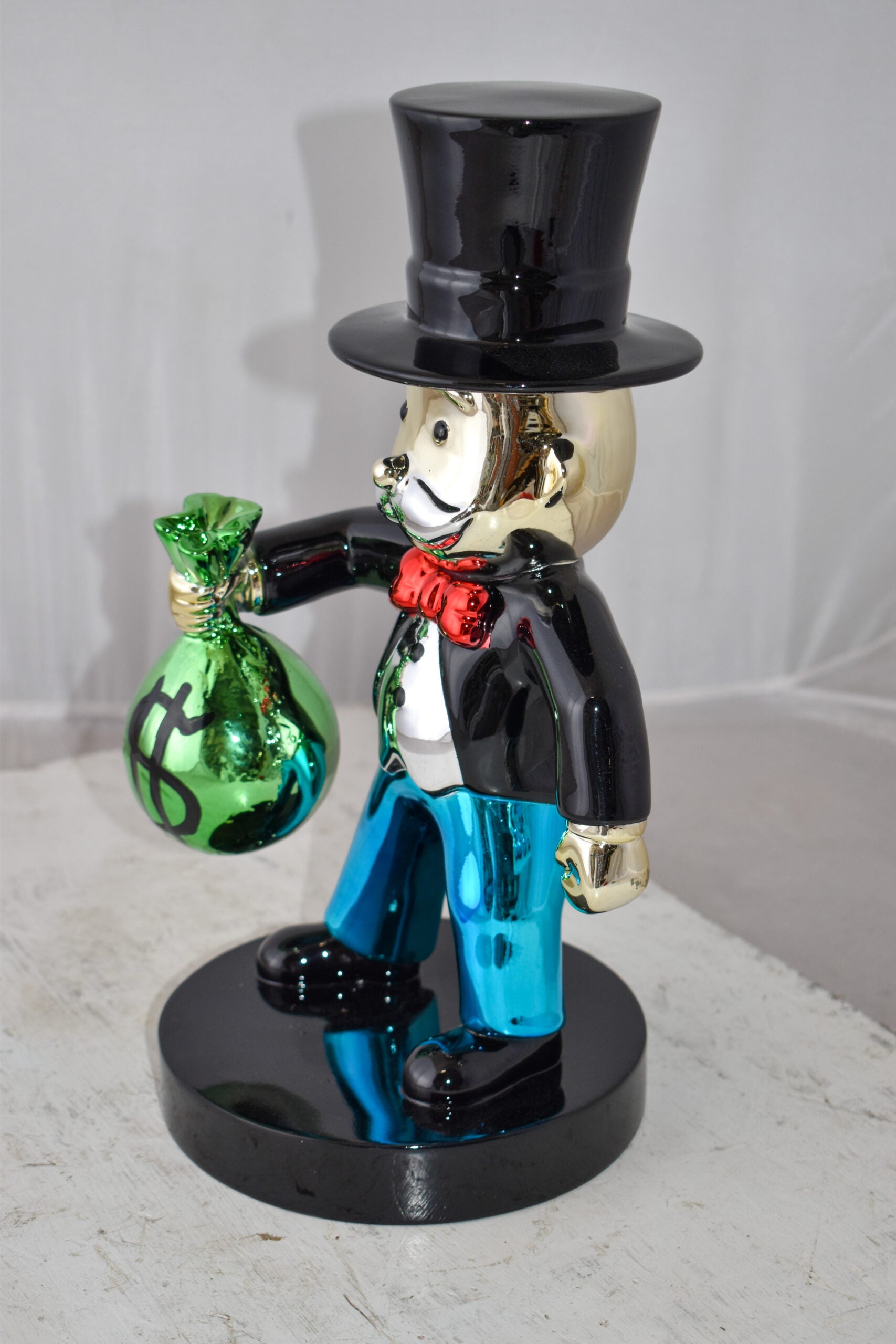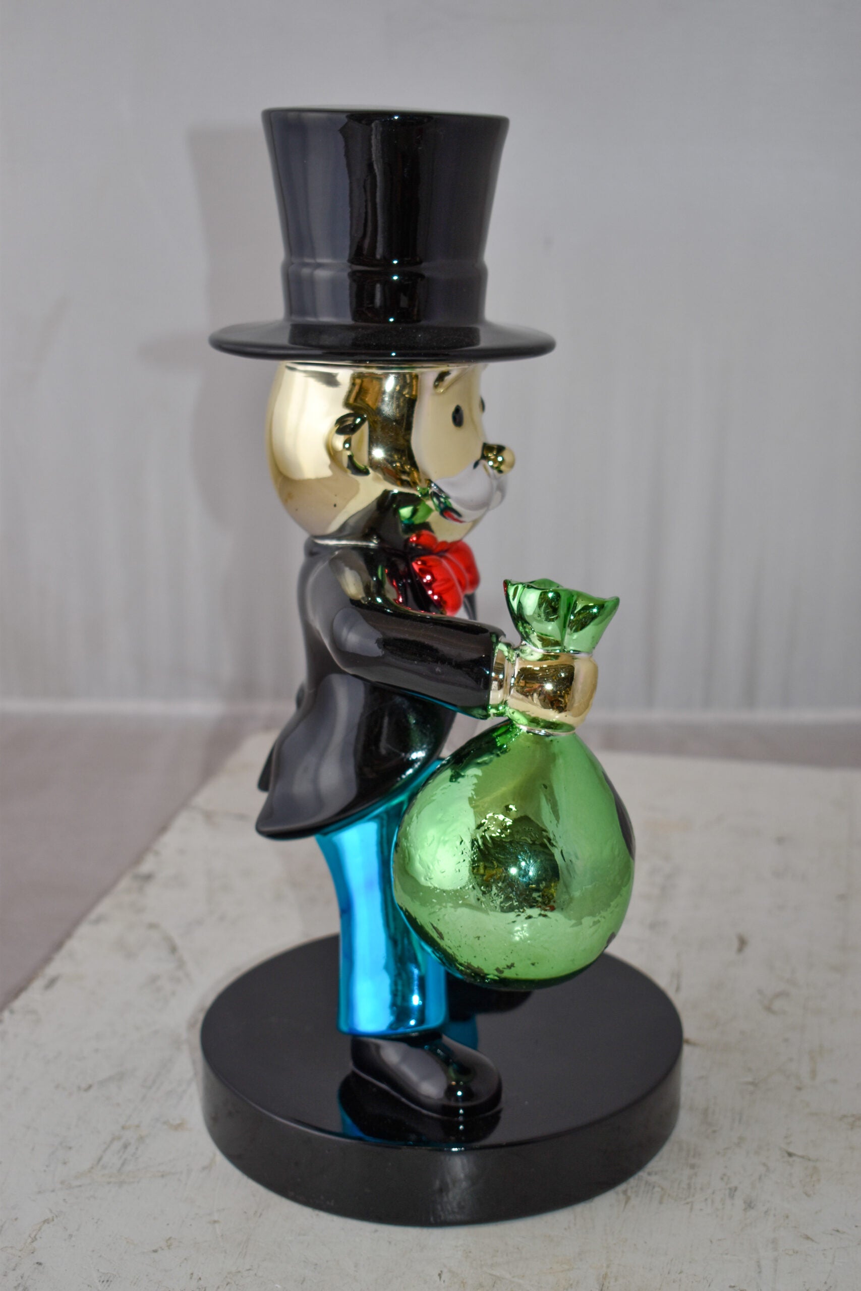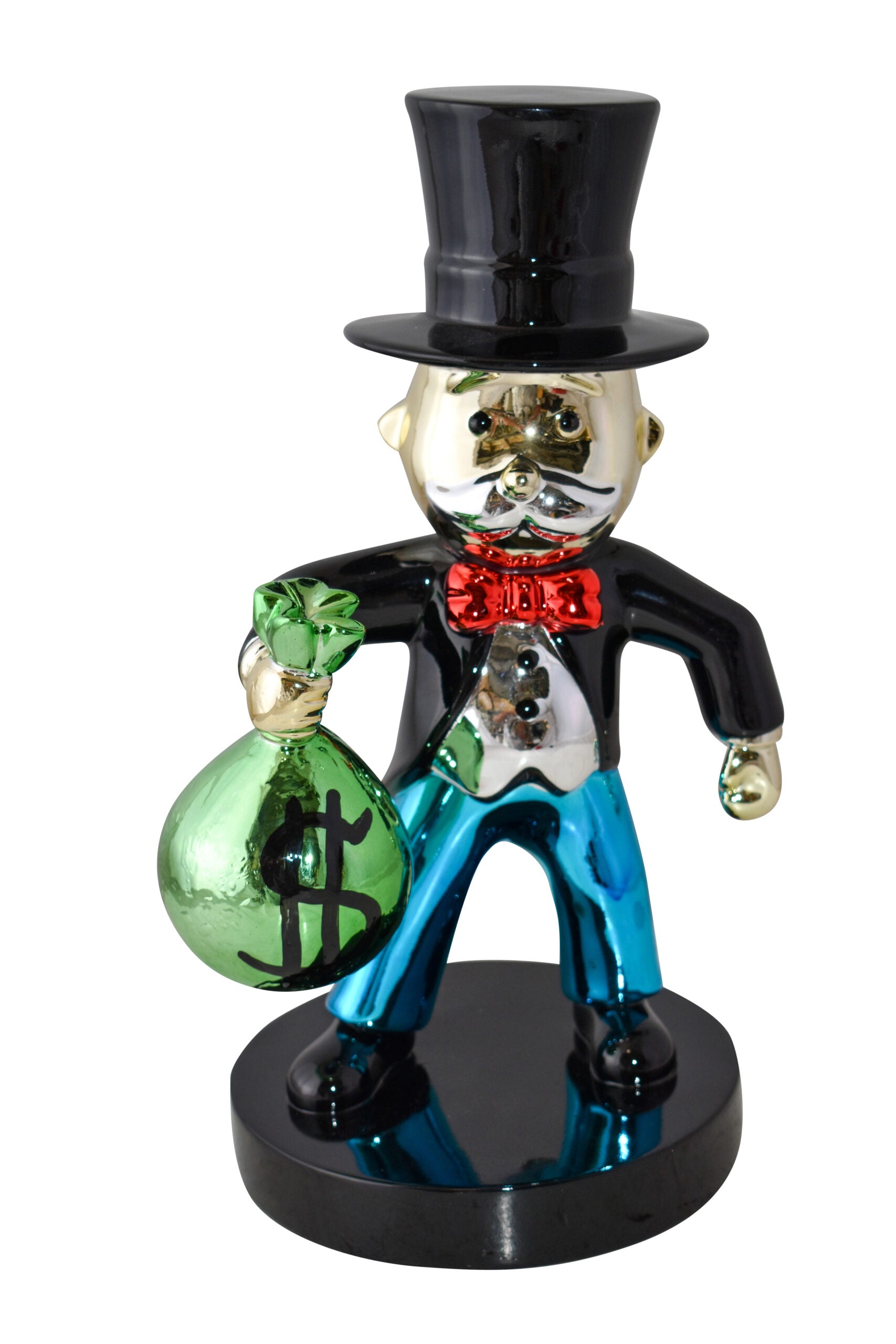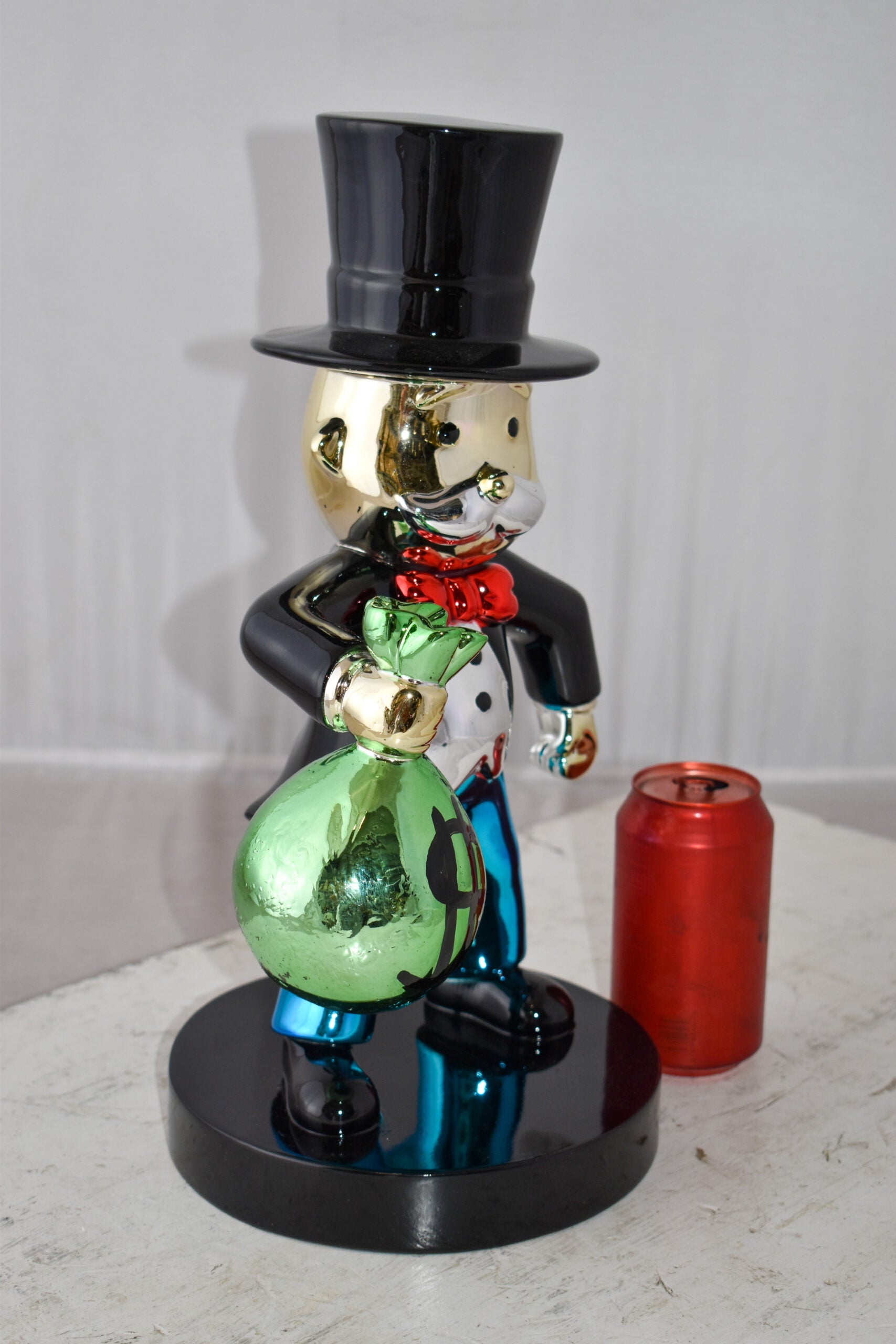 Decorate your home with this beautiful resin statue, also known as the Monopoly Man Holding Money from the old well know monopoly game. This decorative statue will become an extraordinary focal point to any kitchen, Livingroom, or patio! You can be sure it will be a conversation starter and the topic of much appraised comments in your home. Size: 7"L x 8"W x 15"H. Weight is: 5Lb