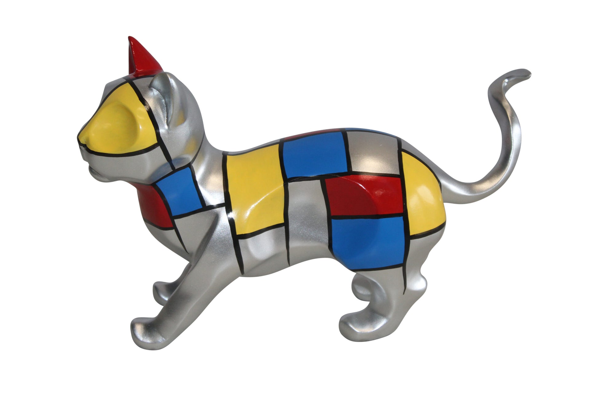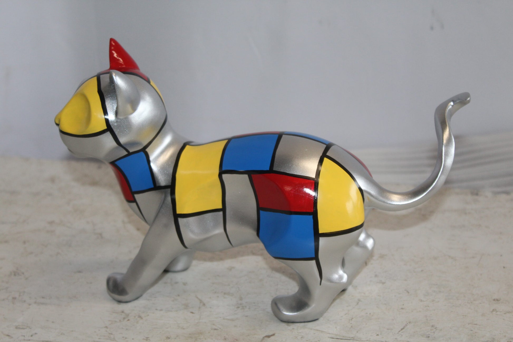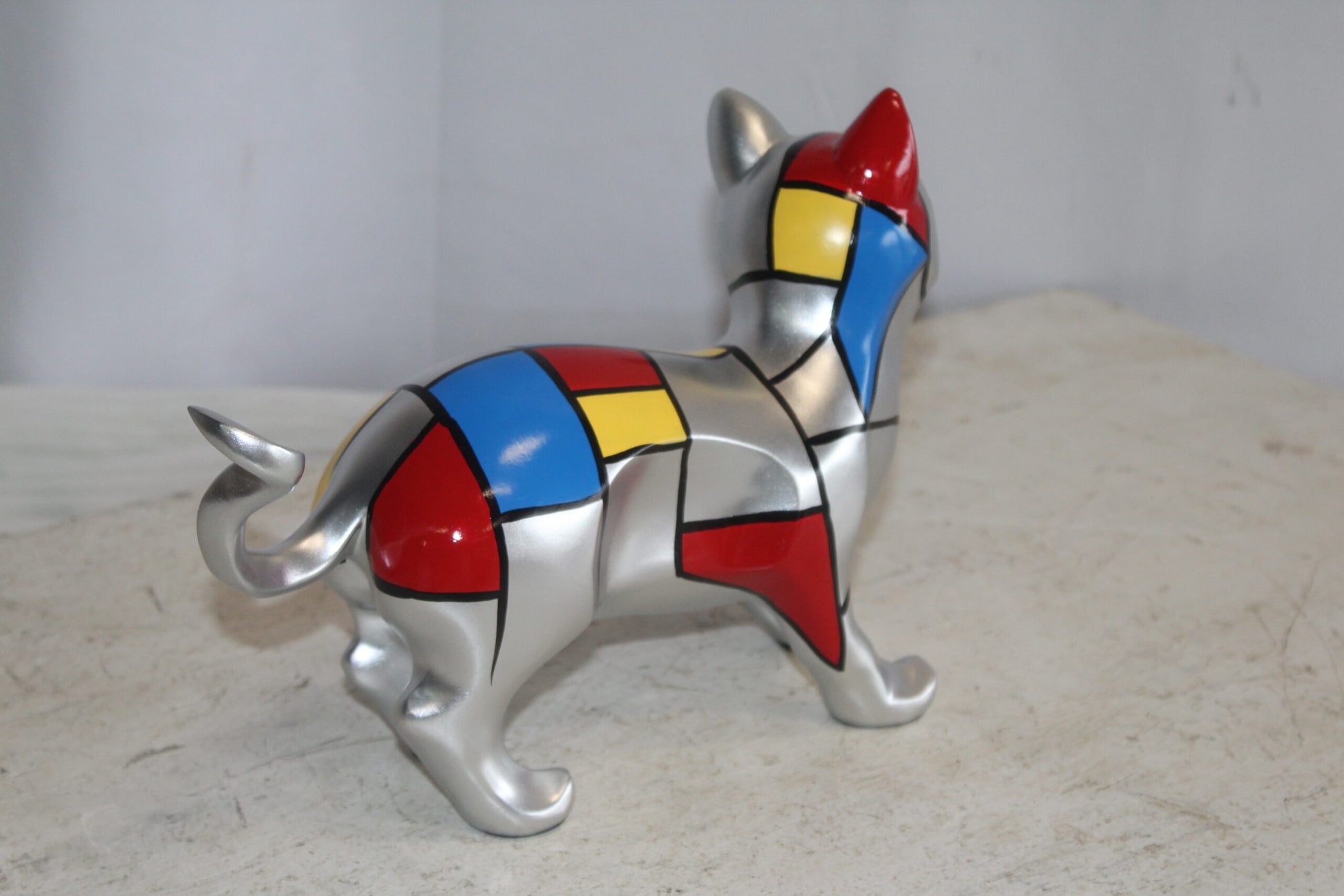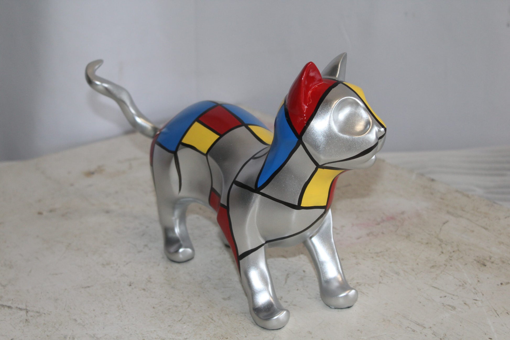 Geometric Themed Standing Cat colorful Resin Statue 12" x 4" x 9"H
