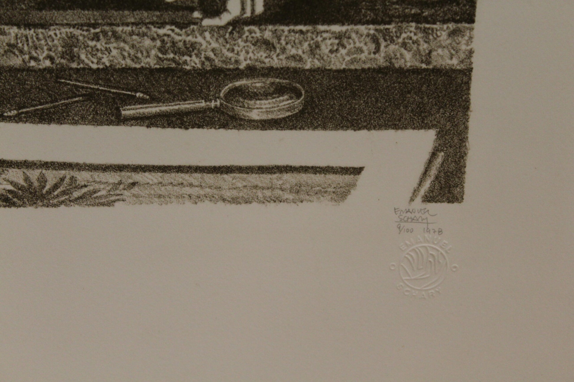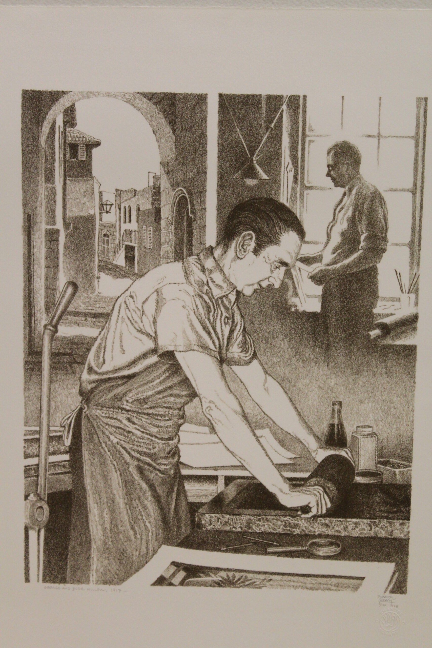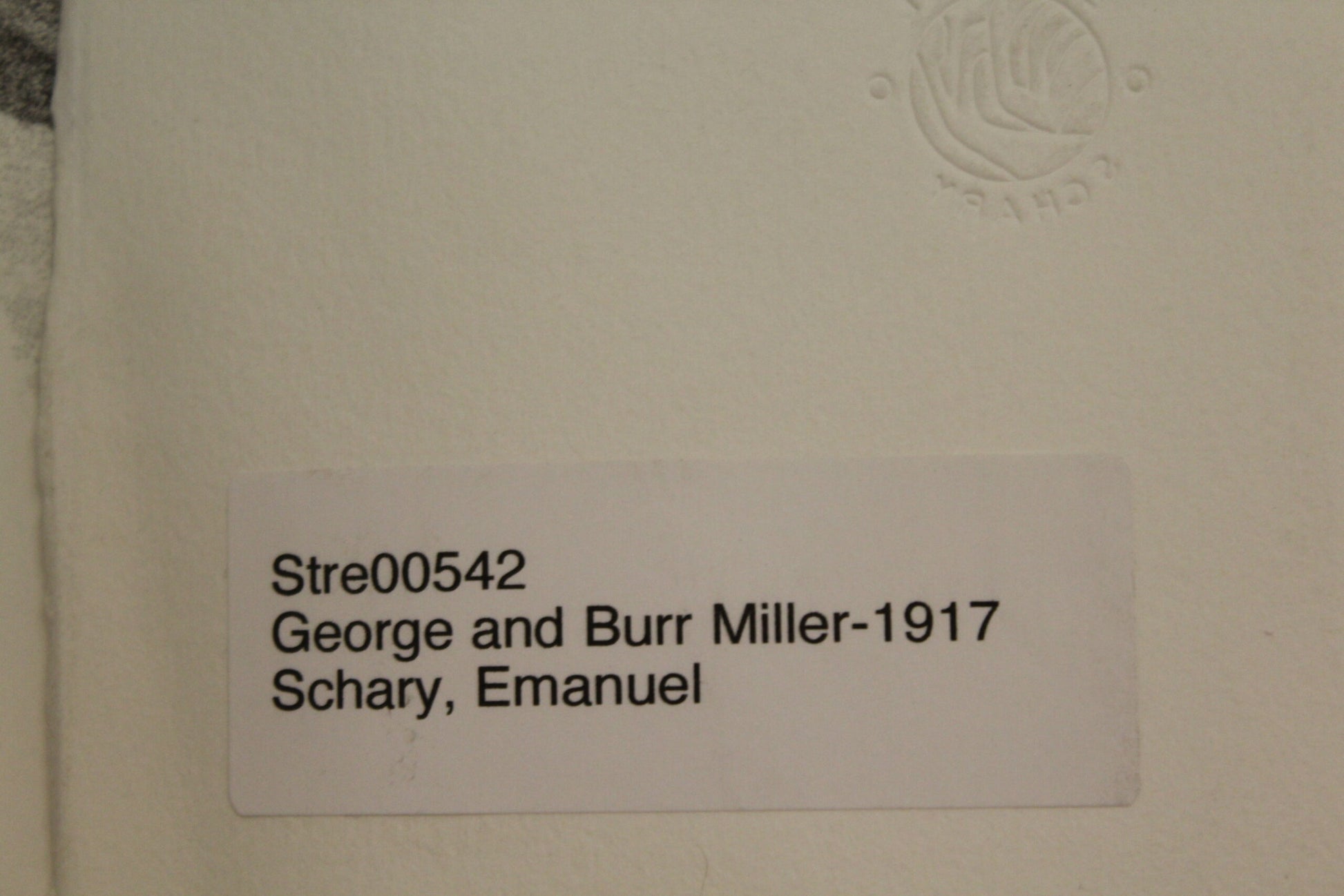 Nifao Emanuel Schary “George and Burr Miller” Black & White Lithograph – 1917 Printmaking Tribute, Judaica Fine Art Collectible -11 x 14