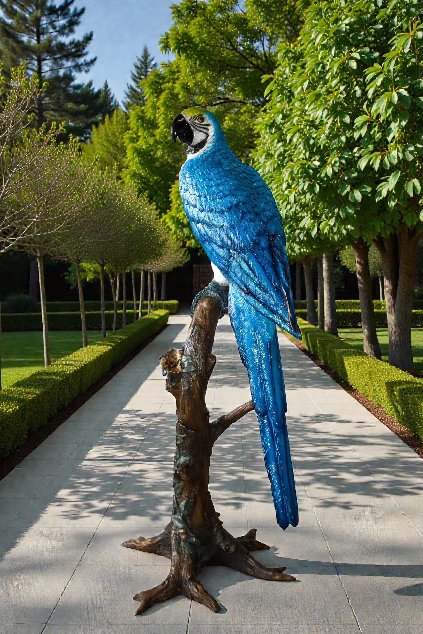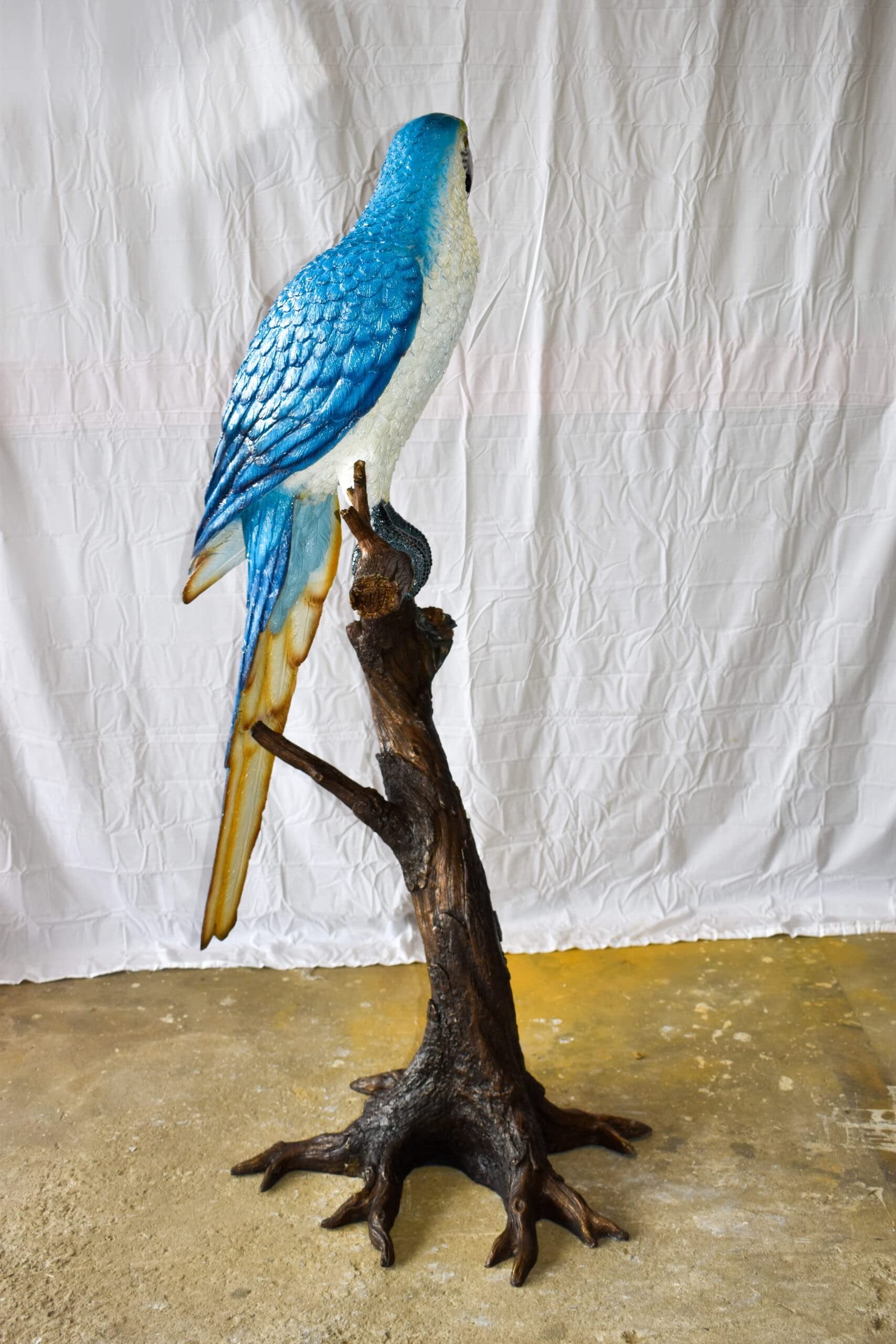 Giant Blue and White Parrot Standing on A Tree Bronze Statue 30" x 24" x 66"H
