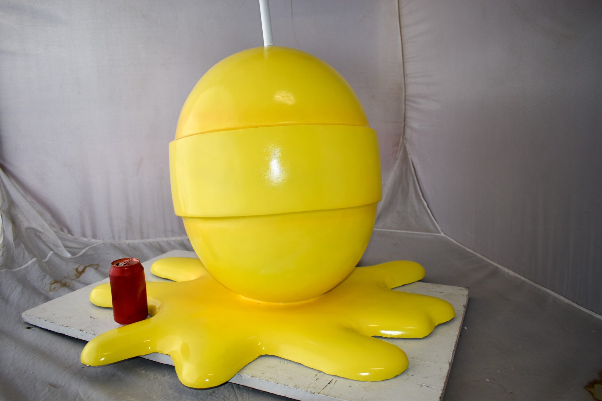 Giant Yellow Lollipop Melted on The Ground Resin Statue Size: 31" x 27" x 56"H