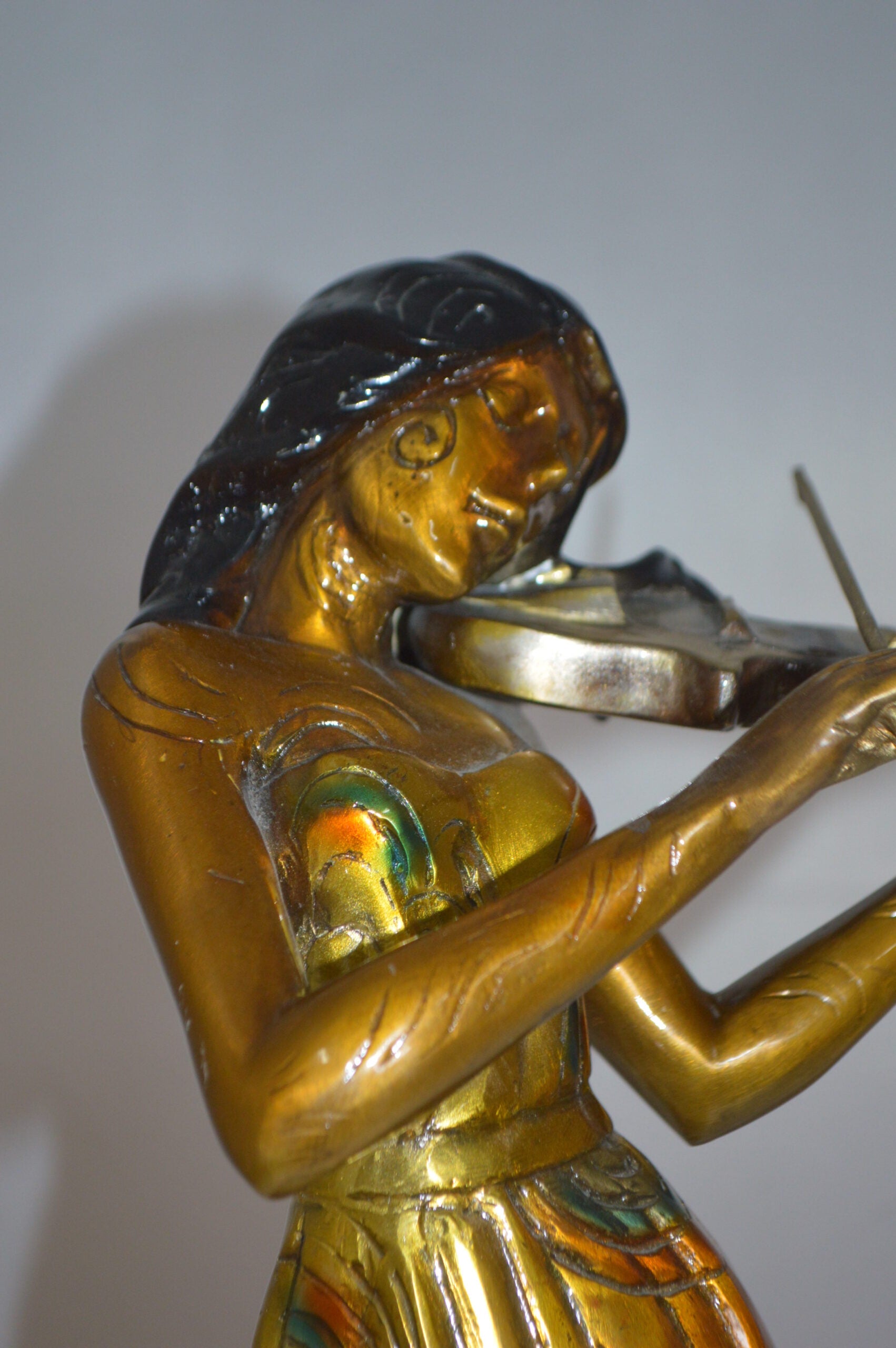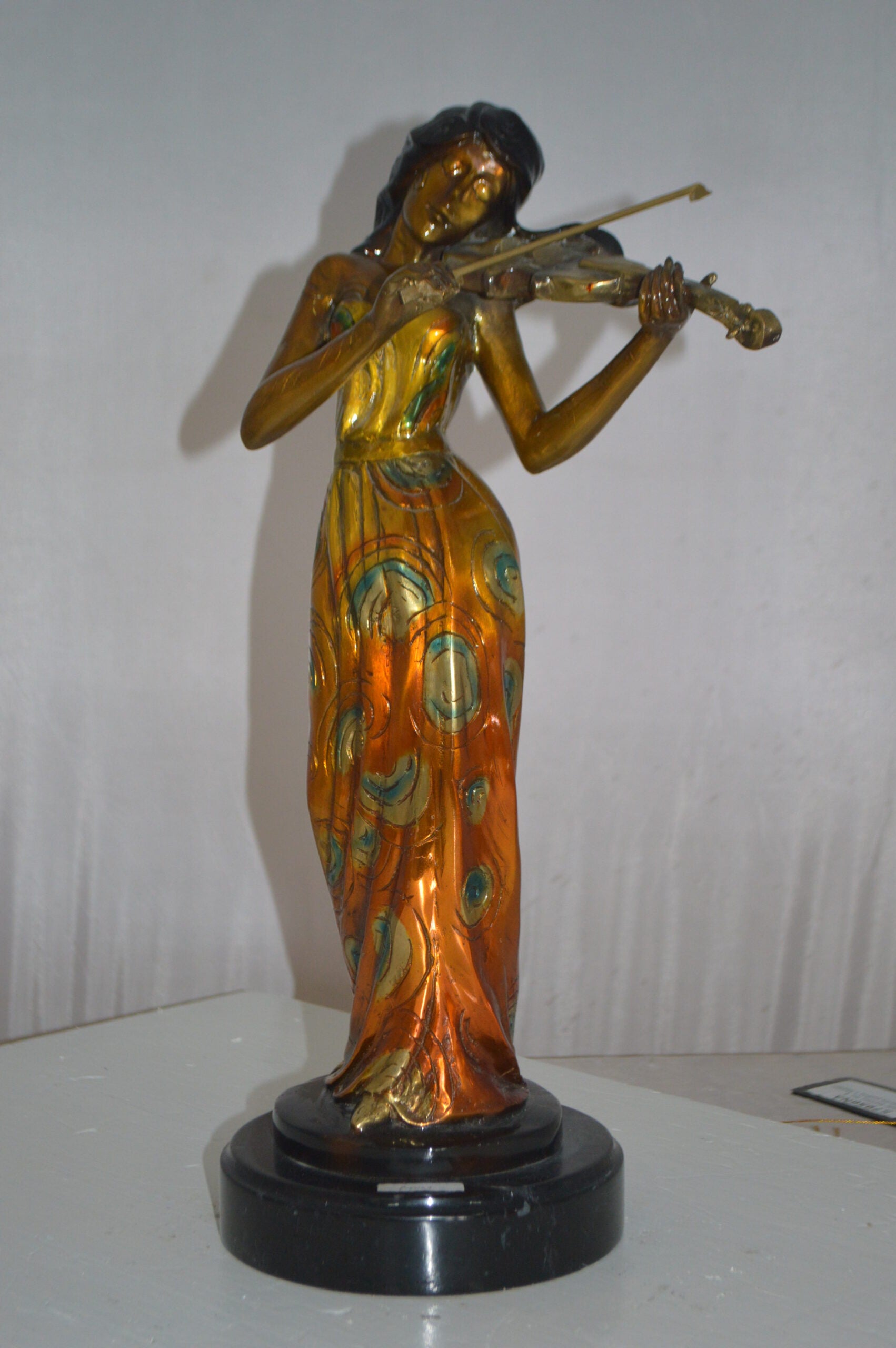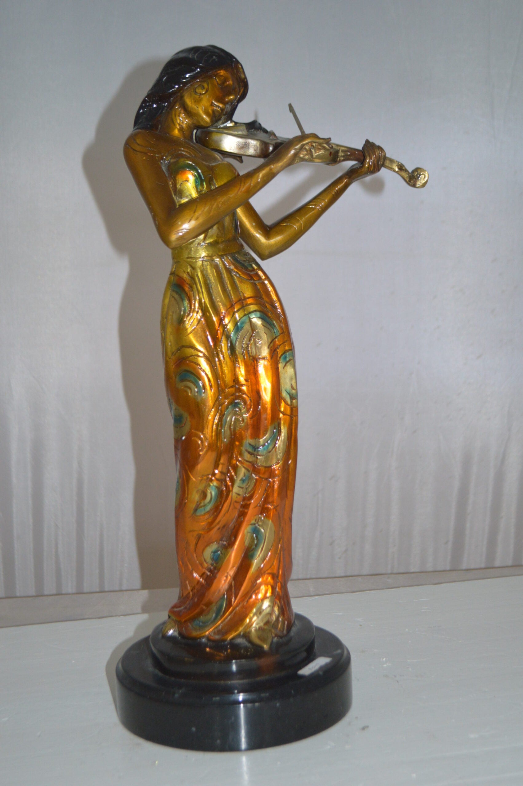 Girl Playing the violin Bronze Statue - Size: 10"L x 7"W x 19"H.