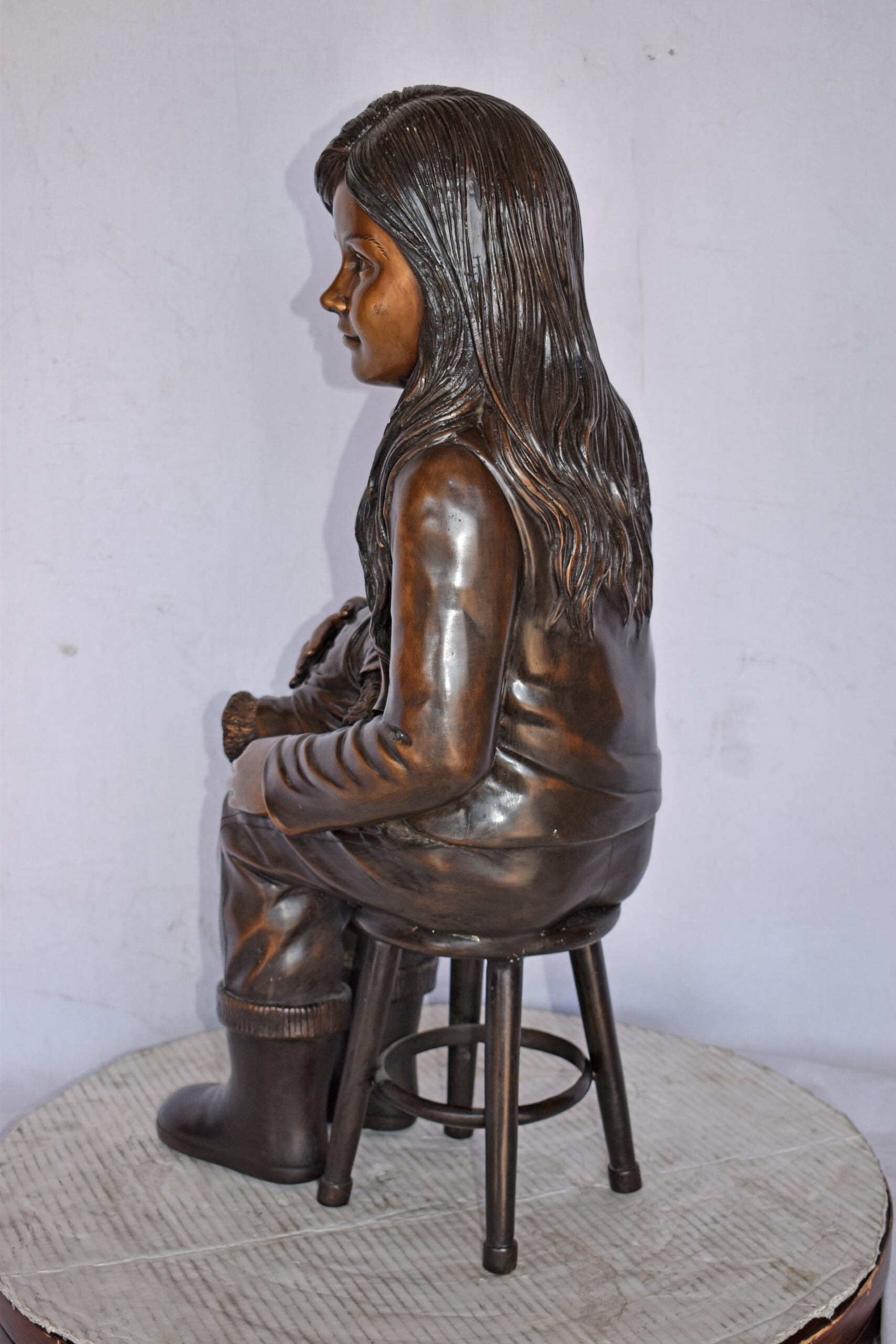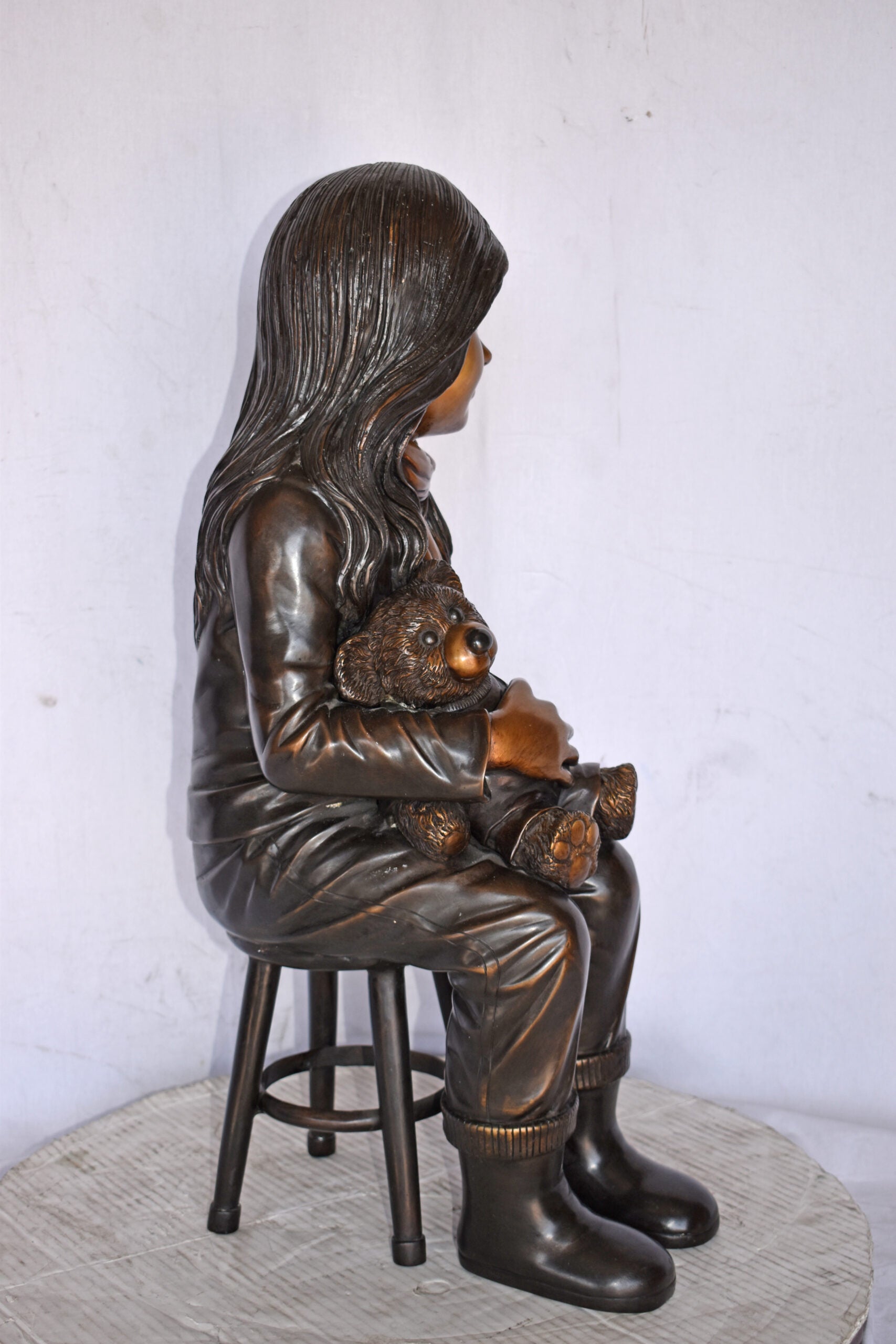 Girl Sitting with her Teddy bear Bronze Statue - Size: 12" x 15" x 27"H.