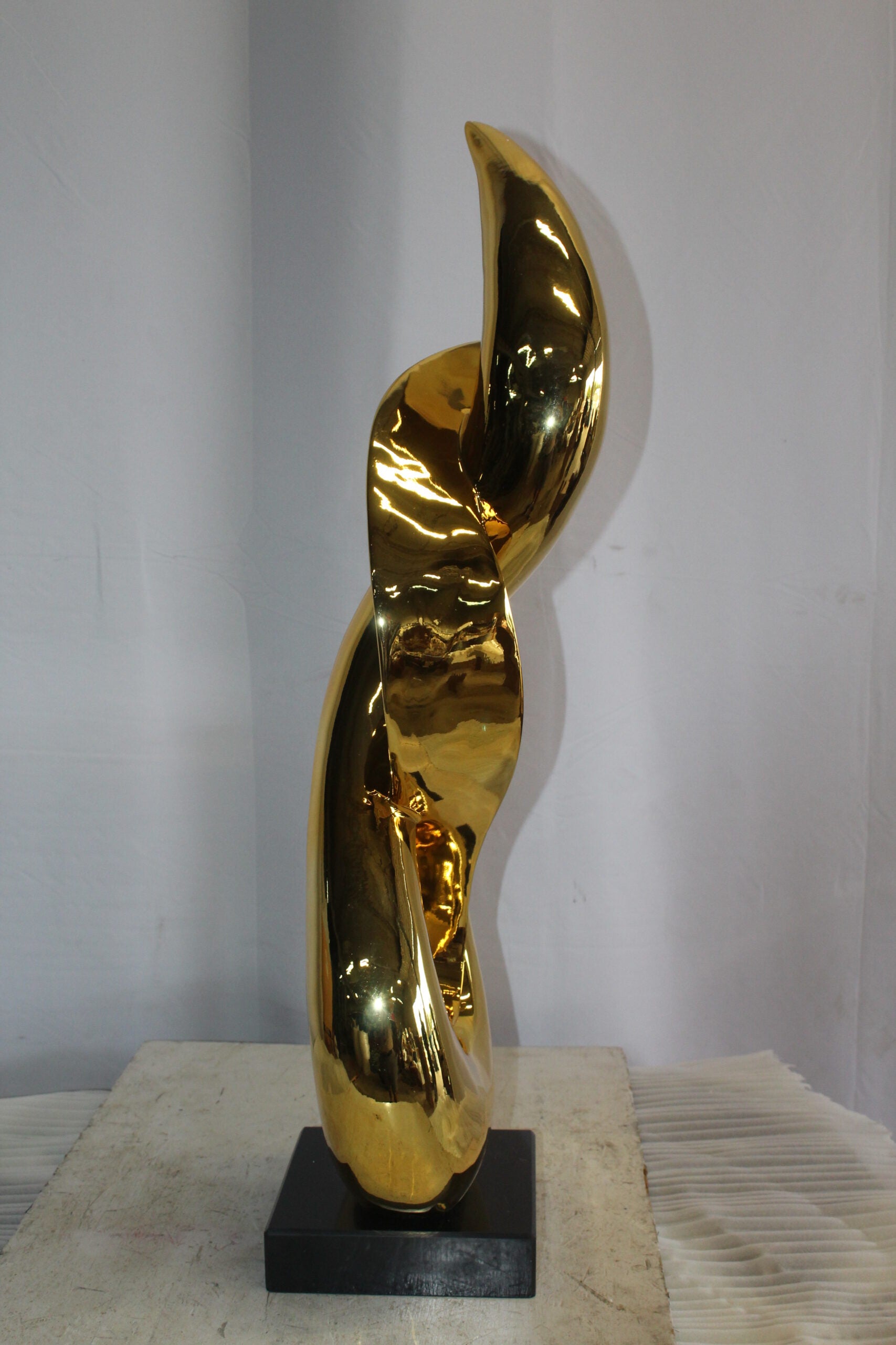 Gold Modern and Abstract Resin Statue on Marble Base 12" x 8" x 34"H
