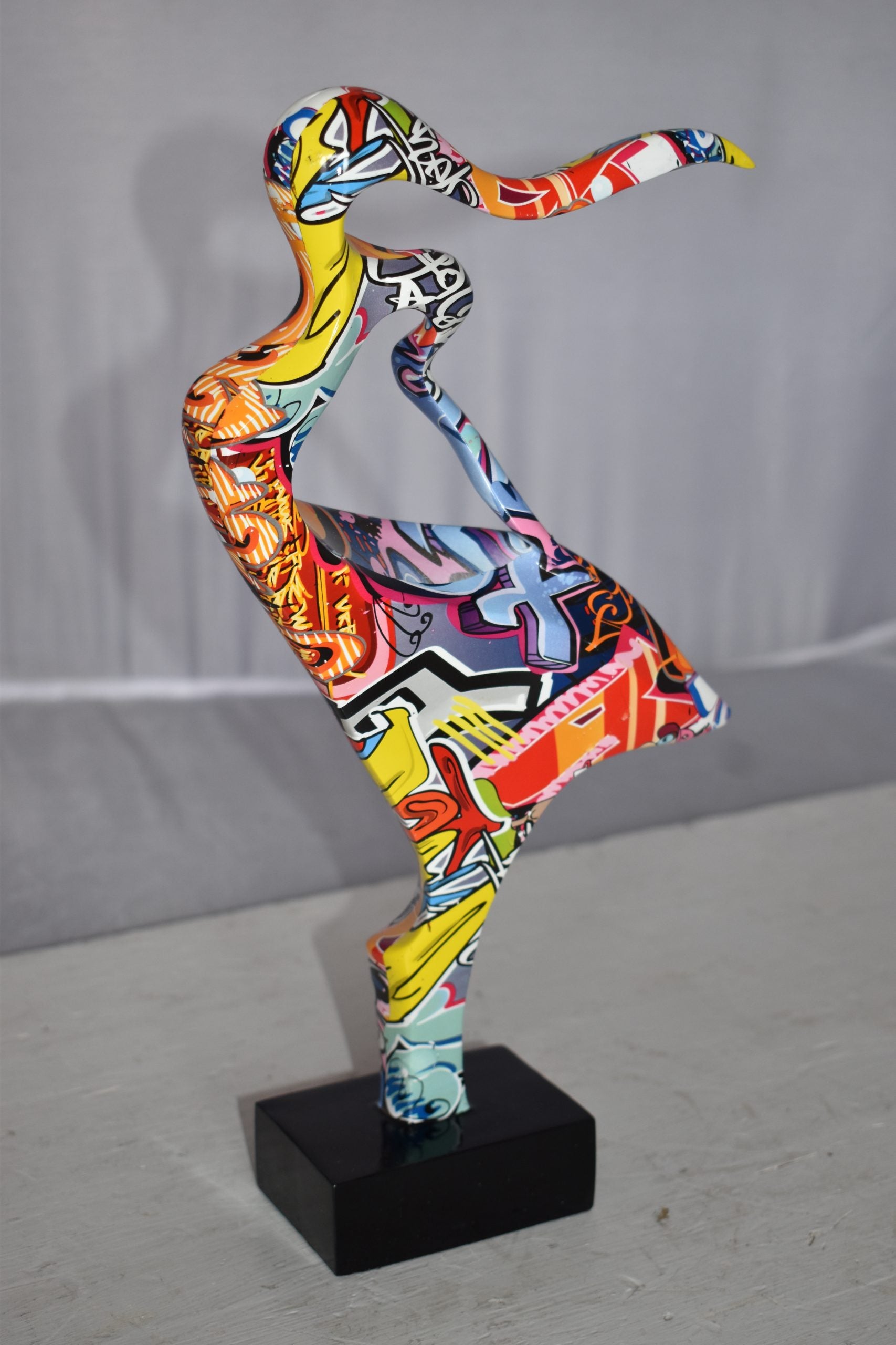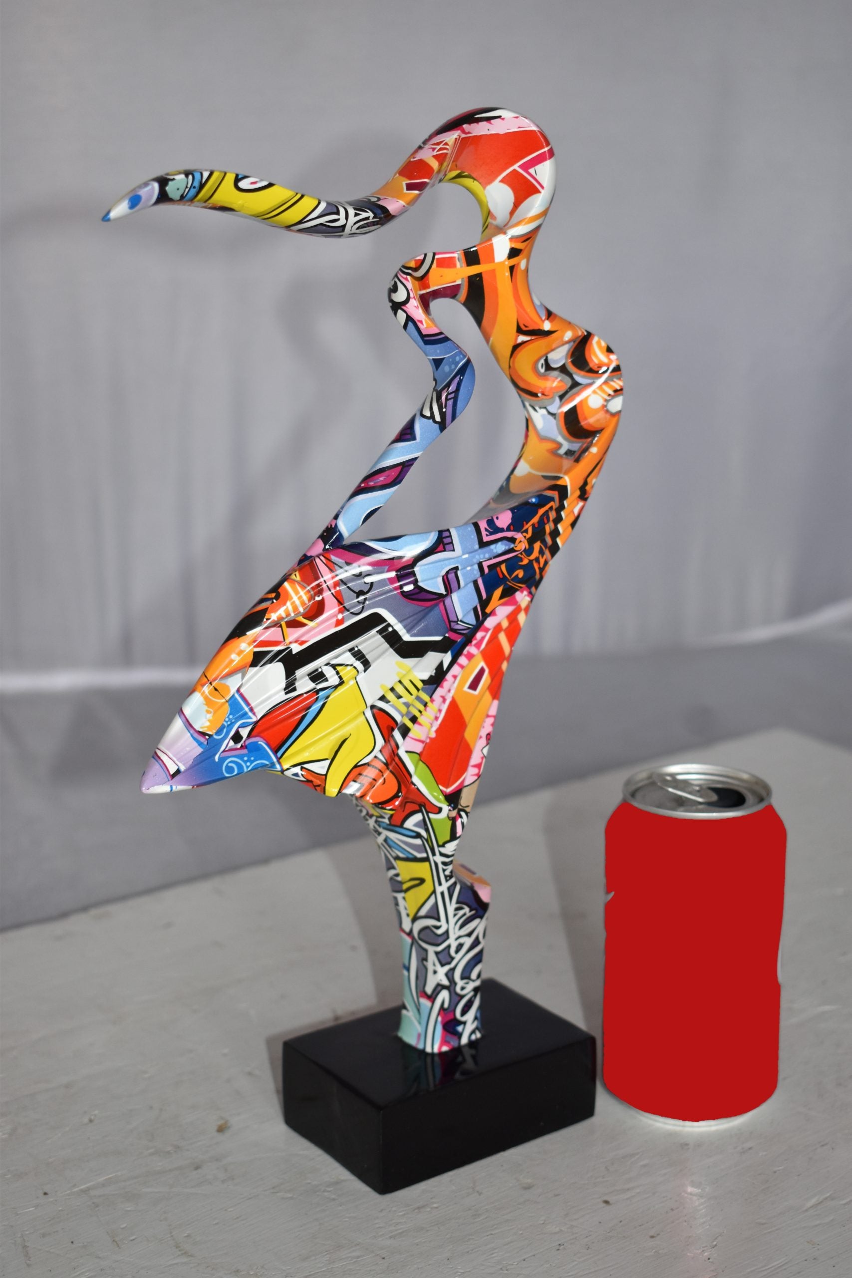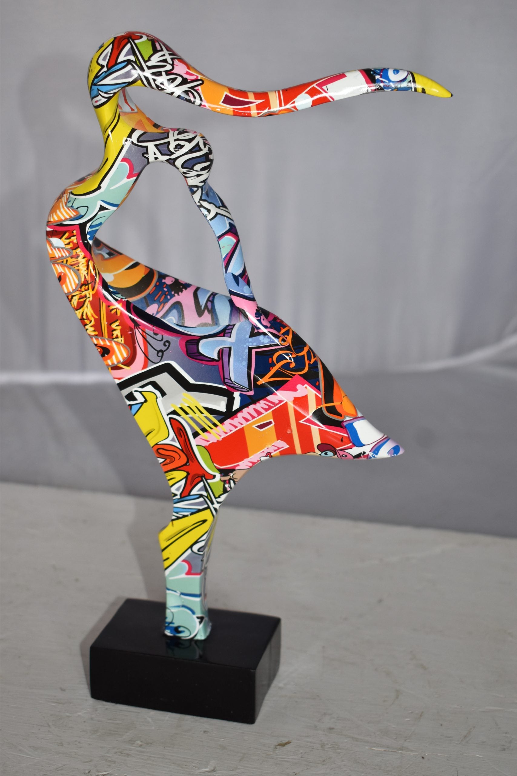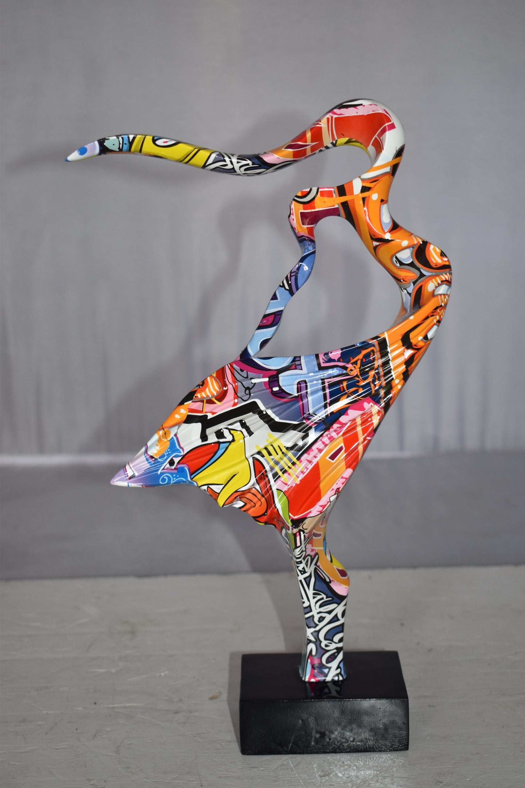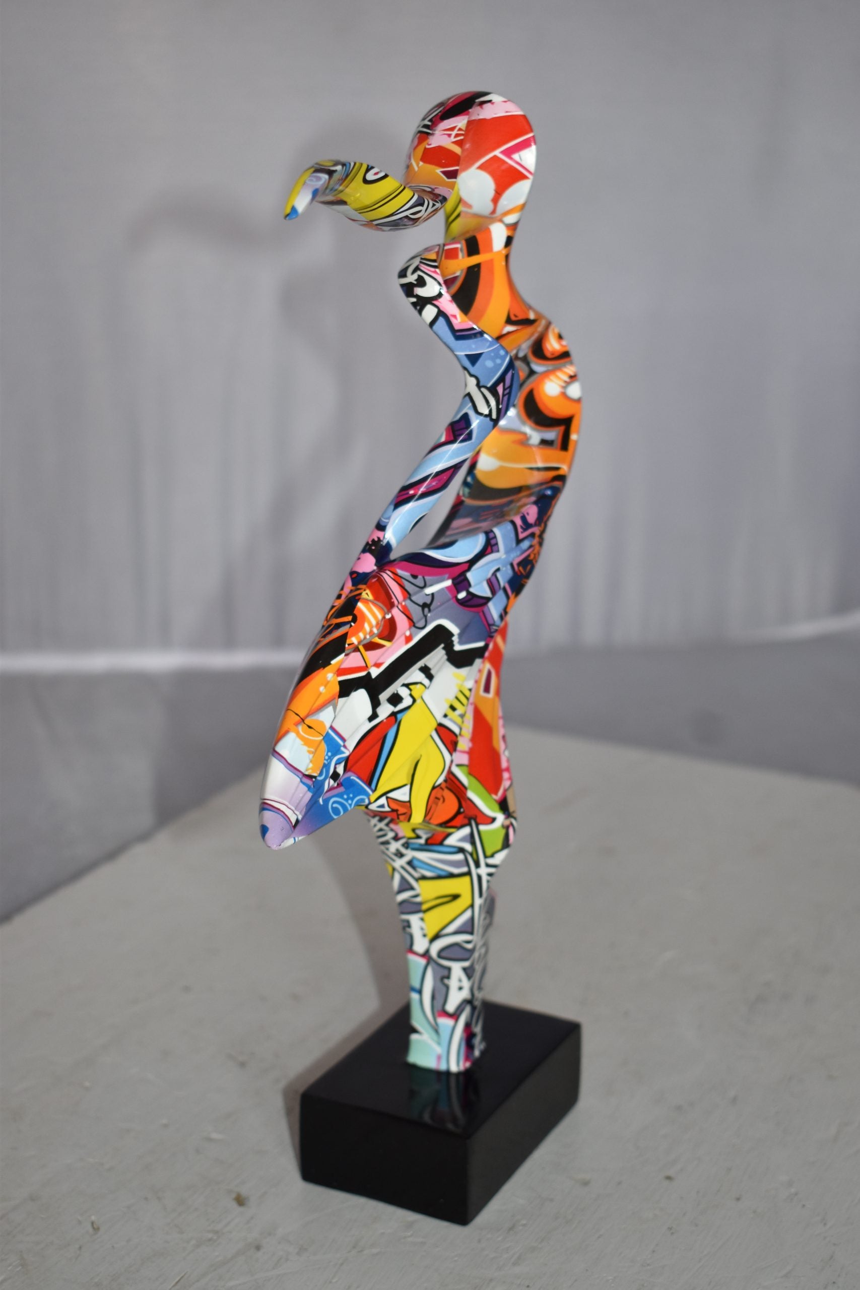 Enjoy this Gone With The Wind Modern Graffiti Resin Statue. This modern abstract would be a great addition to your home. Resin casting is a method of plastic casting where a mold is filled with a liquid synthetic resin, which then hardens. Get one for yourself or surprise a friend with an unforgettable gift! Size: 9"L x 3"W x 14"H. Weight is: 3Lb