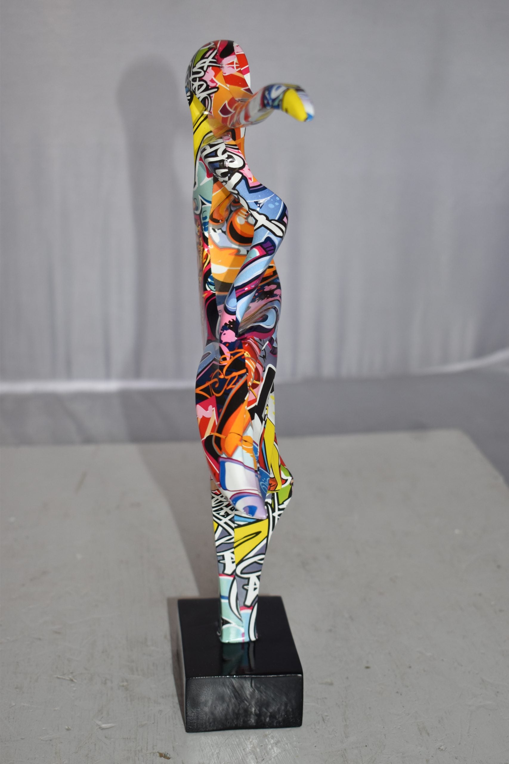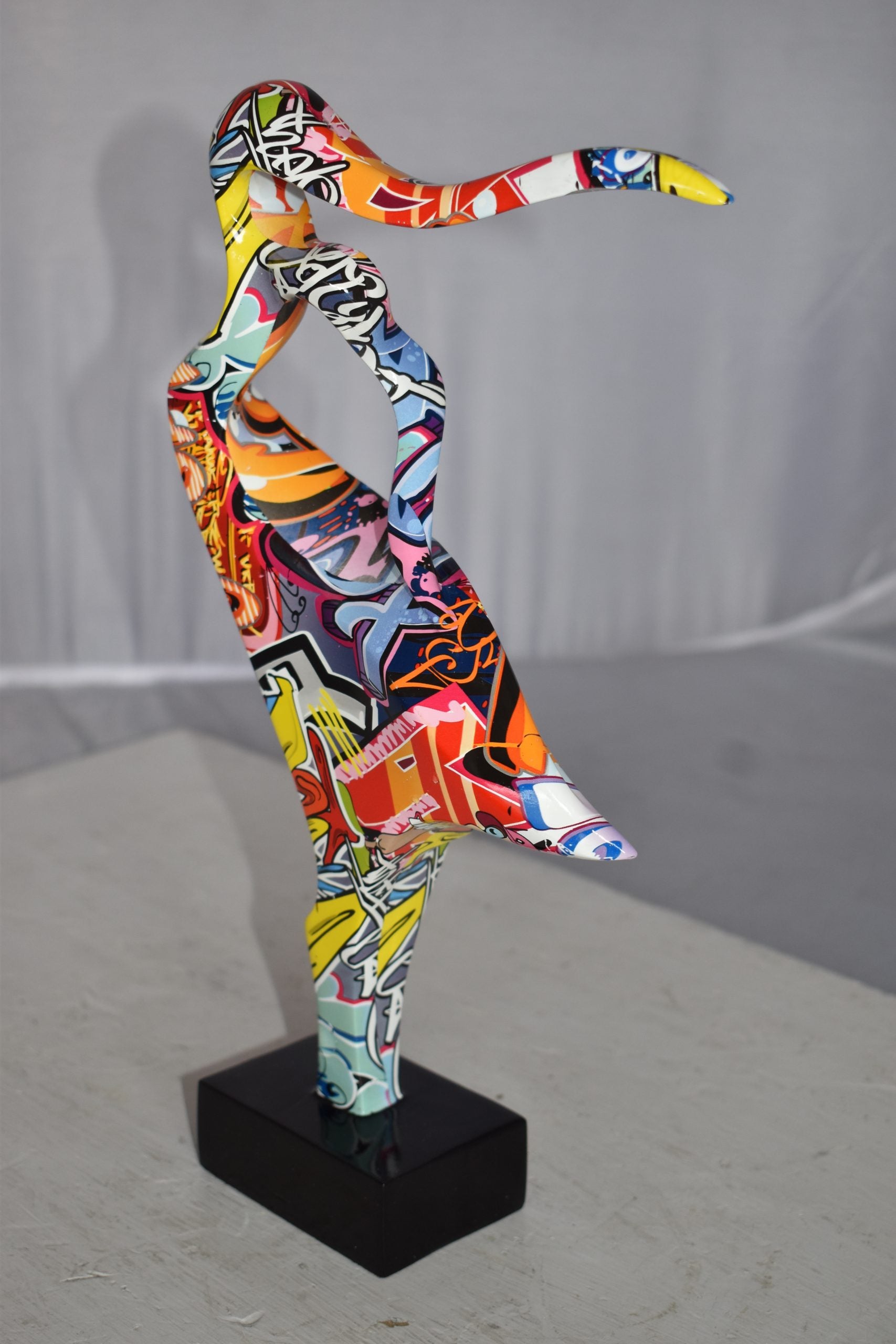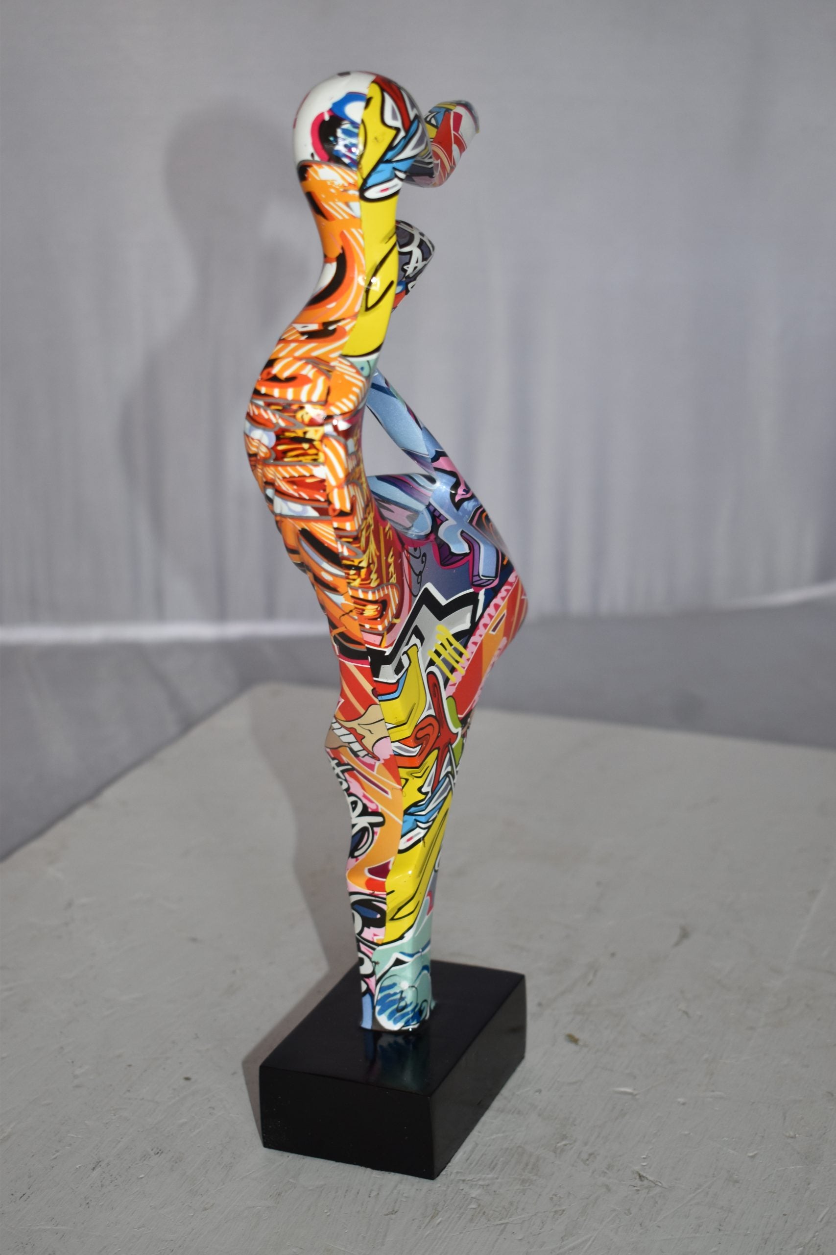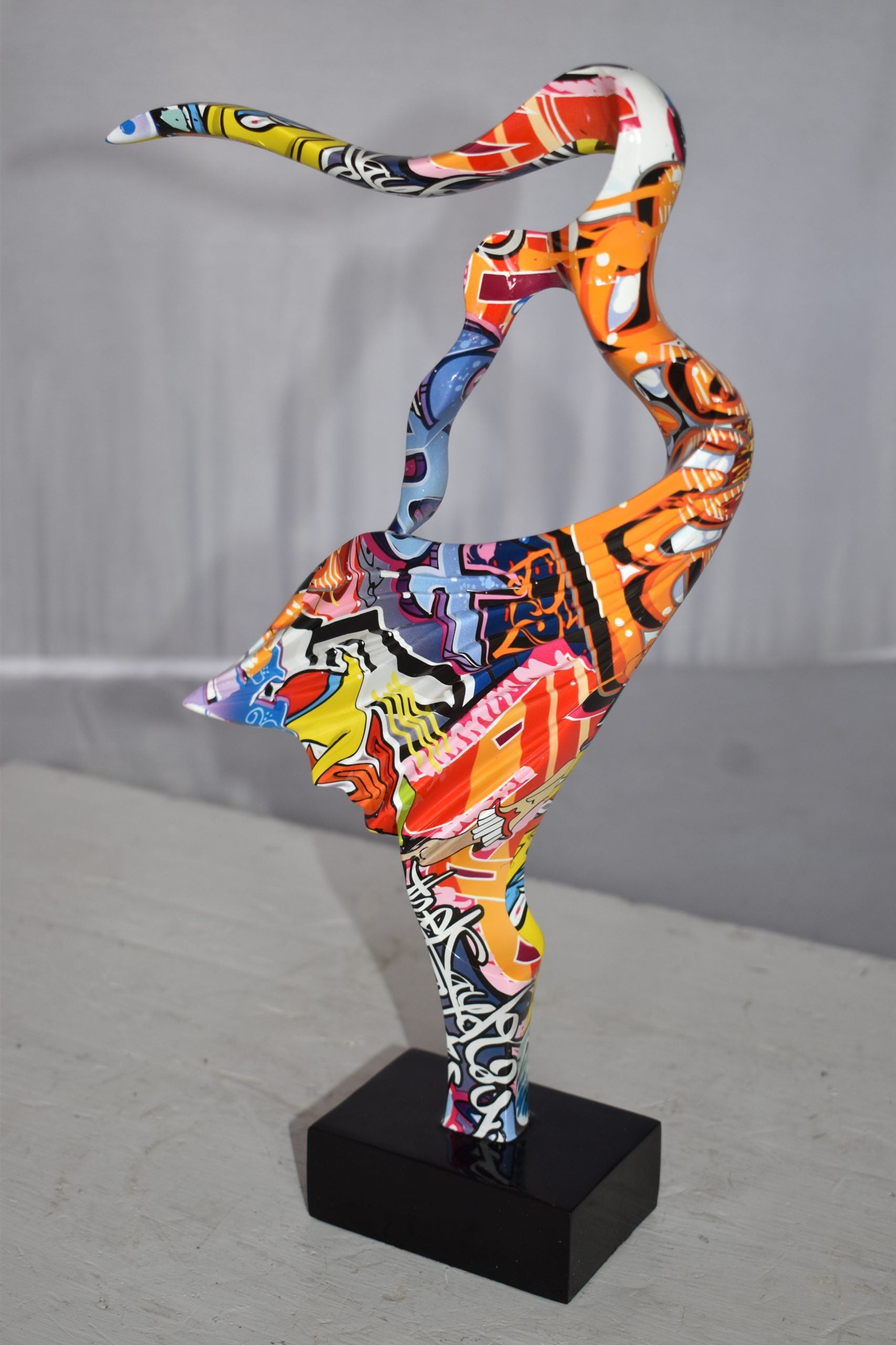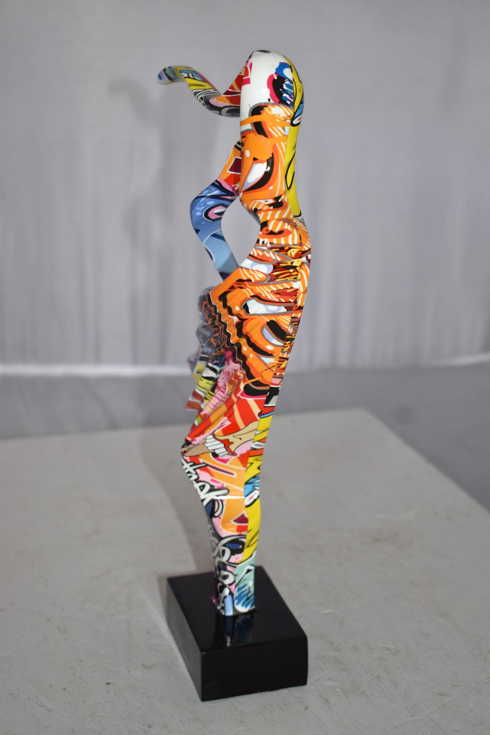 Enjoy this Gone With The Wind Modern Graffiti Resin Statue. This modern abstract would be a great addition to your home. Resin casting is a method of plastic casting where a mold is filled with a liquid synthetic resin, which then hardens. Get one for yourself or surprise a friend with an unforgettable gift! Size: 9"L x 3"W x 14"H. Weight is: 3Lb