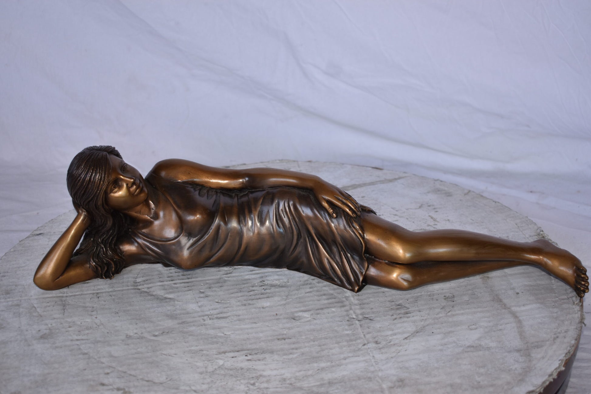 Gorgeous Young Lady Laying on The Ground Bronze Statue - Size: 5"L x 21"W x 5"H.