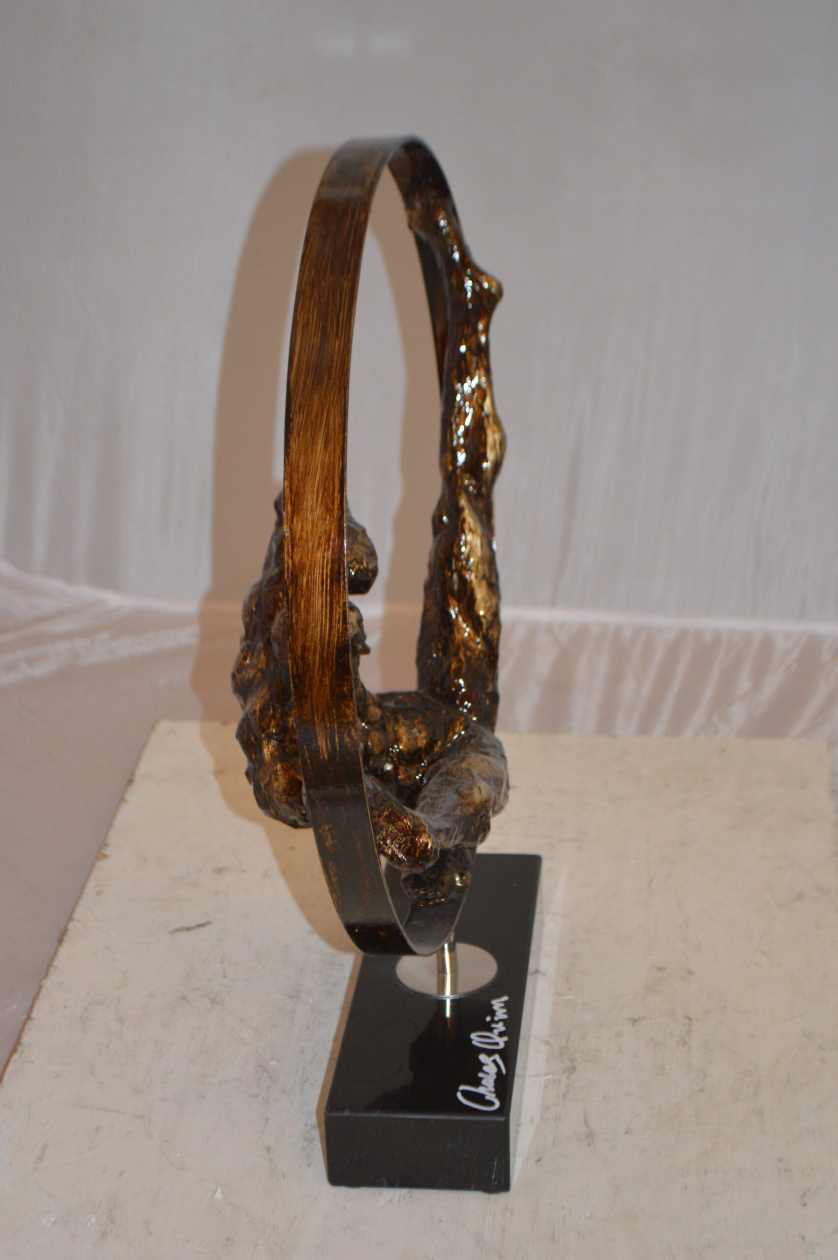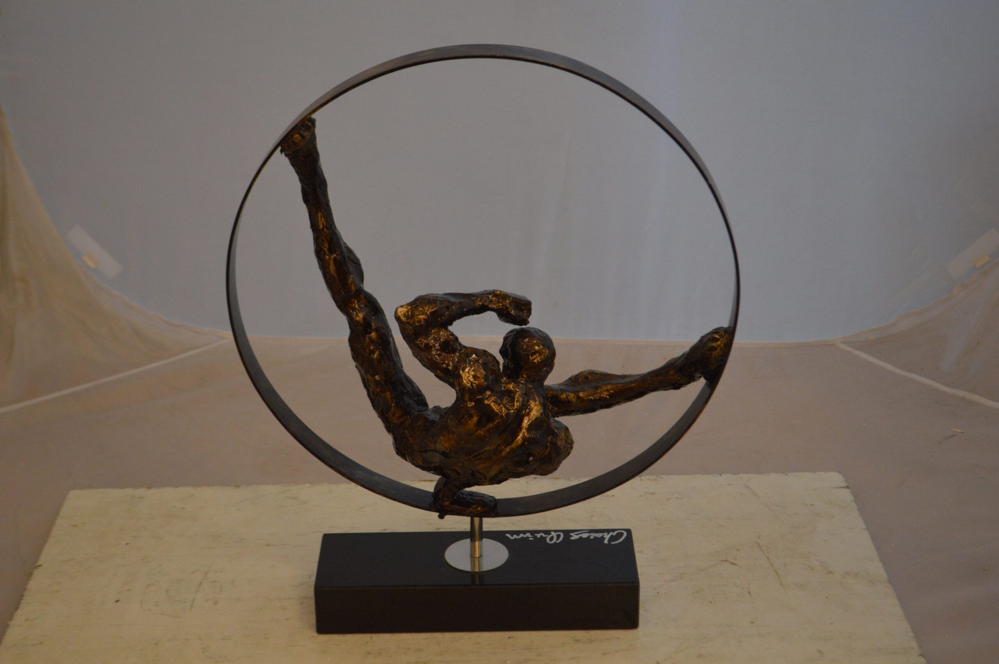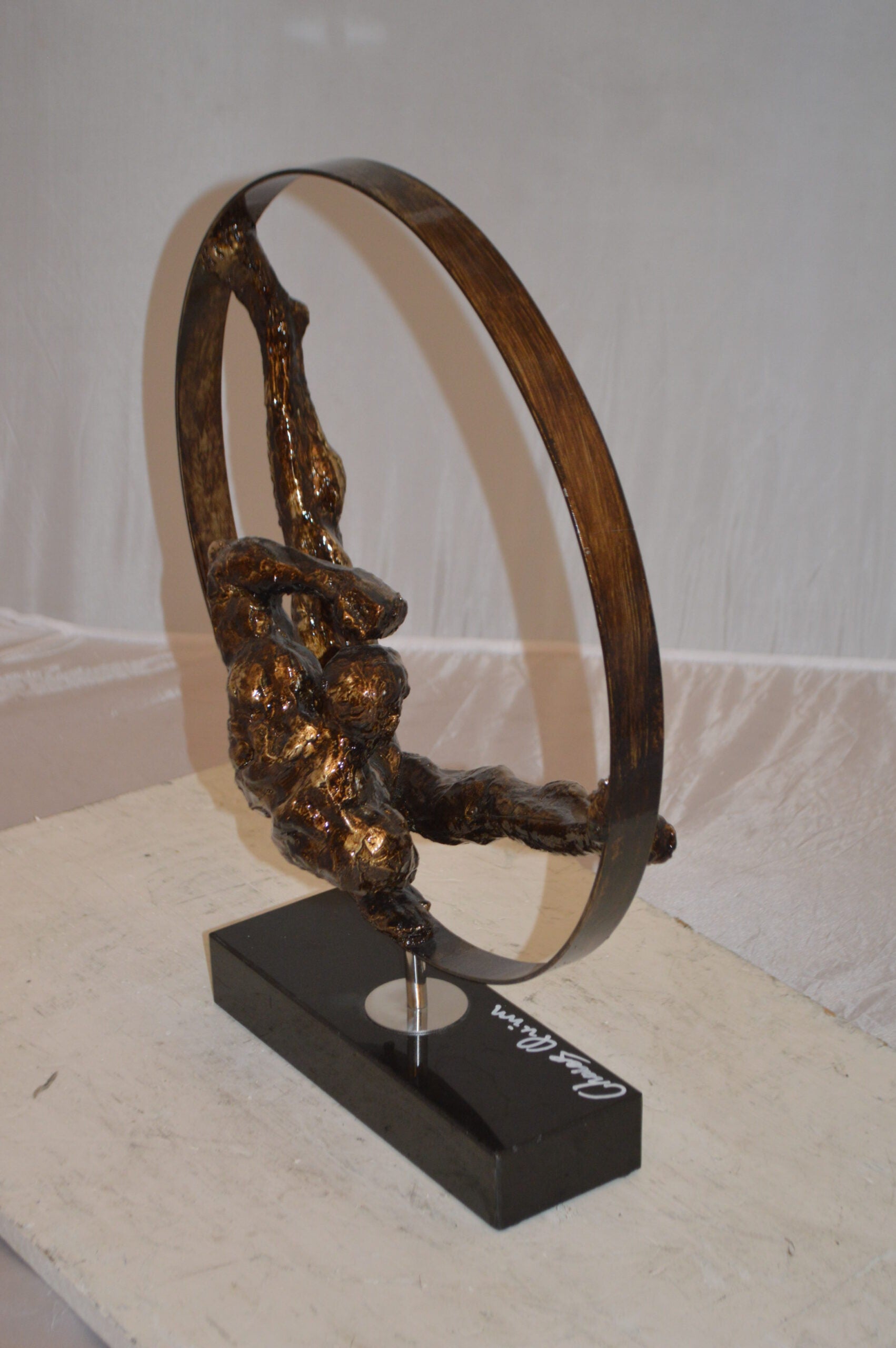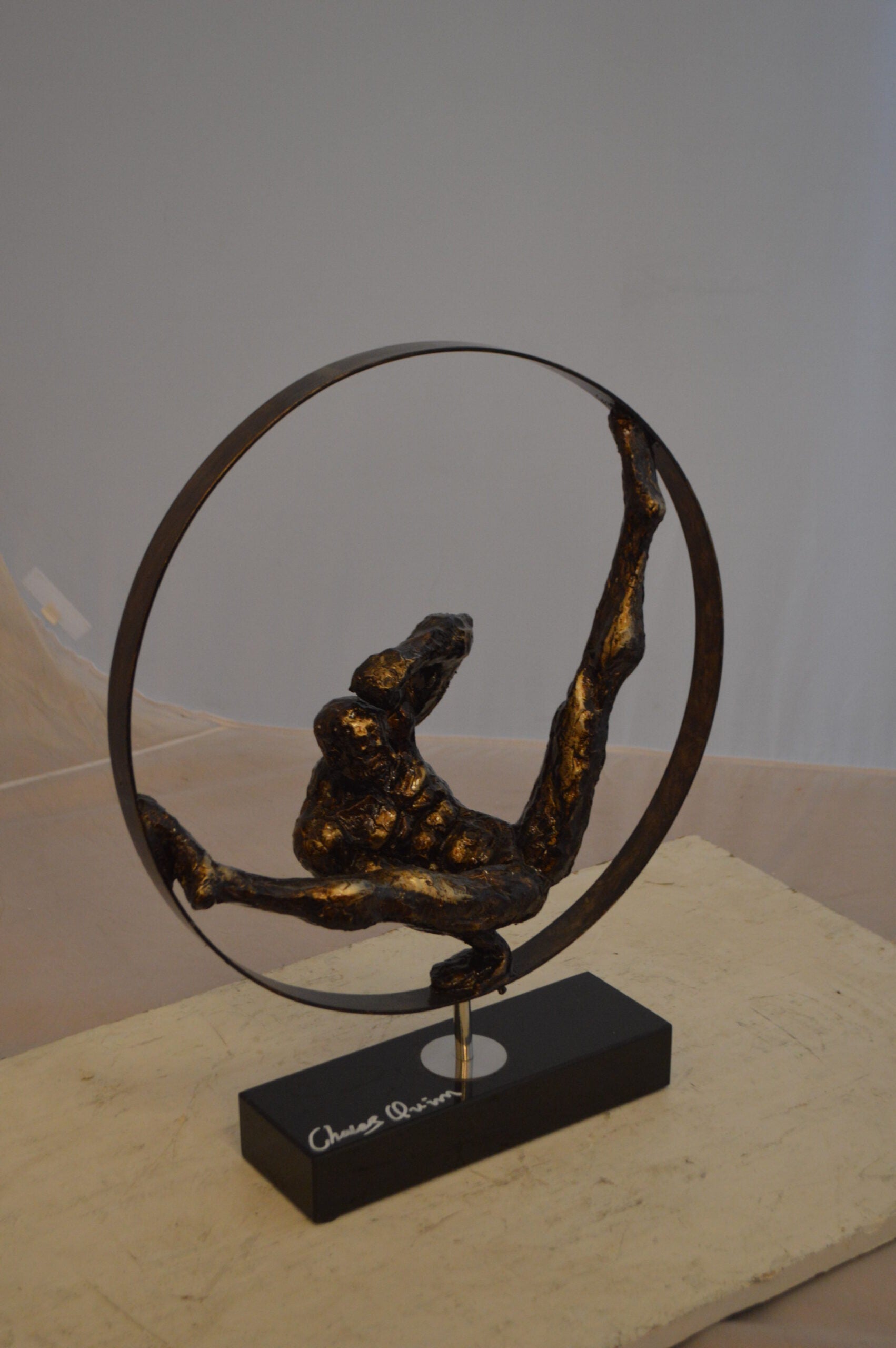 Imagine the dynamic touch you'll add to your decor with this eye-catching Gymnast Resin Tabletop sculpture. This unique sculpture features an oversized ring and gymnast conquering it, mounted on a marble base. Size: 5"L x 17"W x 22"H. Weight is: 8Lb