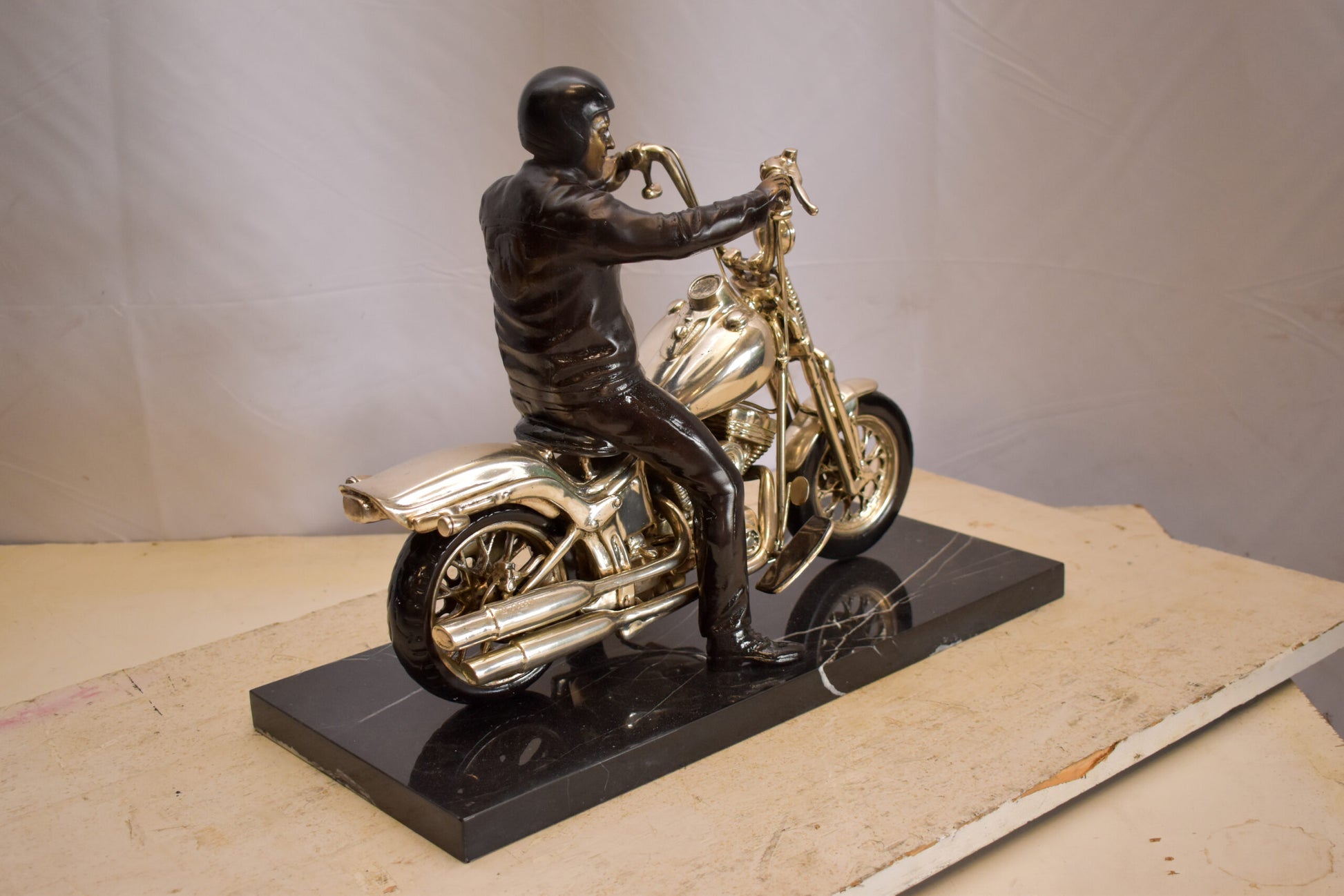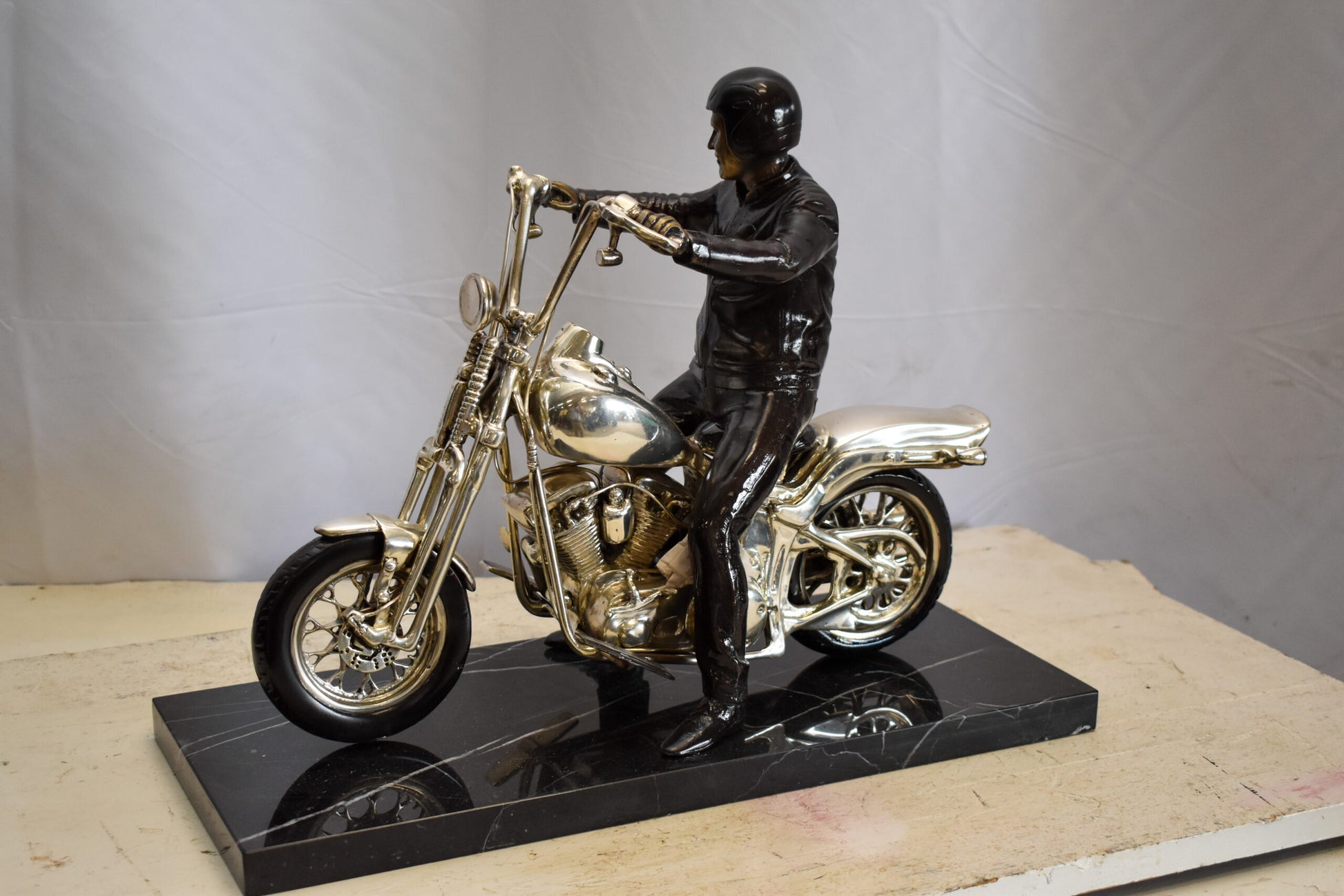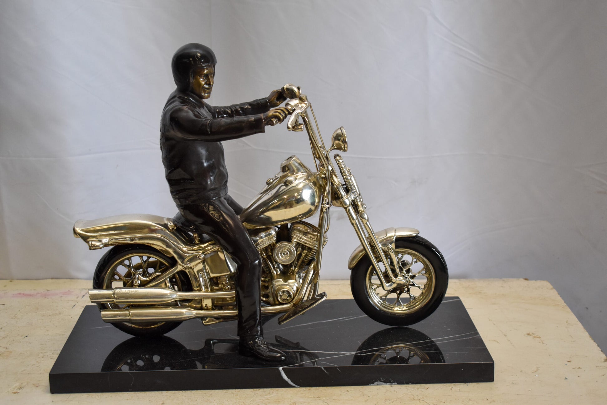 Harley Davidson Rider on his Bike Replica Bronze Statue 20" x 9" x 13"H