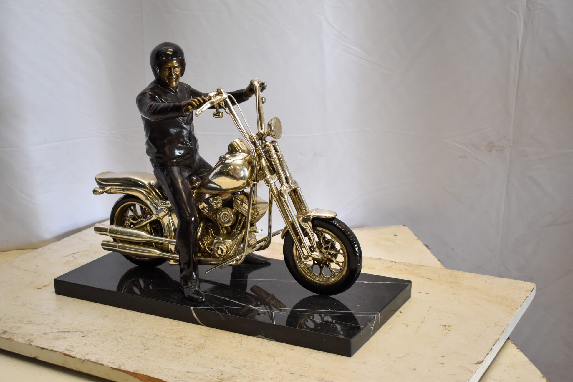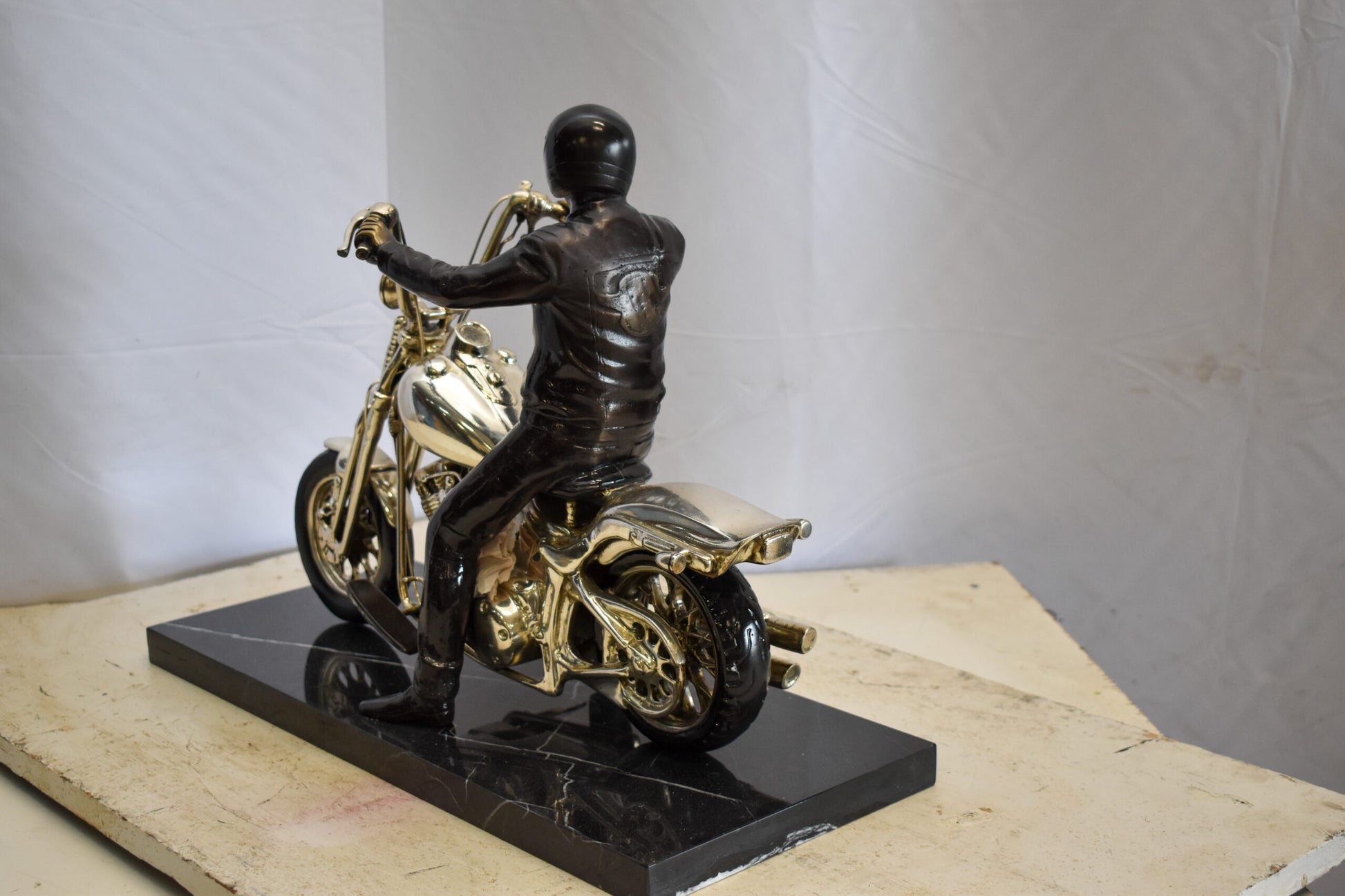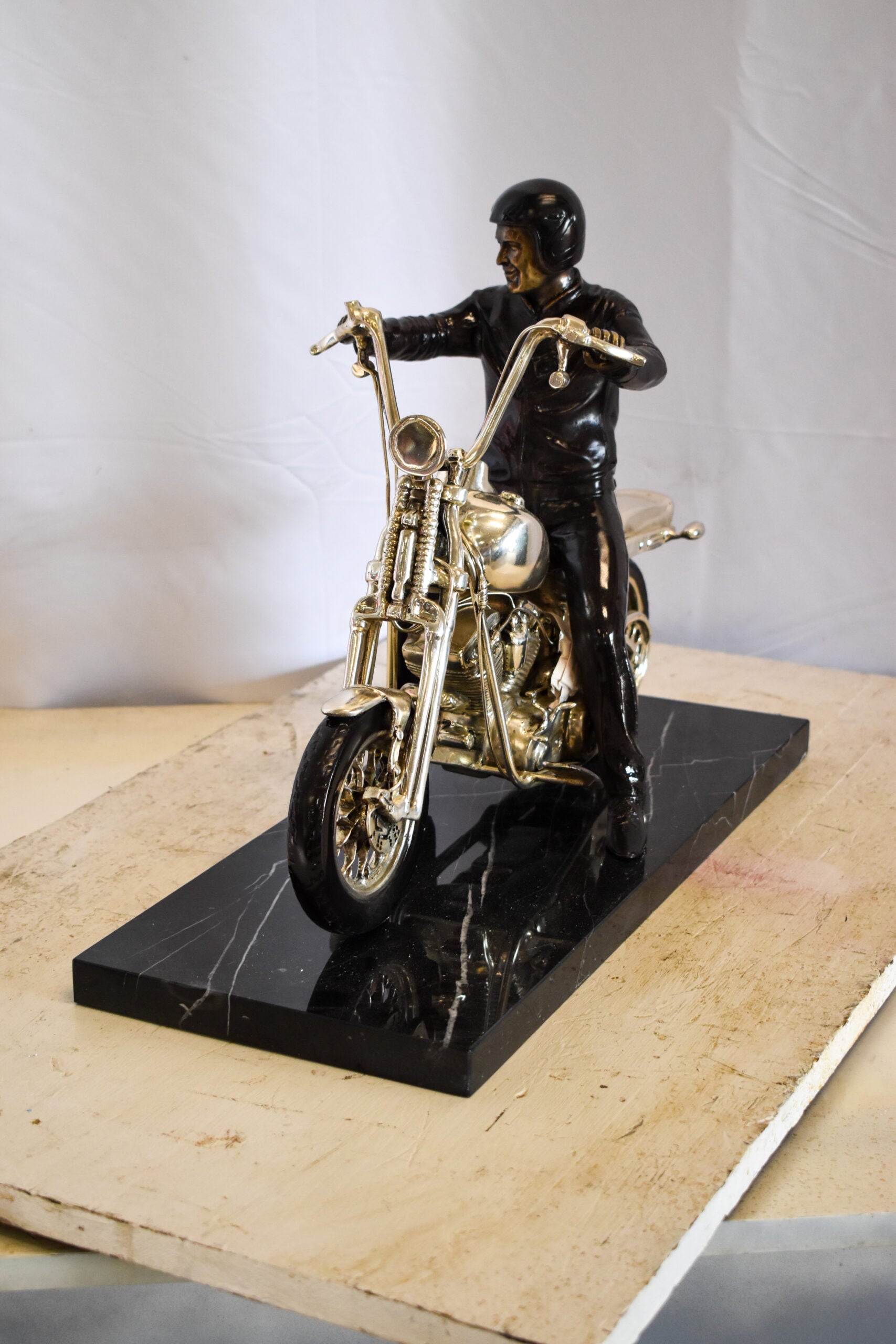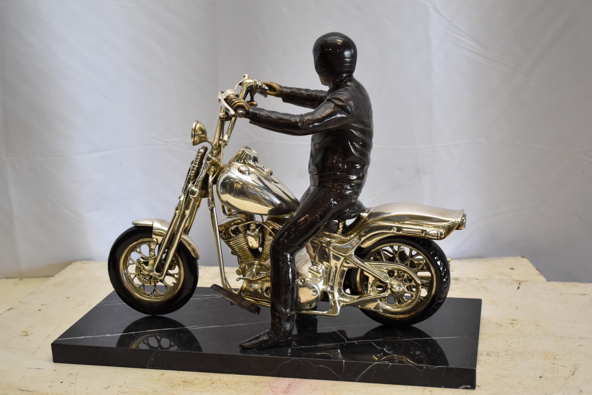 Harley Davidson Rider on his Bike Replica Bronze Statue 20" x 9" x 13"H