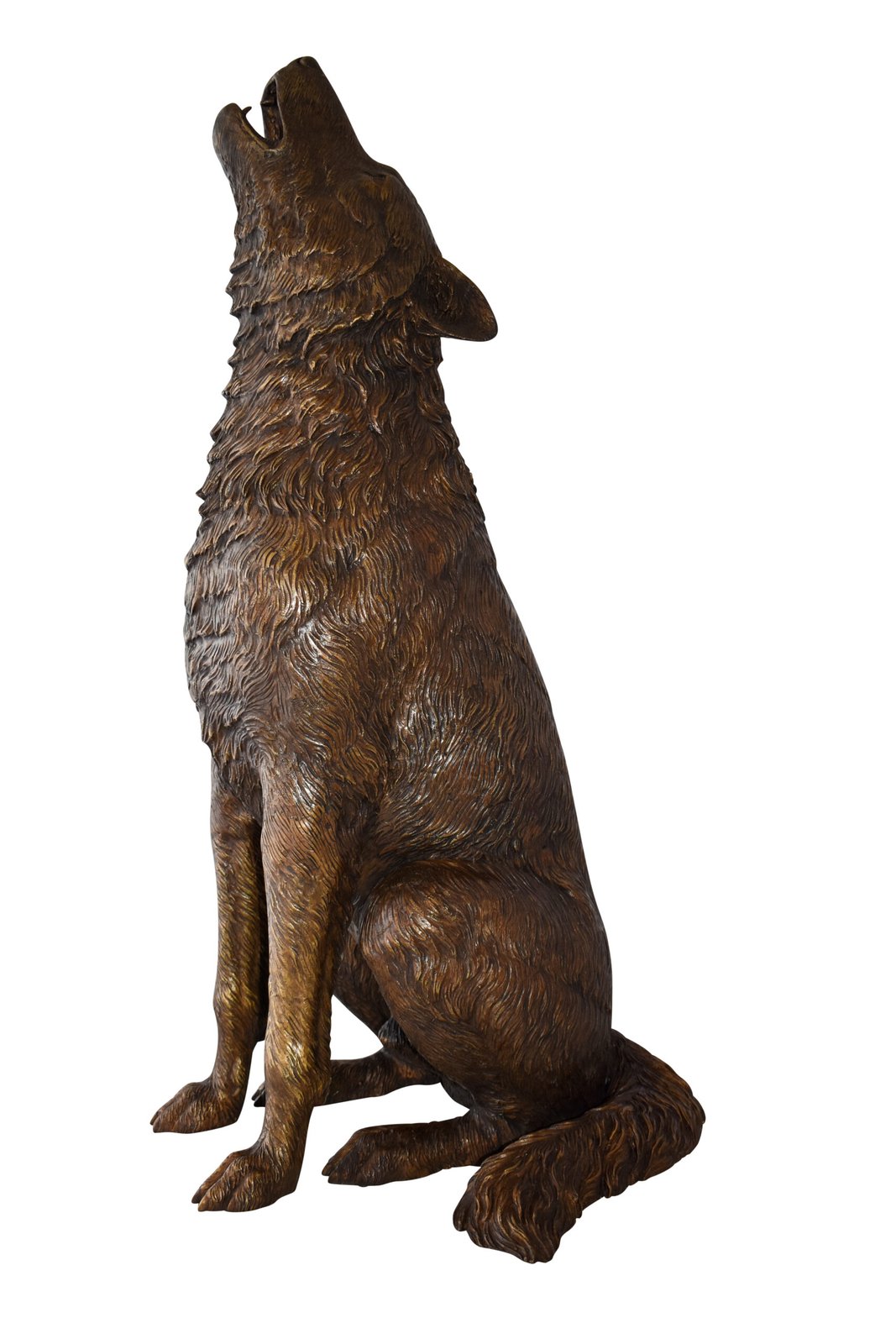 Howling Wolf looking toward the sky Bronze Statue Size: 19" x 19" x 37"H