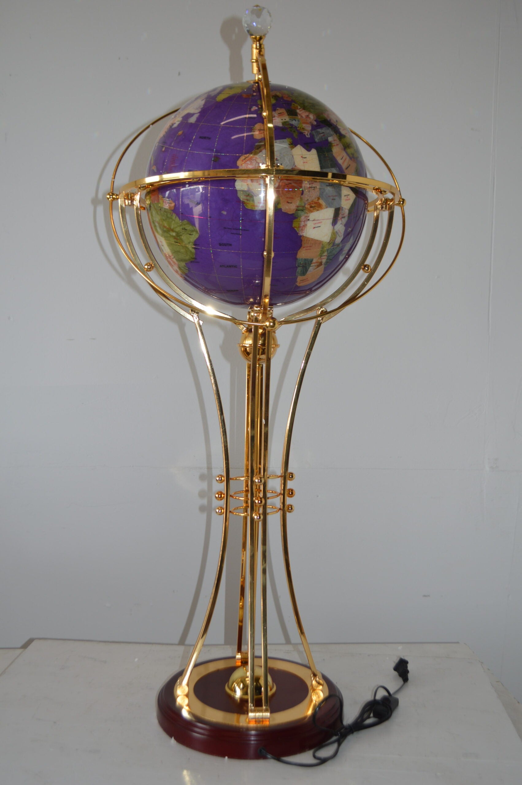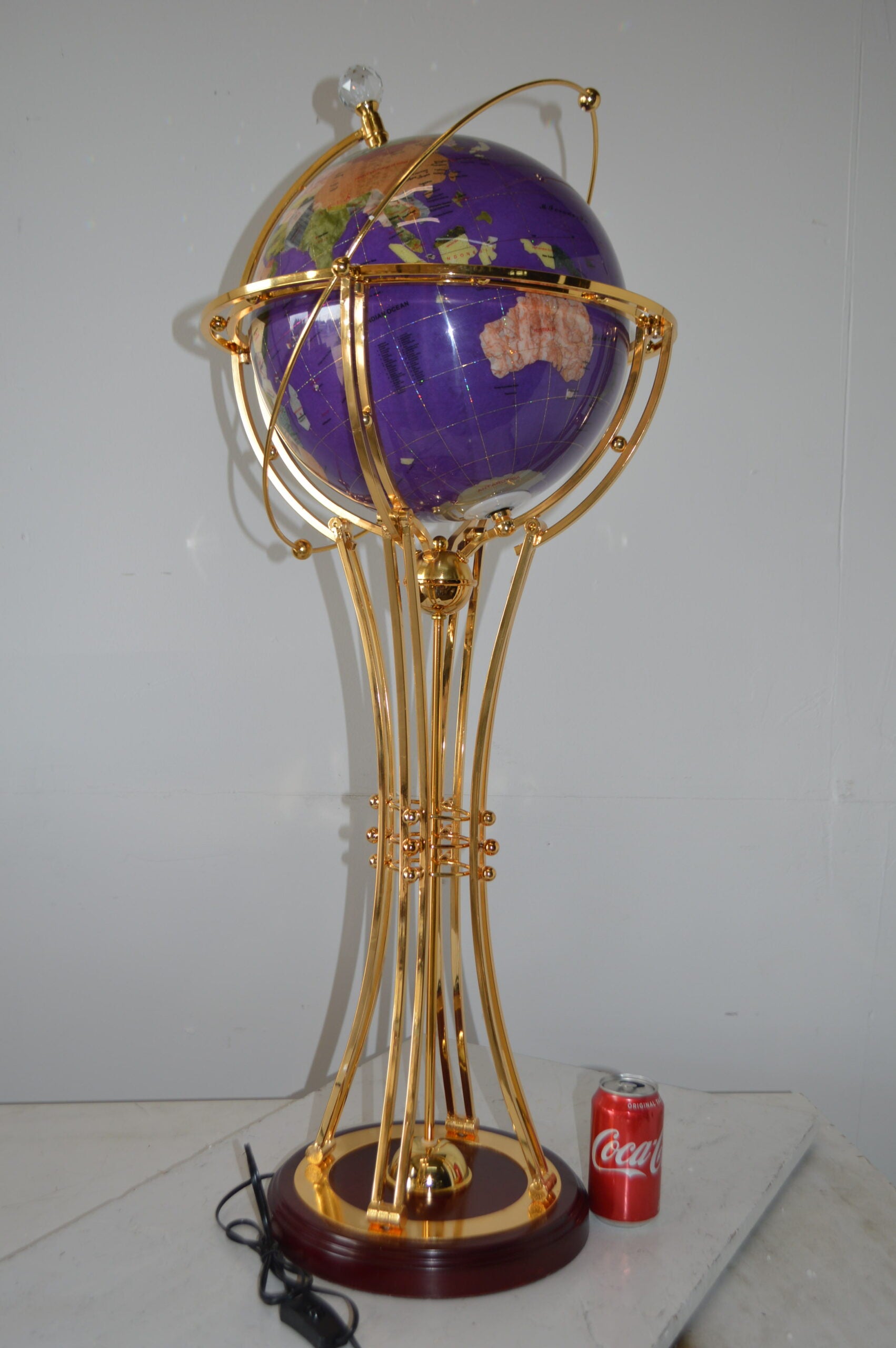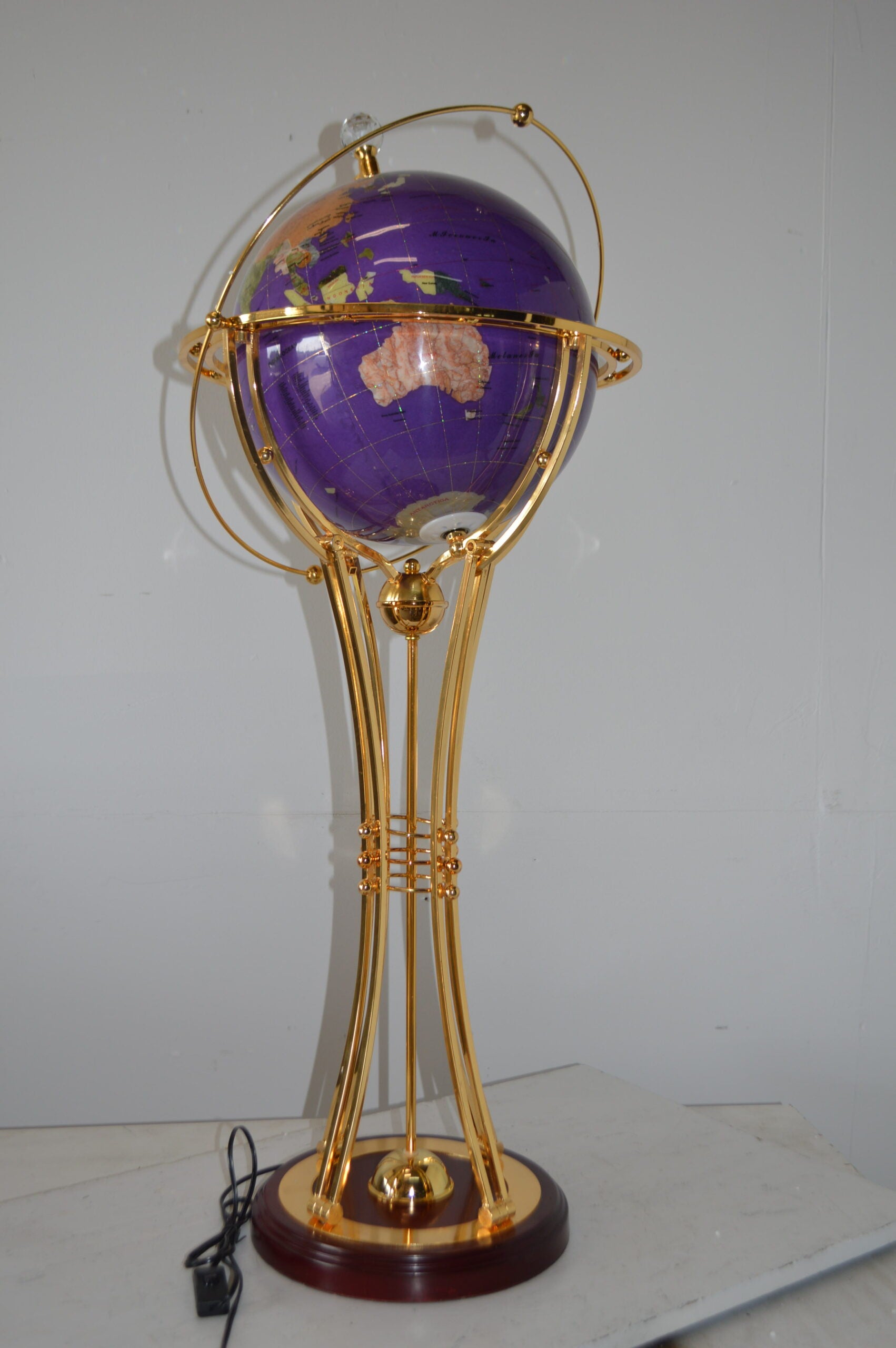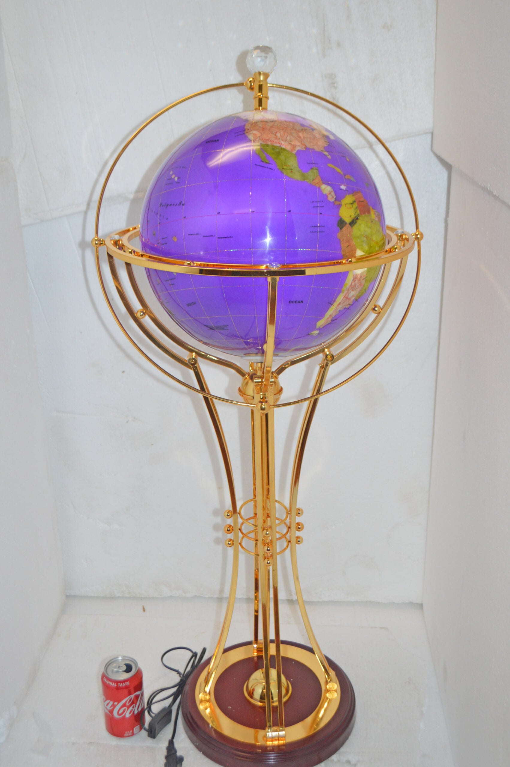 Illuminated Purple - Gold World Globe Rotated by motor - Size: 19" x 19" x 42"H