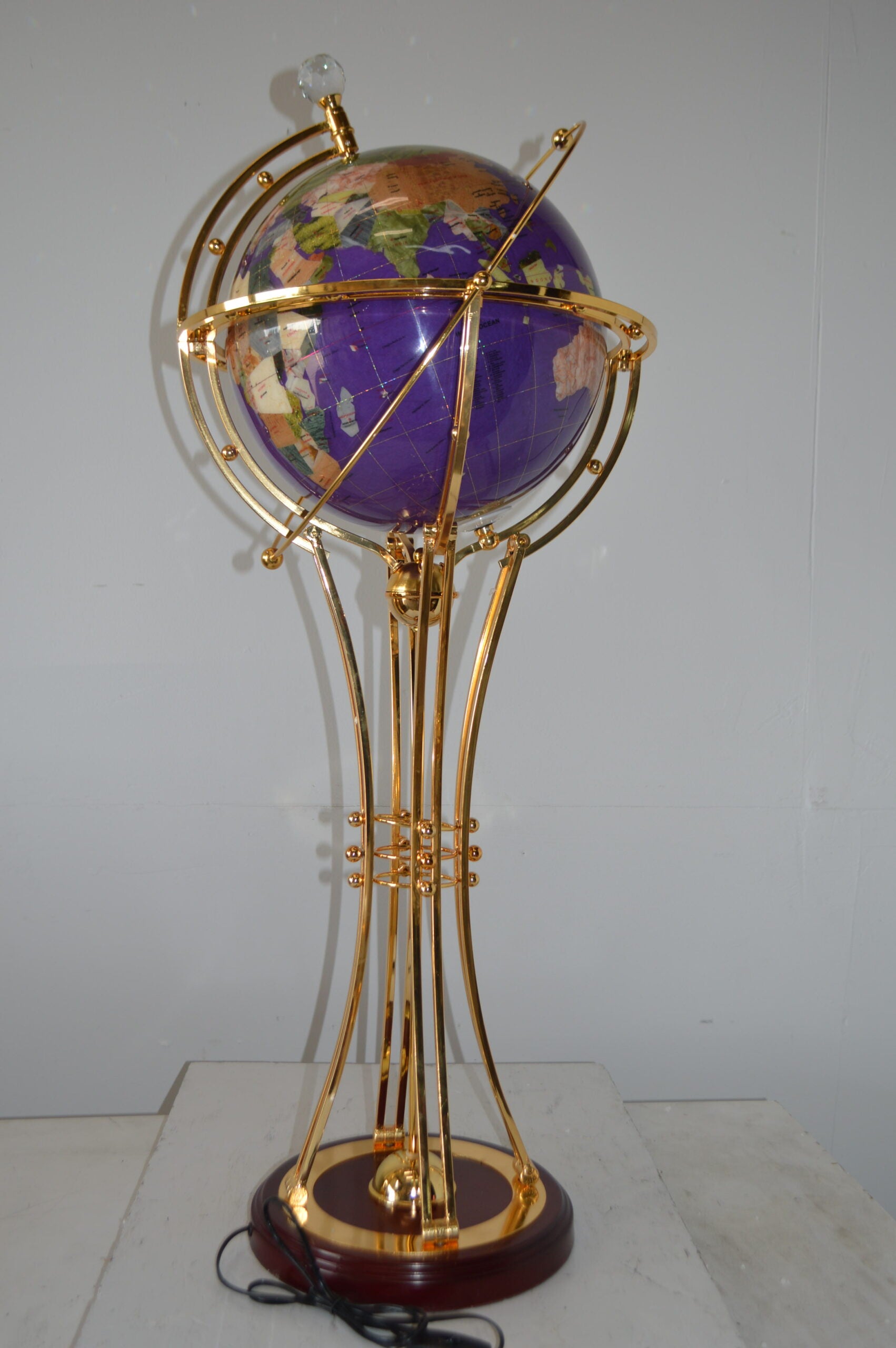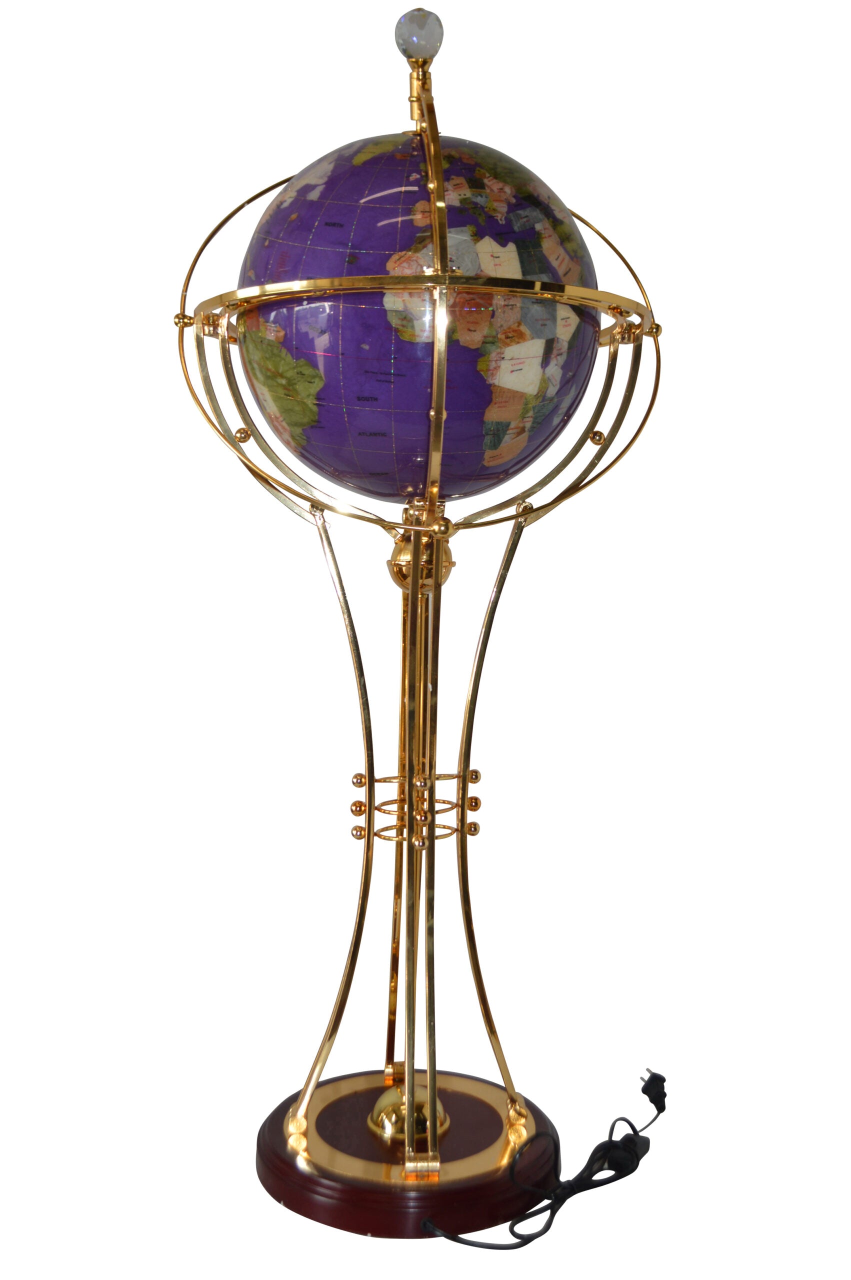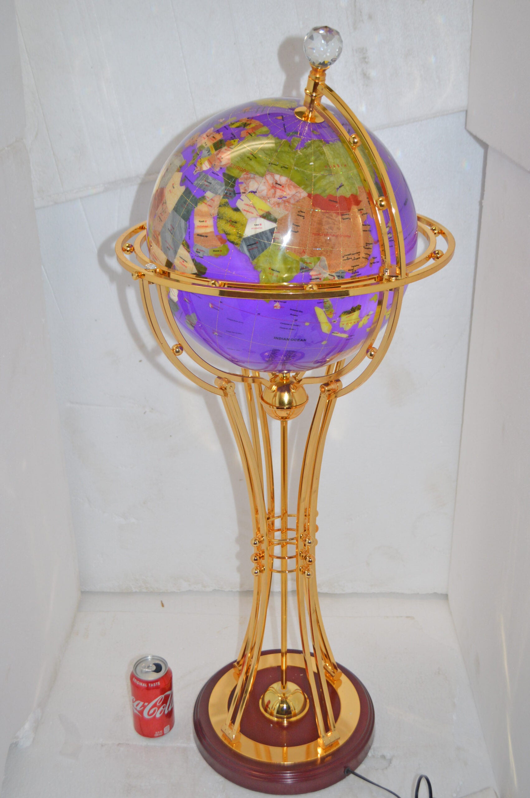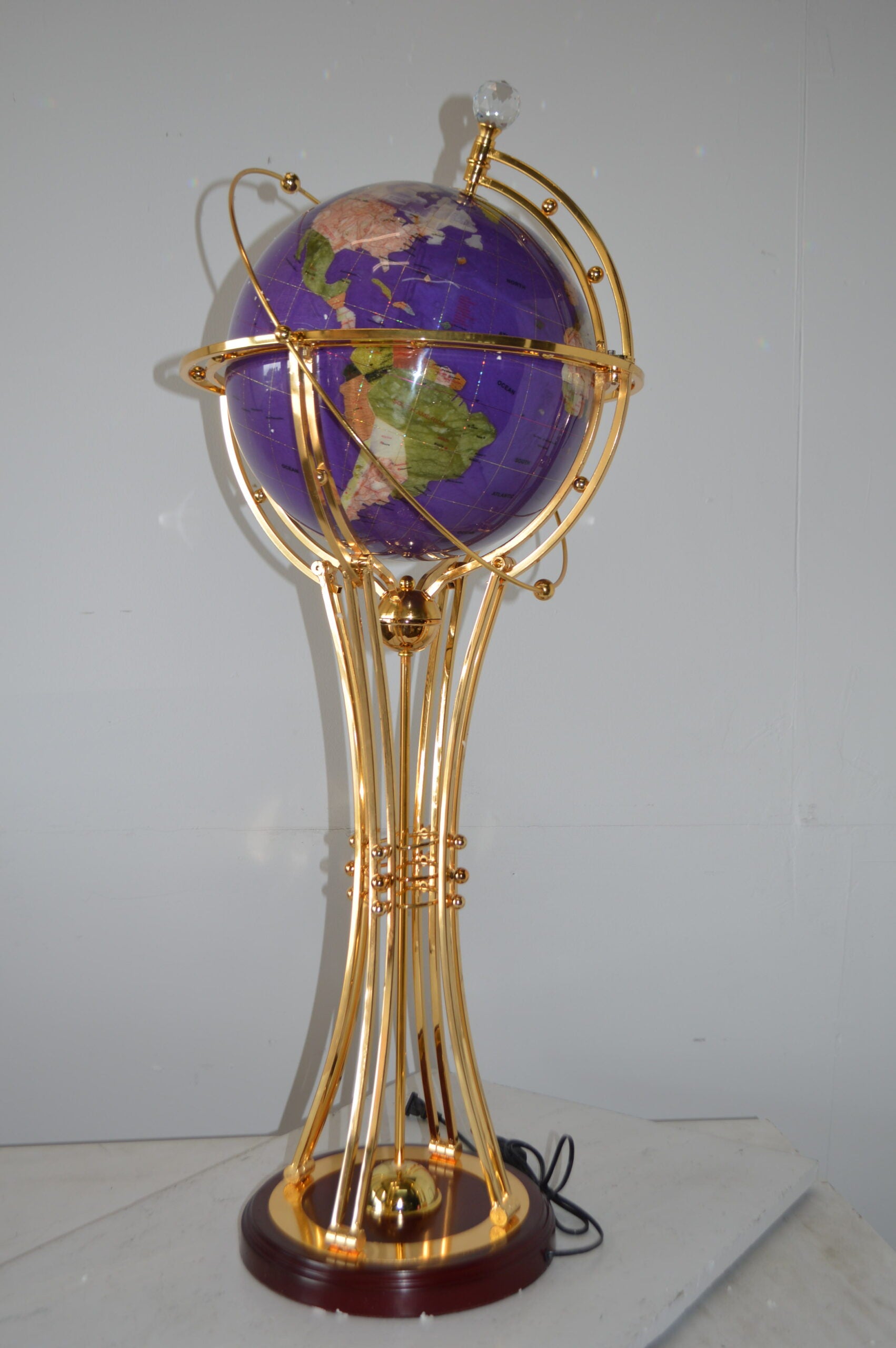 Illuminated Purple - Gold World Globe Rotated by motor - Size: 19" x 19" x 42"H