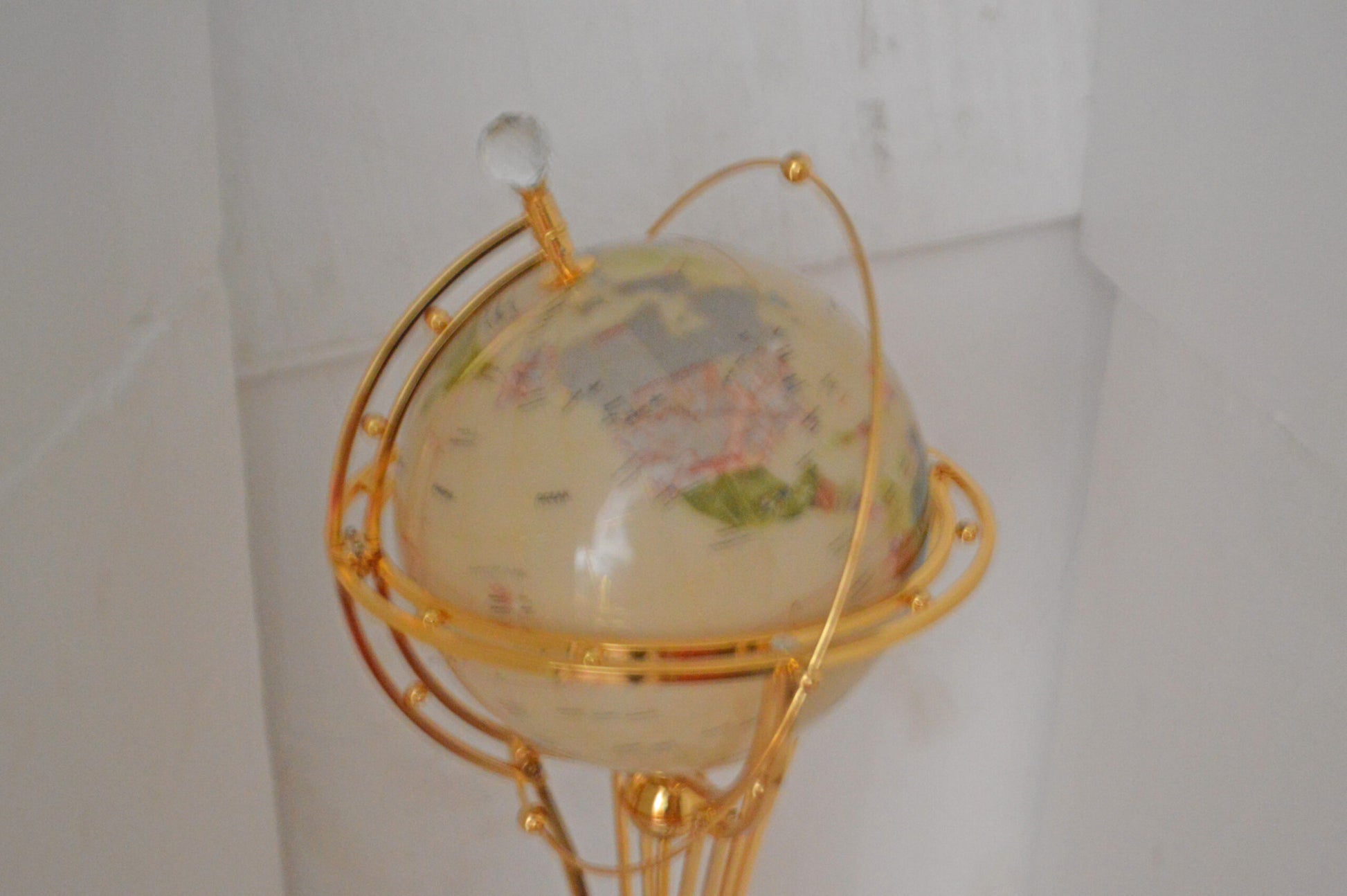 Illuminated White Gold World Globe Rotated by motor - Size: 19"L x 19"W x 42"H.