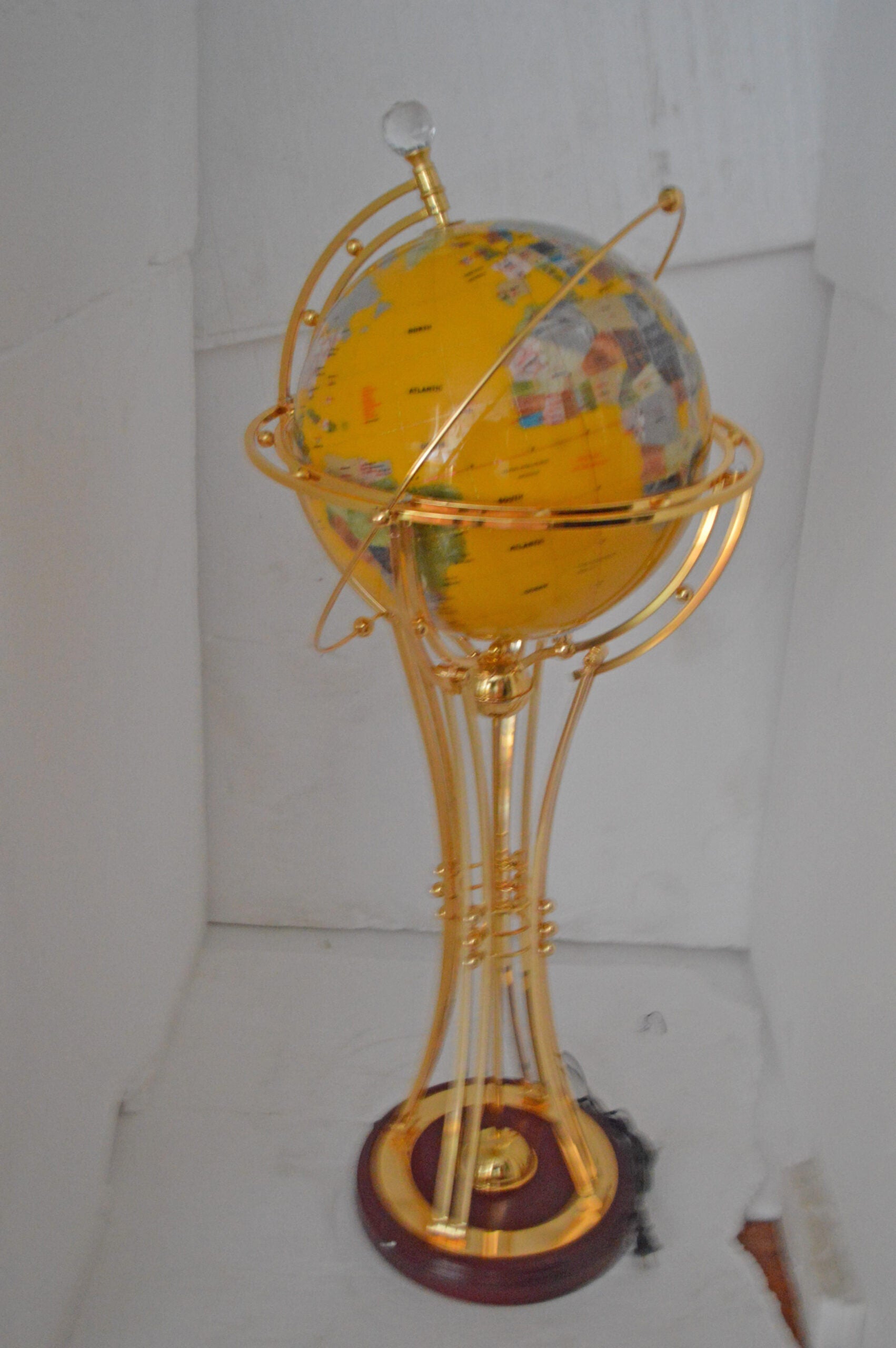 Illuminated Yellow Gold World Globe Rotated by a Motor - Size: 19" x 19" x 42"H