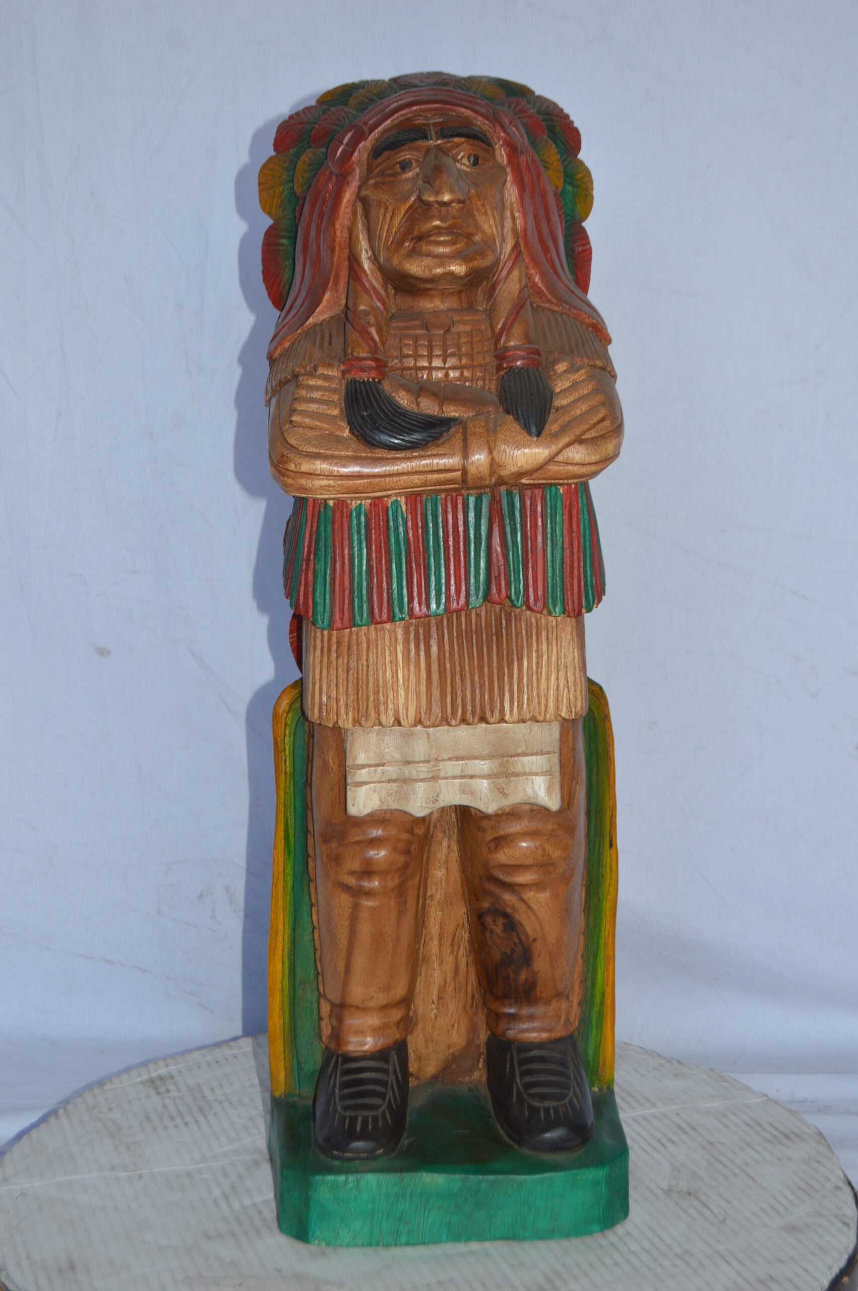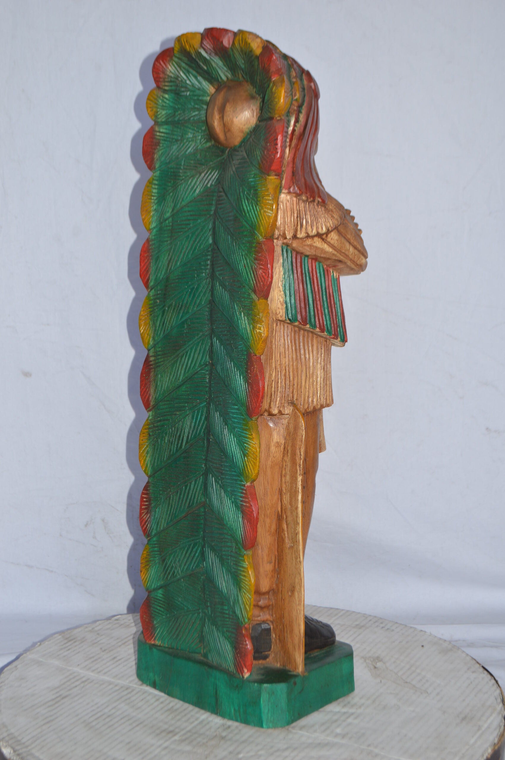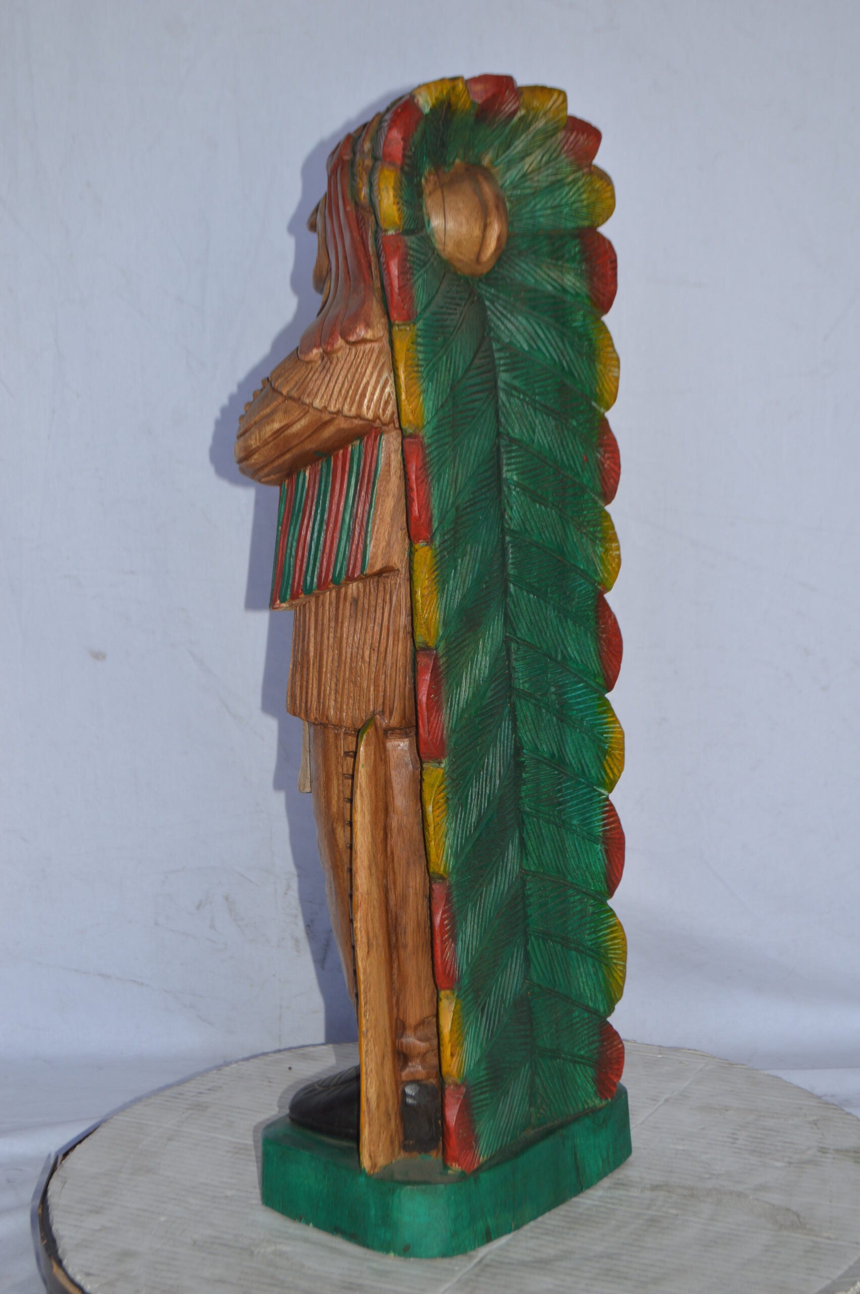 Indian Chief Made of Wood Statue - Medium - Size: 7"L x 10"W x 30"H.