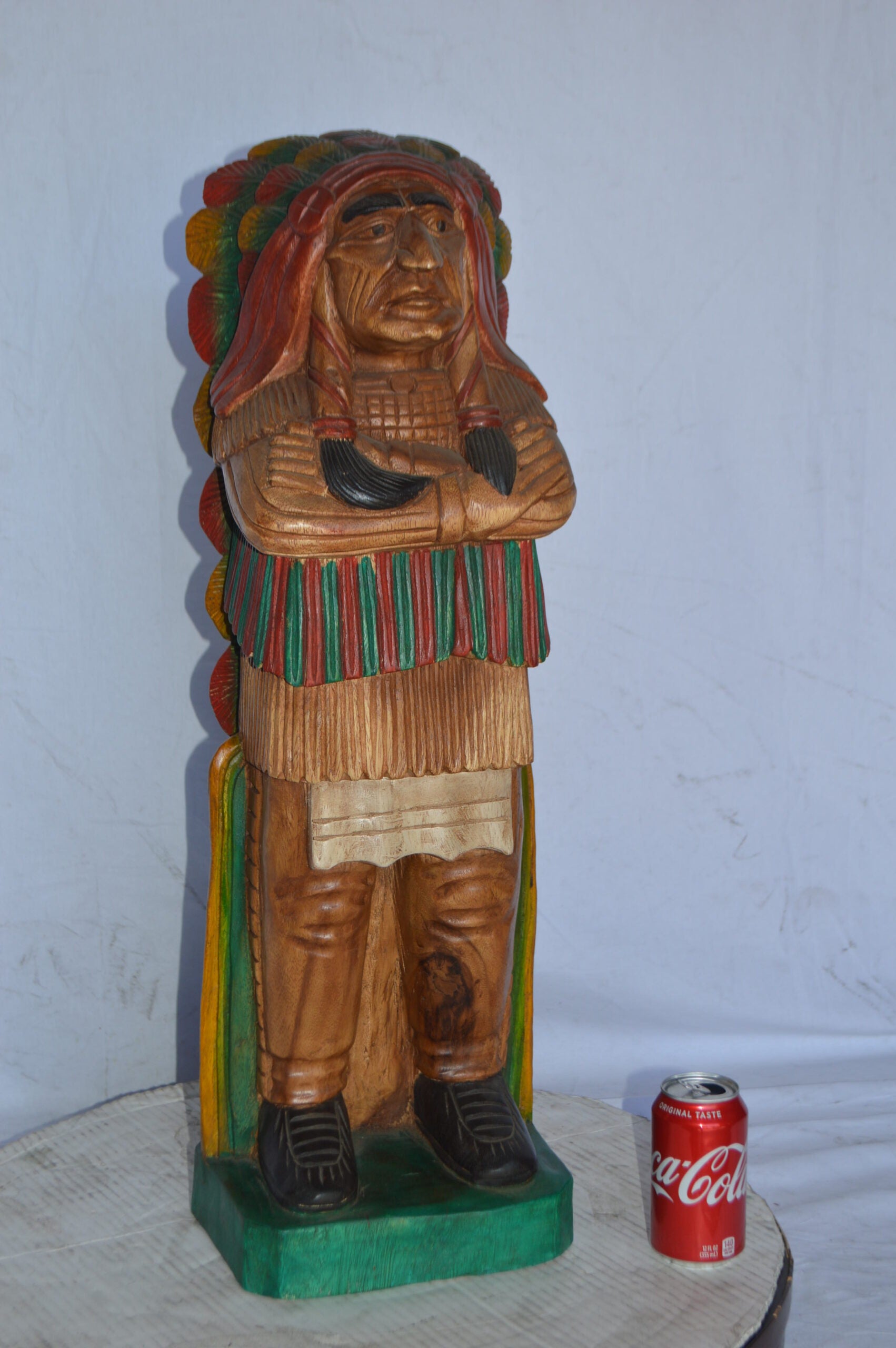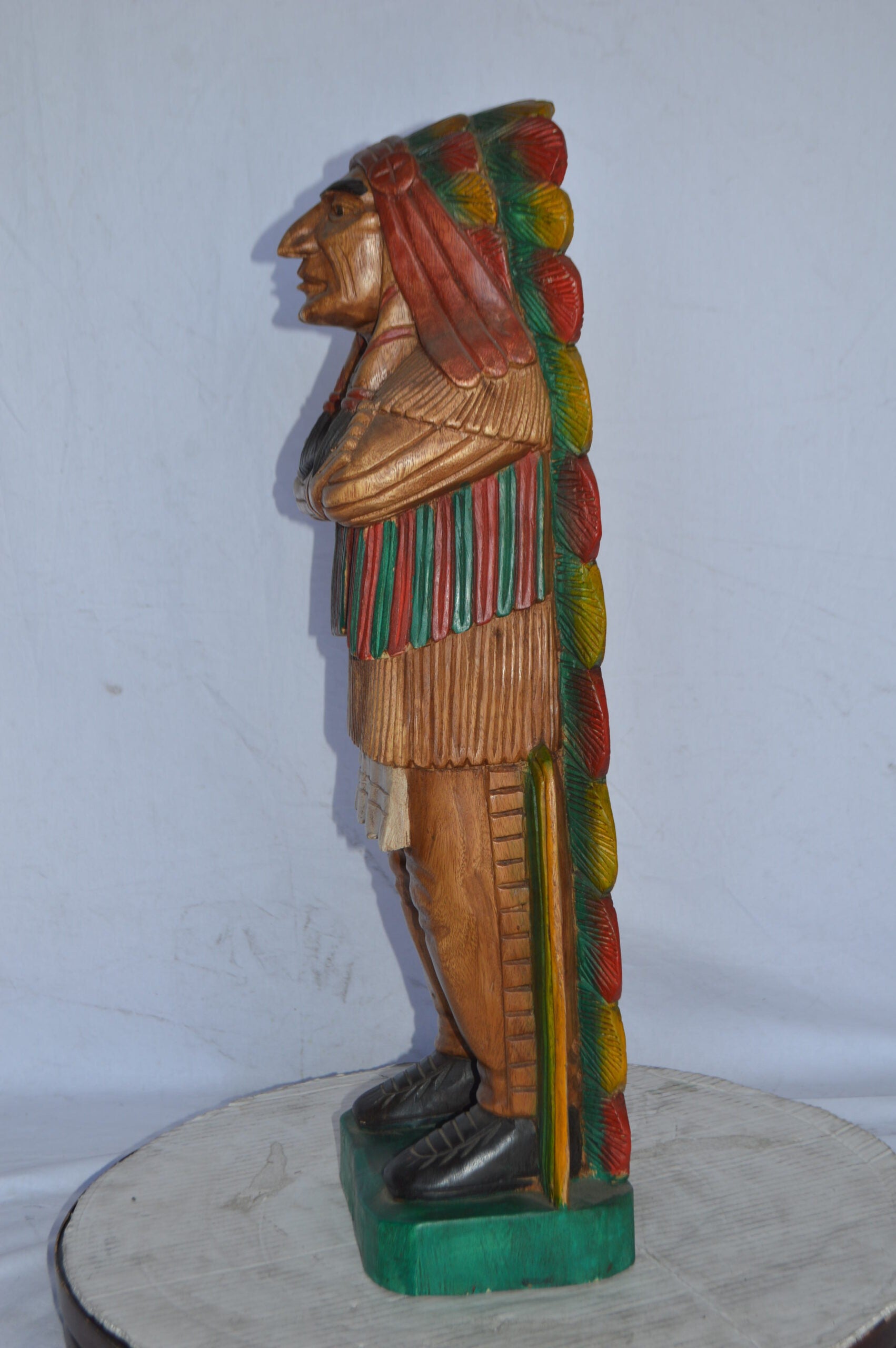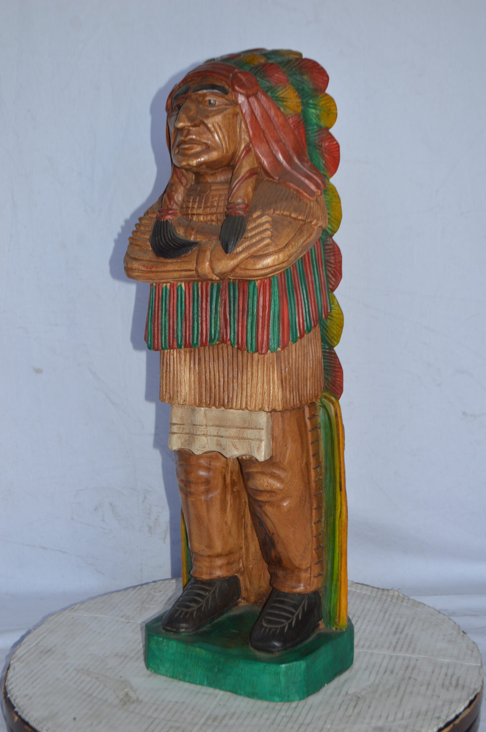 Indian Chief Made of Wood Statue - Medium - Size: 7"L x 10"W x 30"H.