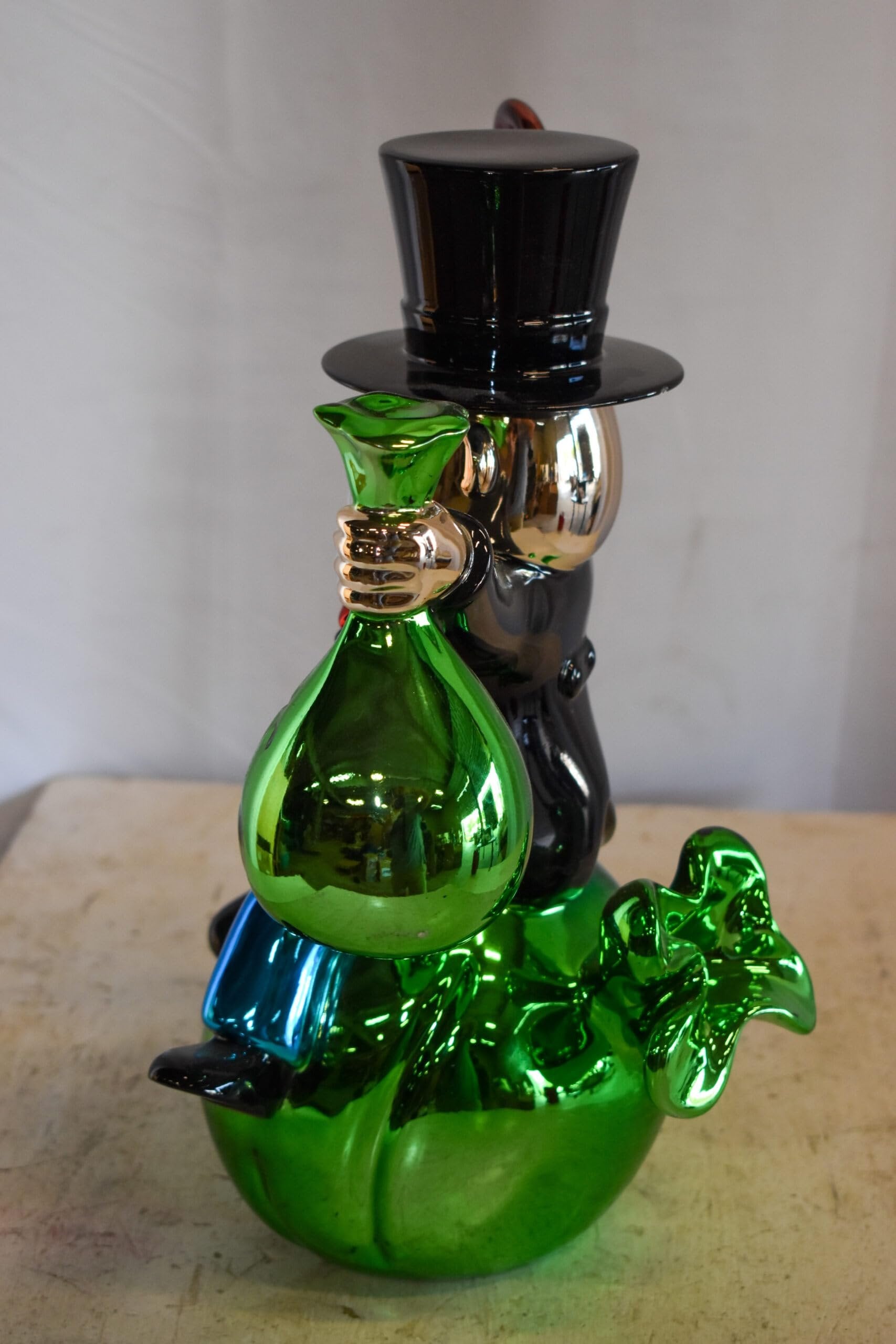 This resin statue of a Monopoly Man happily sitting on a money bag embodies modernisn, creativity, and youth. The chrome finishing emphasizes the detail and artistry of the piece, making it an adorable addition to any space. Size: 12"L x 10"W x 16"H. Weight is: 8Lb