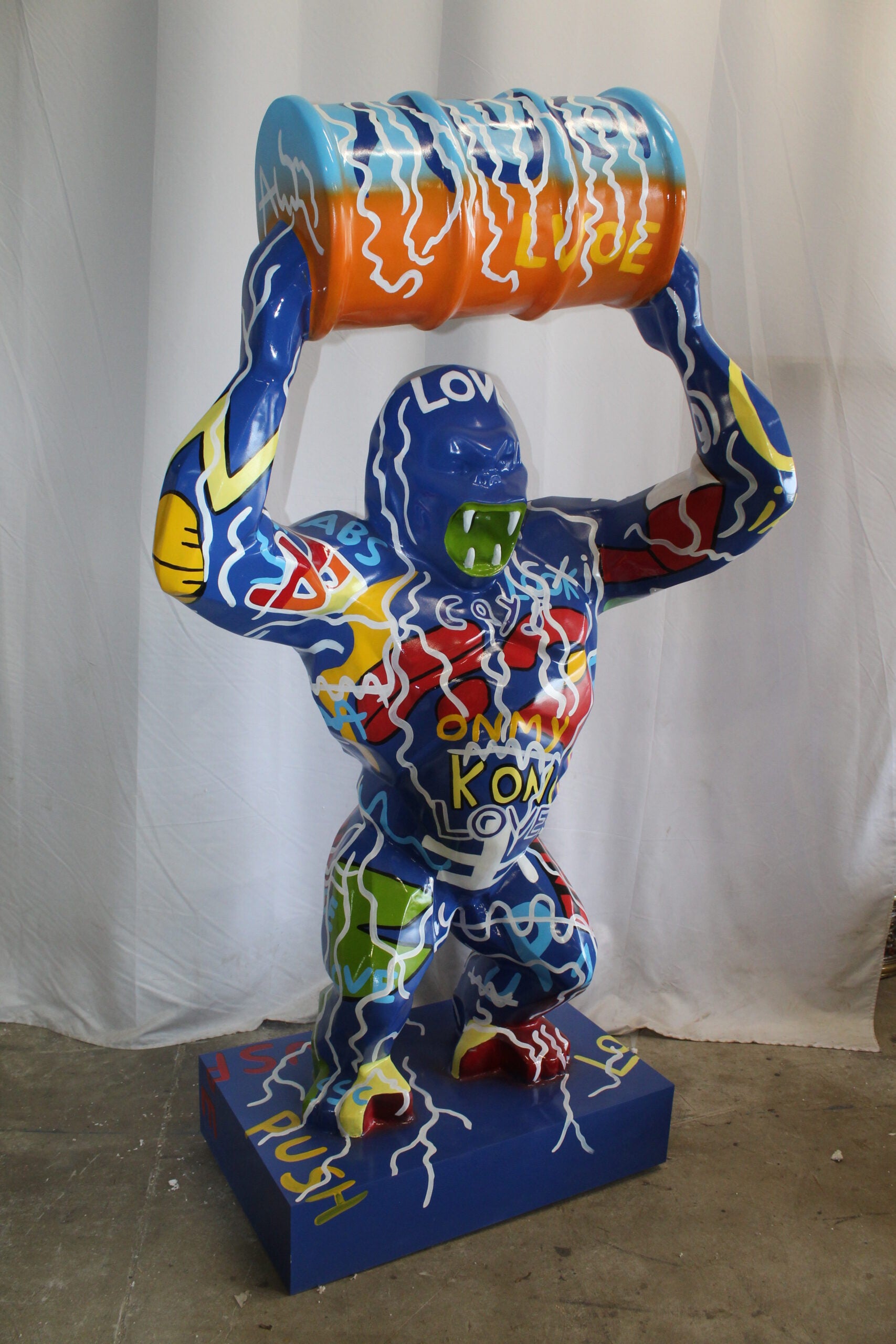 King Kong With Barrell Modern Graffiti Resin Statue on Base 47" x 21" x 60"H