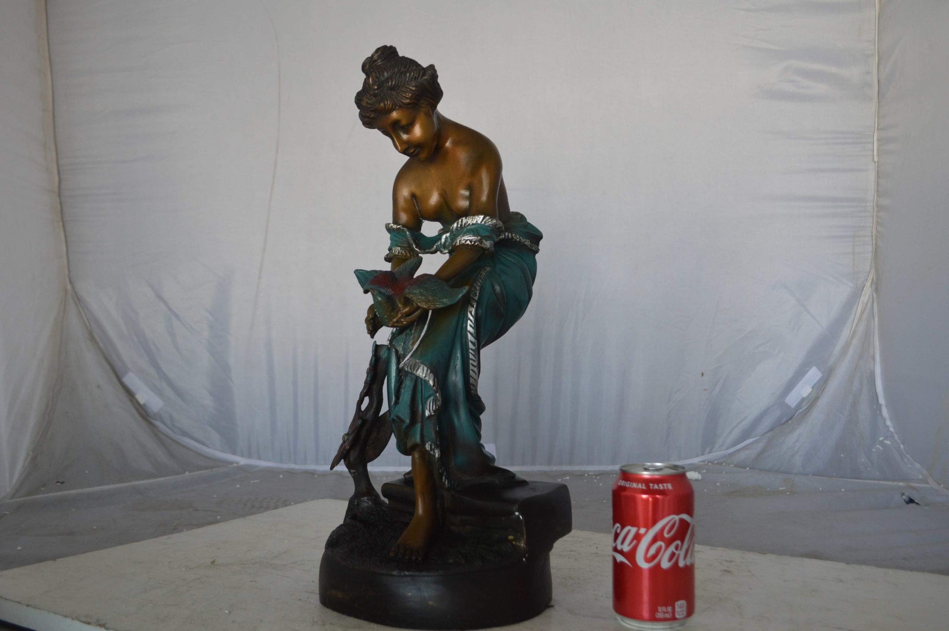 Lady holding a bird bronze statue - Size: 10"L x 9"W x 20"H.