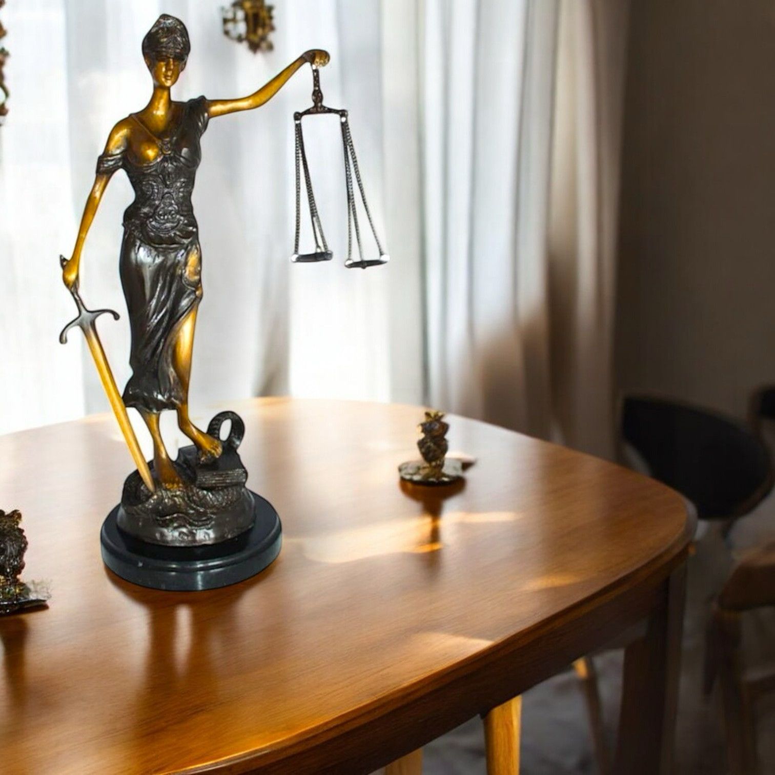 Lady Justice Bronze Statue - Size: 6"L x 6"W x 18"H.