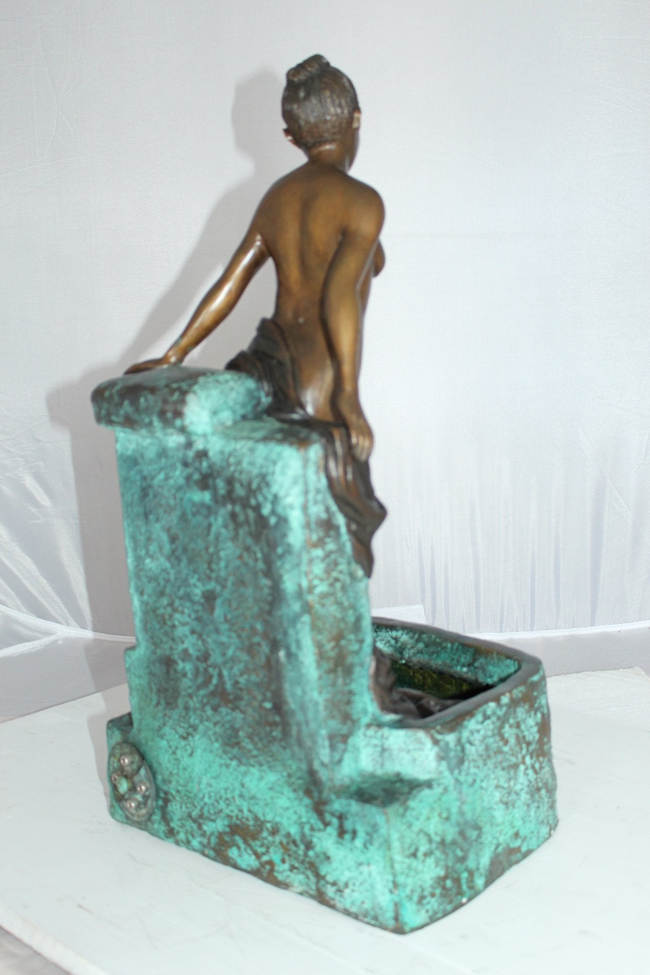 Lady on Wall fountain Bronze Statue Art Nude - Size: 12"L x 9"W x 21"H.