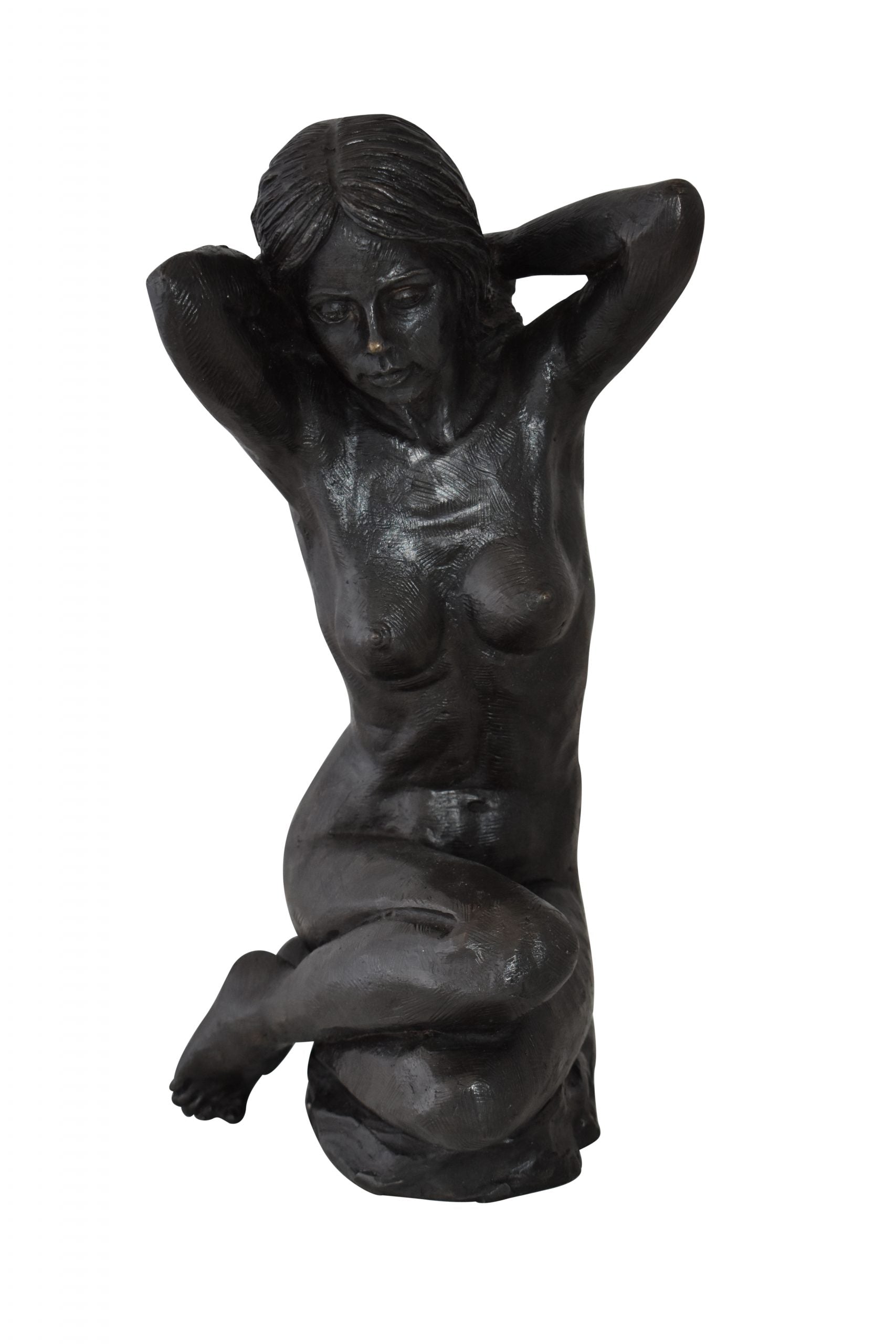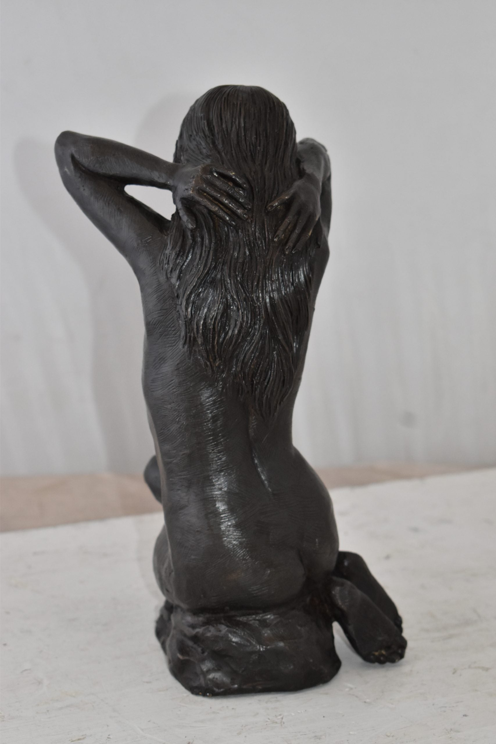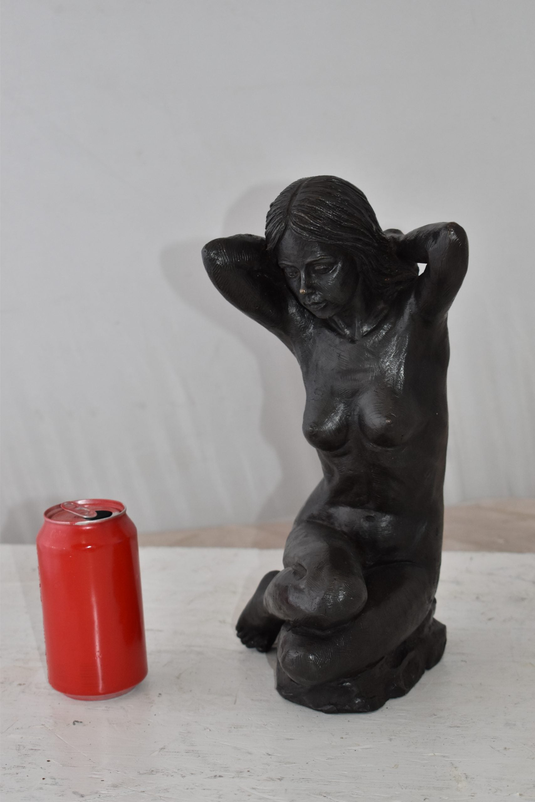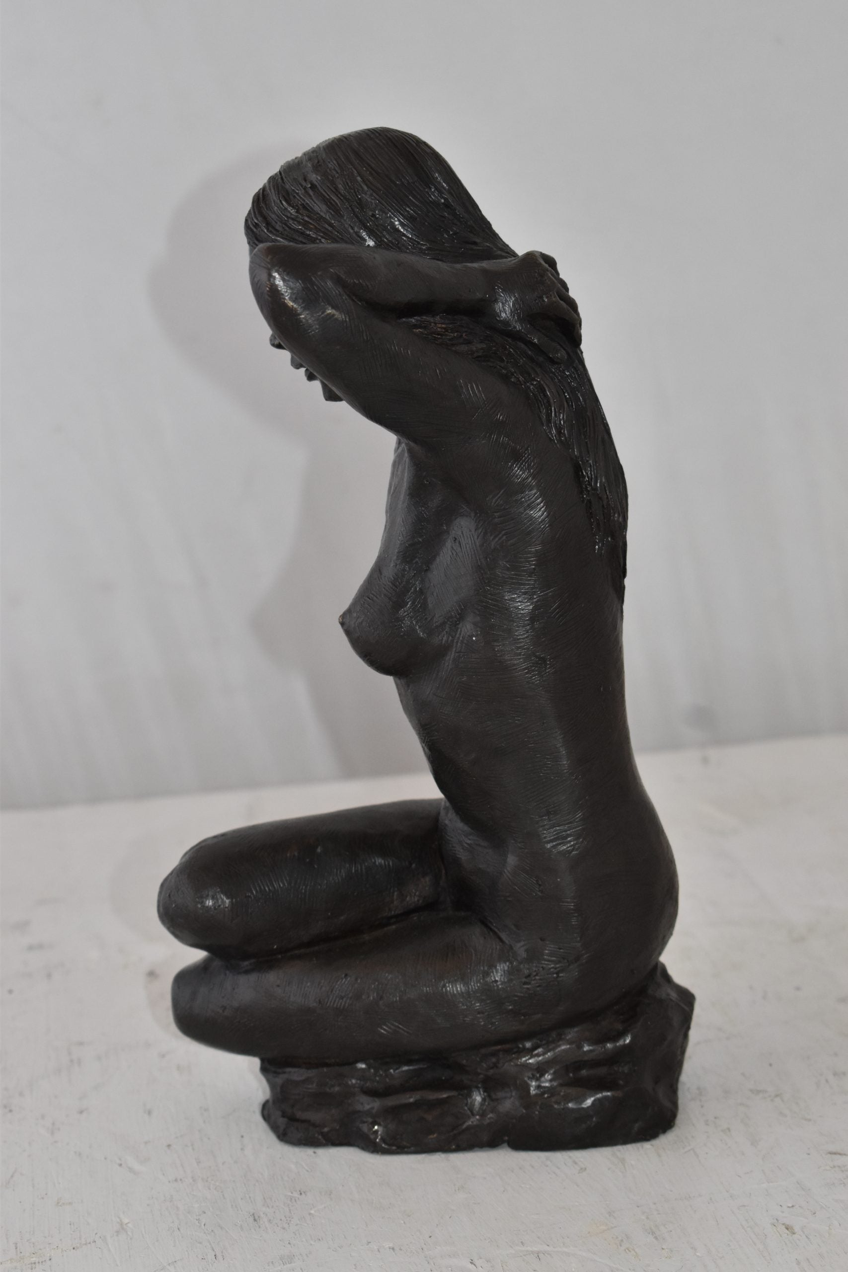 This charming bronze statue depicts Beautiful Young Lady sitting nude mounted on a bronze base. This very fine and unique abstract was casted using the ancient old Lost Wax Method with brown patina finish for preservation, handmade, from pure bronze. This beautiful bronze-cast statue will be a valuable addition to any area of the home, office, patio, or garden. Size: 7"L x 8"W x 13"H. Weight is: 8Lb