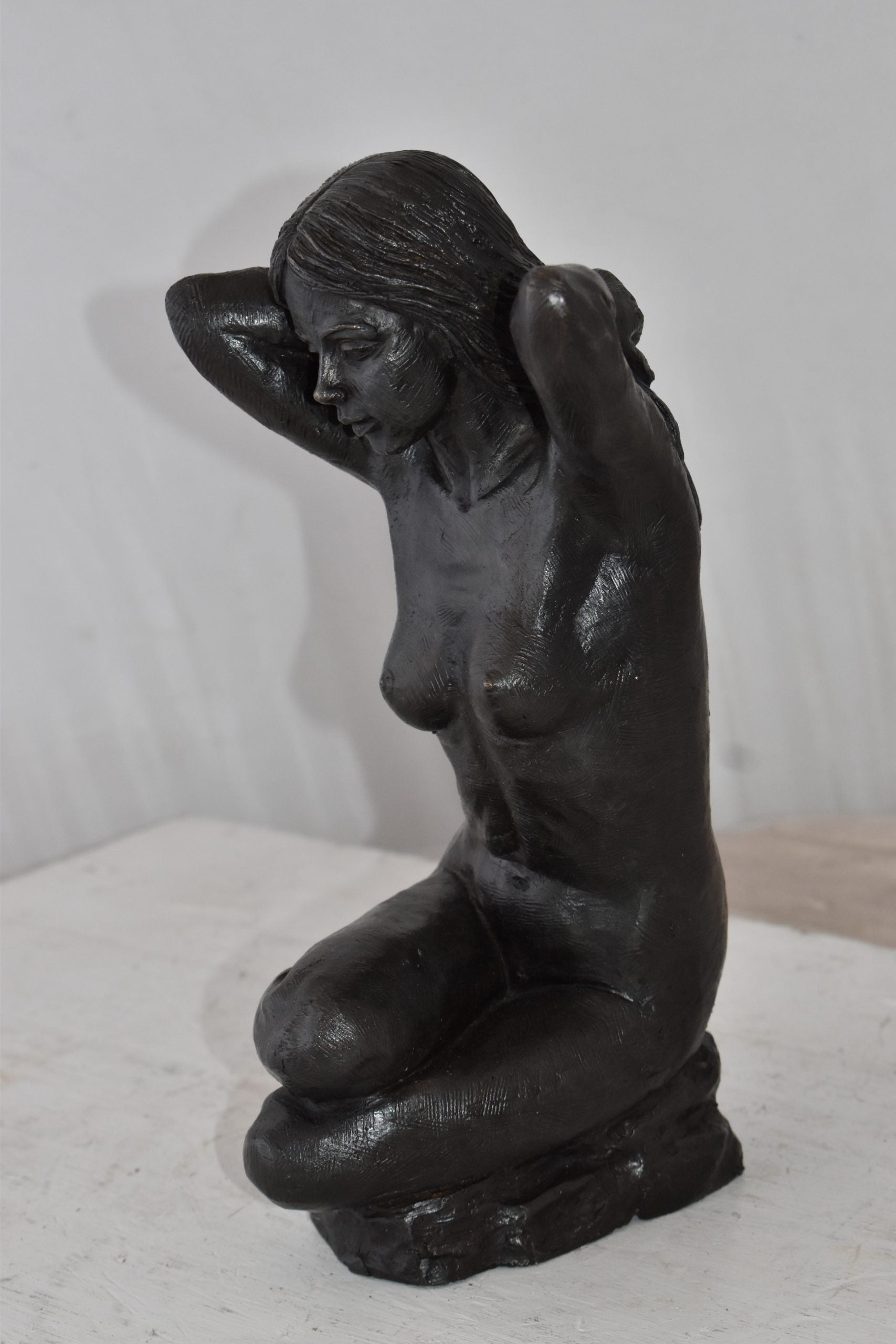 Lady Sitting Art Nude Posing Naked for Artist - Bronze Statue 7" x 8" x 13"H