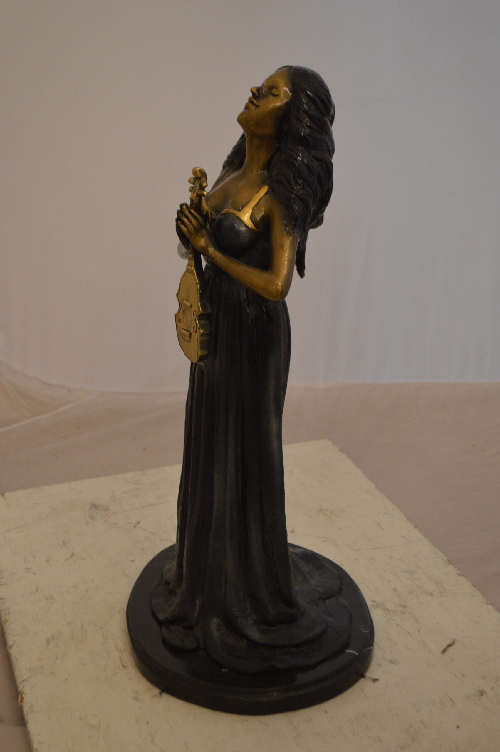 SKU:LadyWithViolinBronzeStatue-S3729