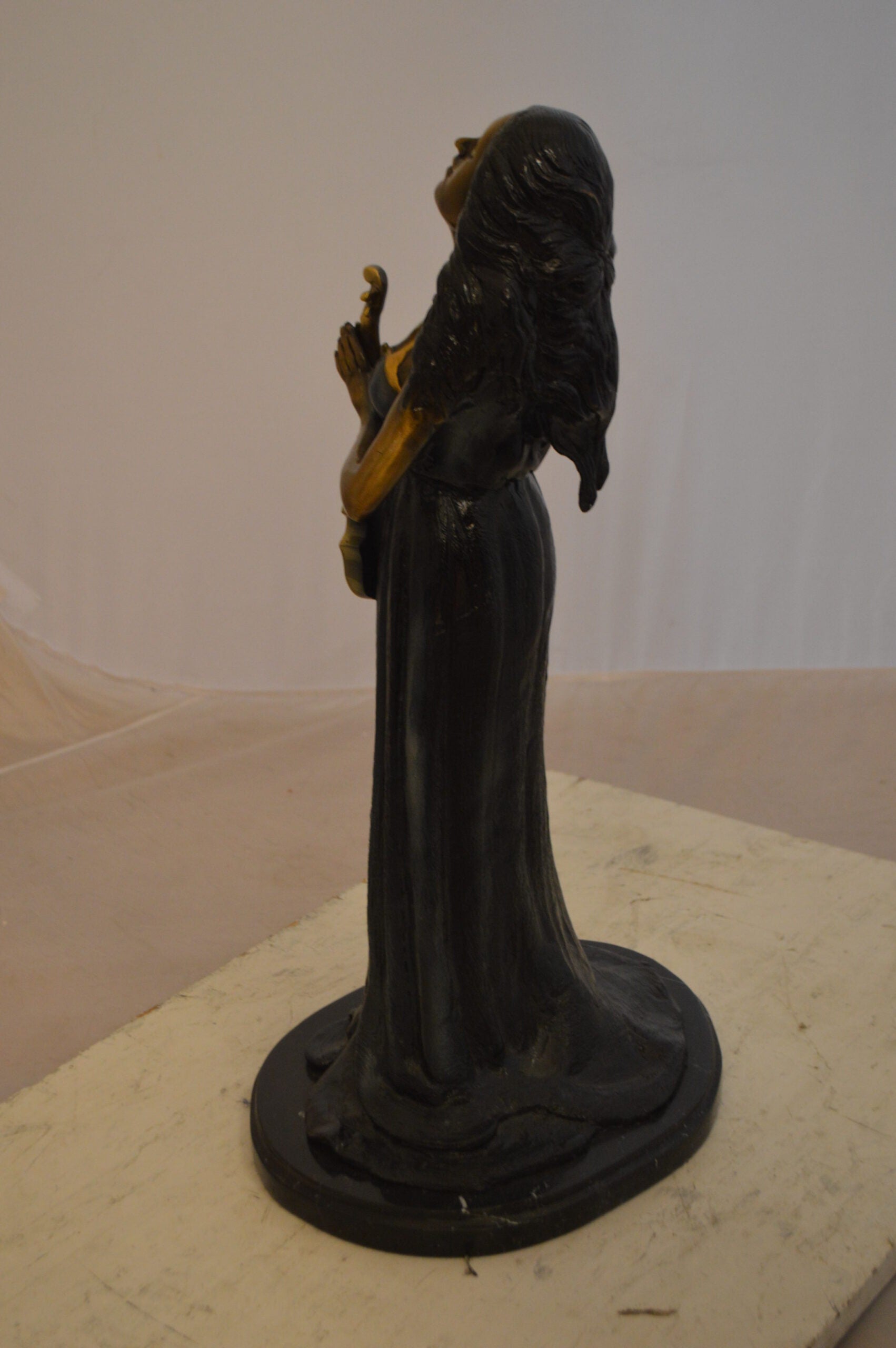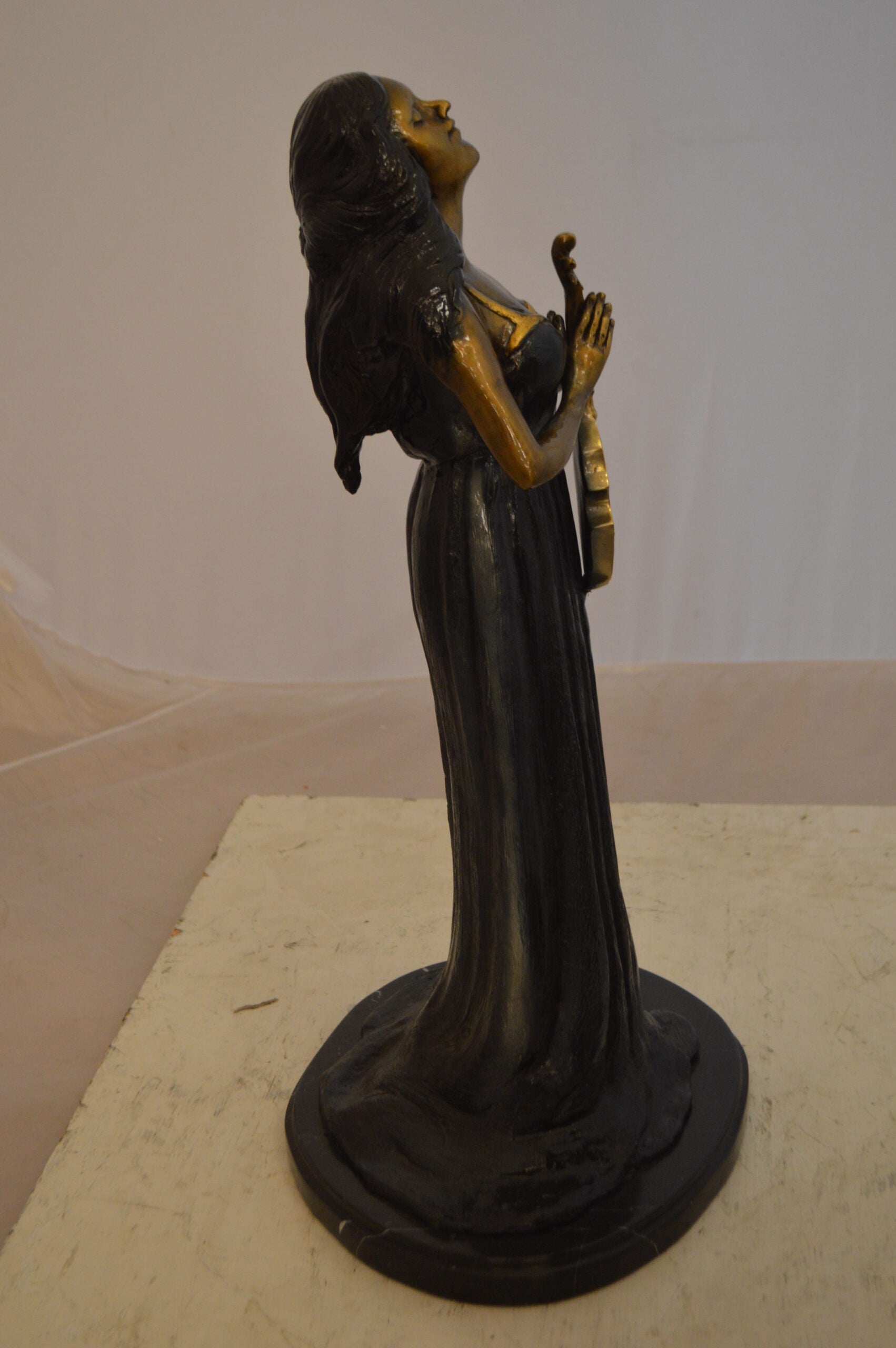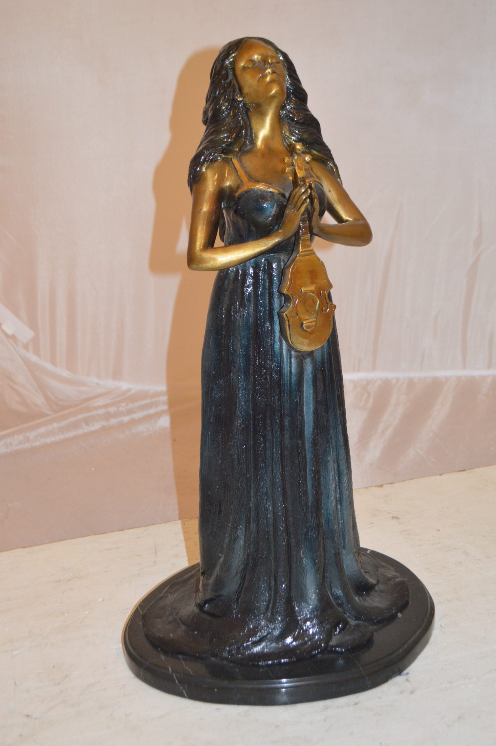 Lady With Violin Bronze Statue - Size: 11"L x 8"W x 23"H.