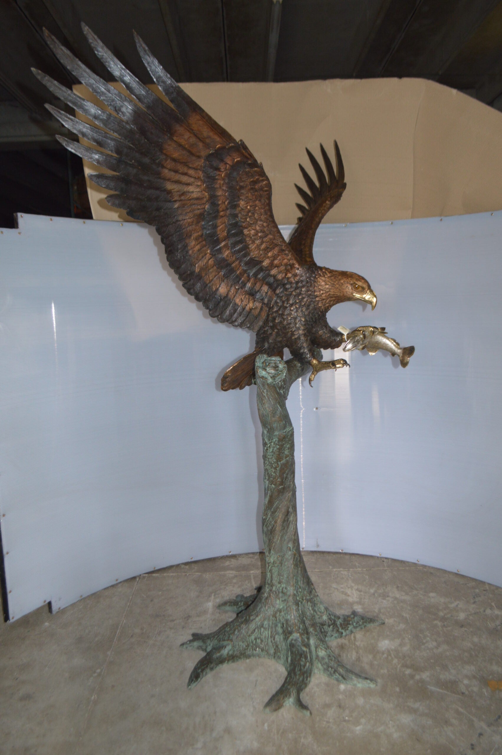 Landing Eagle on a Tree Giant Bronze Statue - Size: 72"L x 36"W x 88"H.