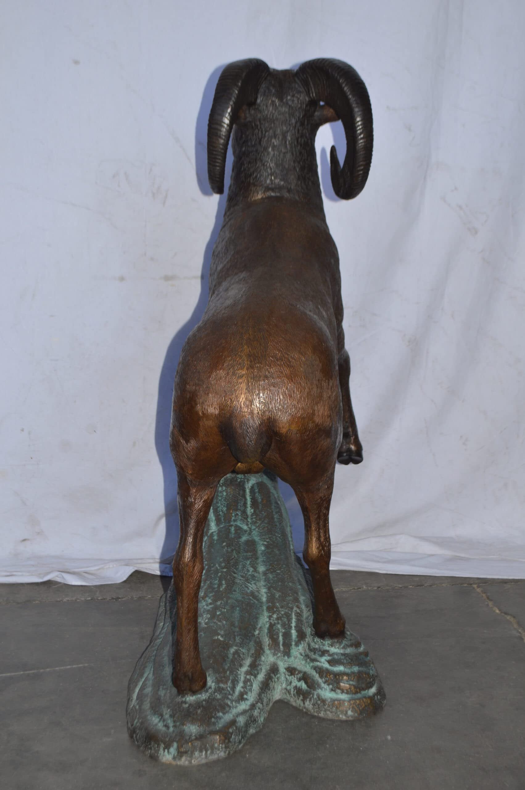 Life Size Ram standing on a rock Bronze Statue - Size: 38"L x 19"W x 45"H.