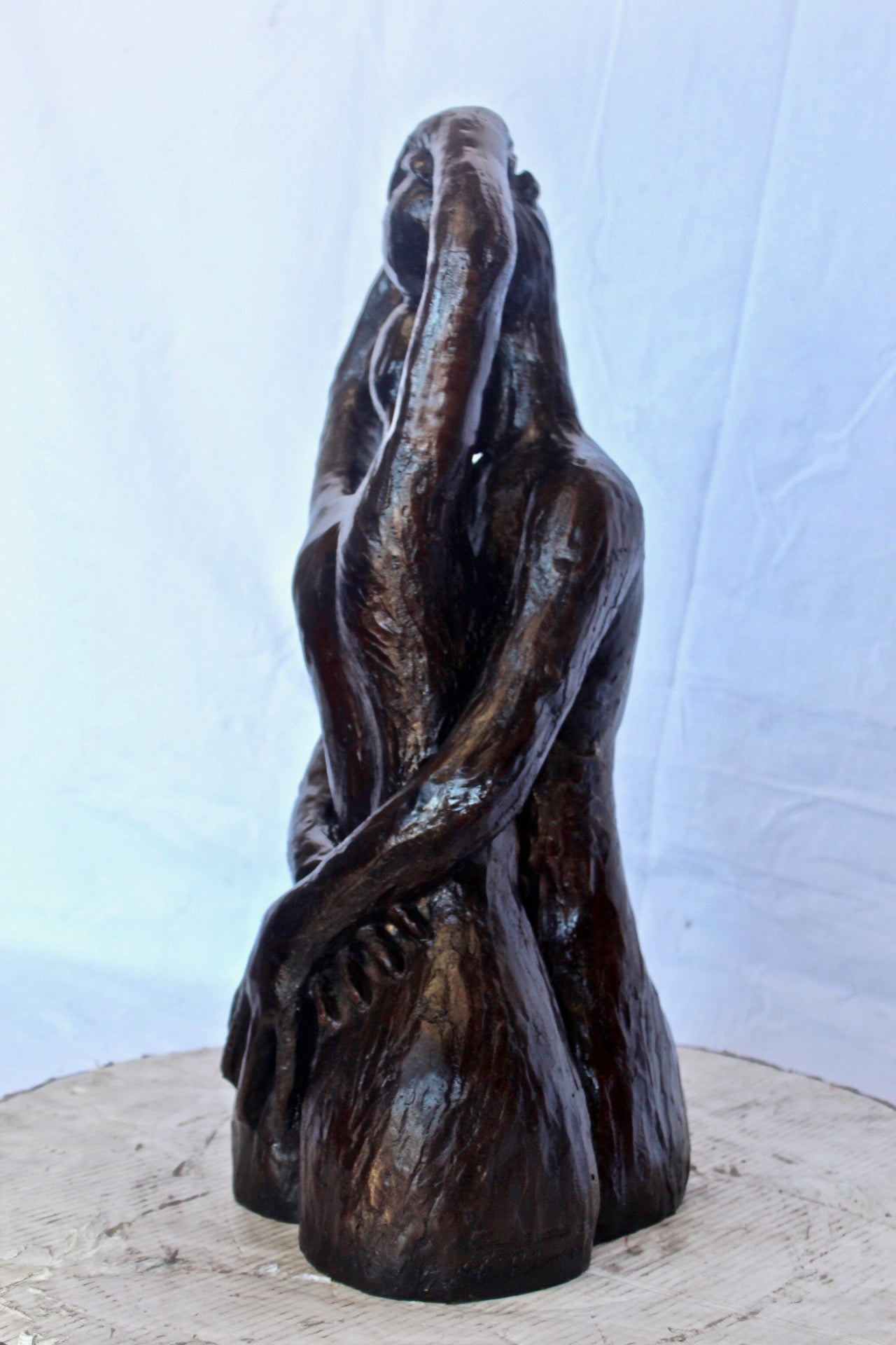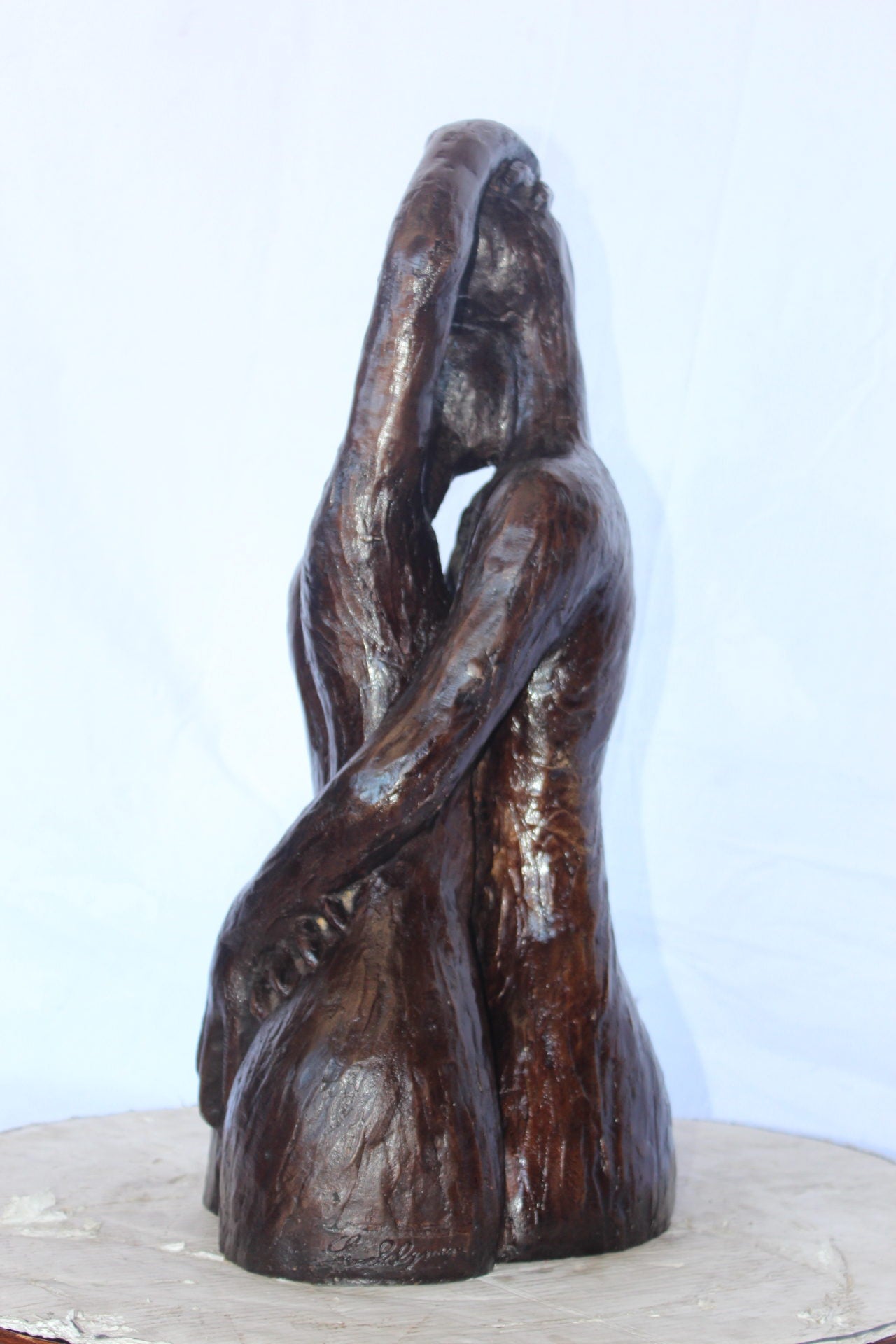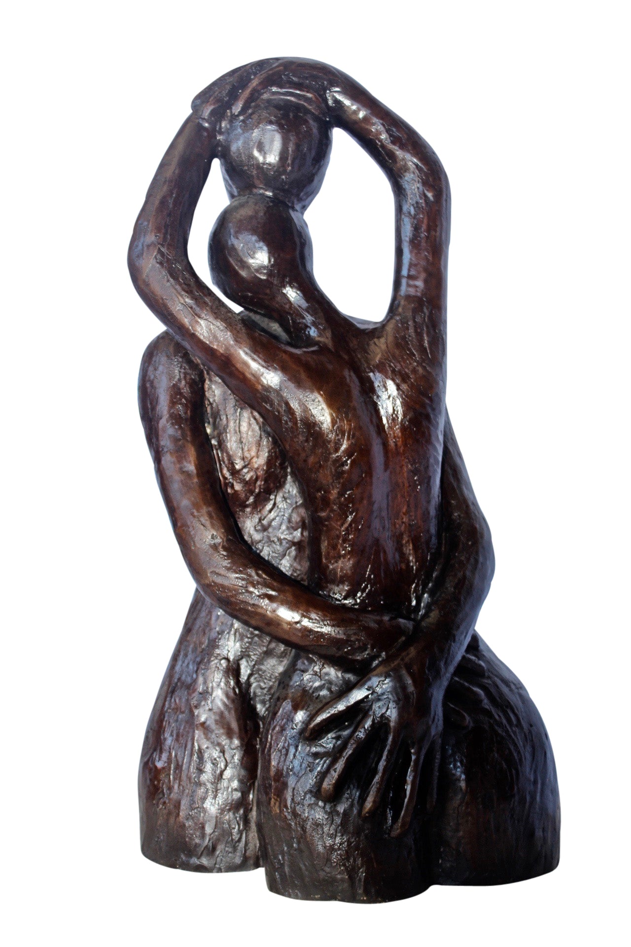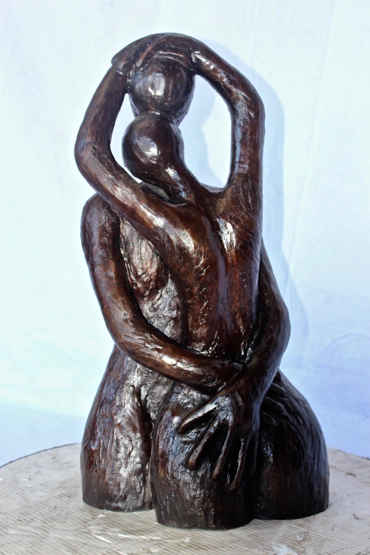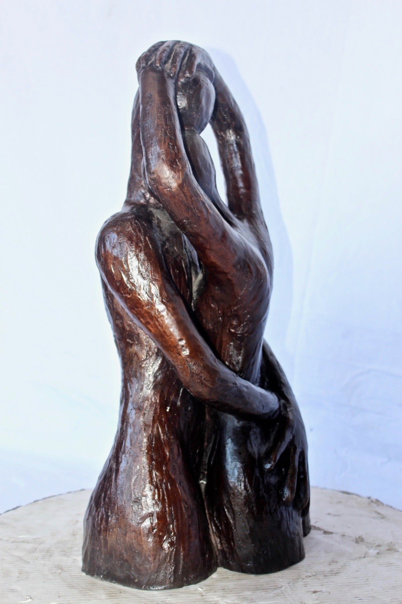 Lovers embracing one another bronze statue - Size: 13"L x 10"W x 24"H.