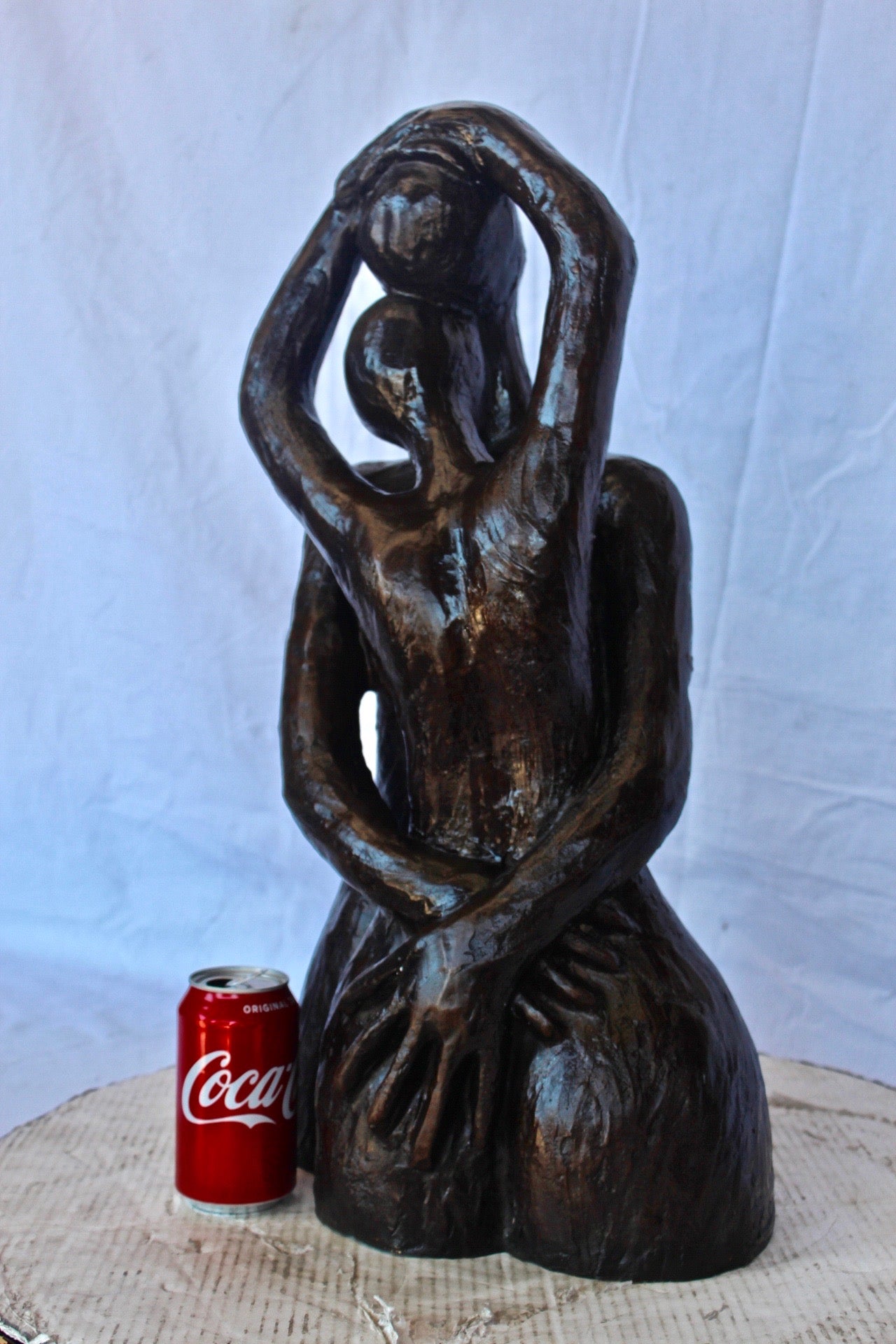 This bronze statue captures the intimacy and love between two lovers and is beautiful in its shape and design. The two sets of arms embracing one another make it a mesmerizing statue for any space. A perfect anniversary gift for any loving couple. Size: 13"L x 10"W x 24"H. Weight is: 22Lb