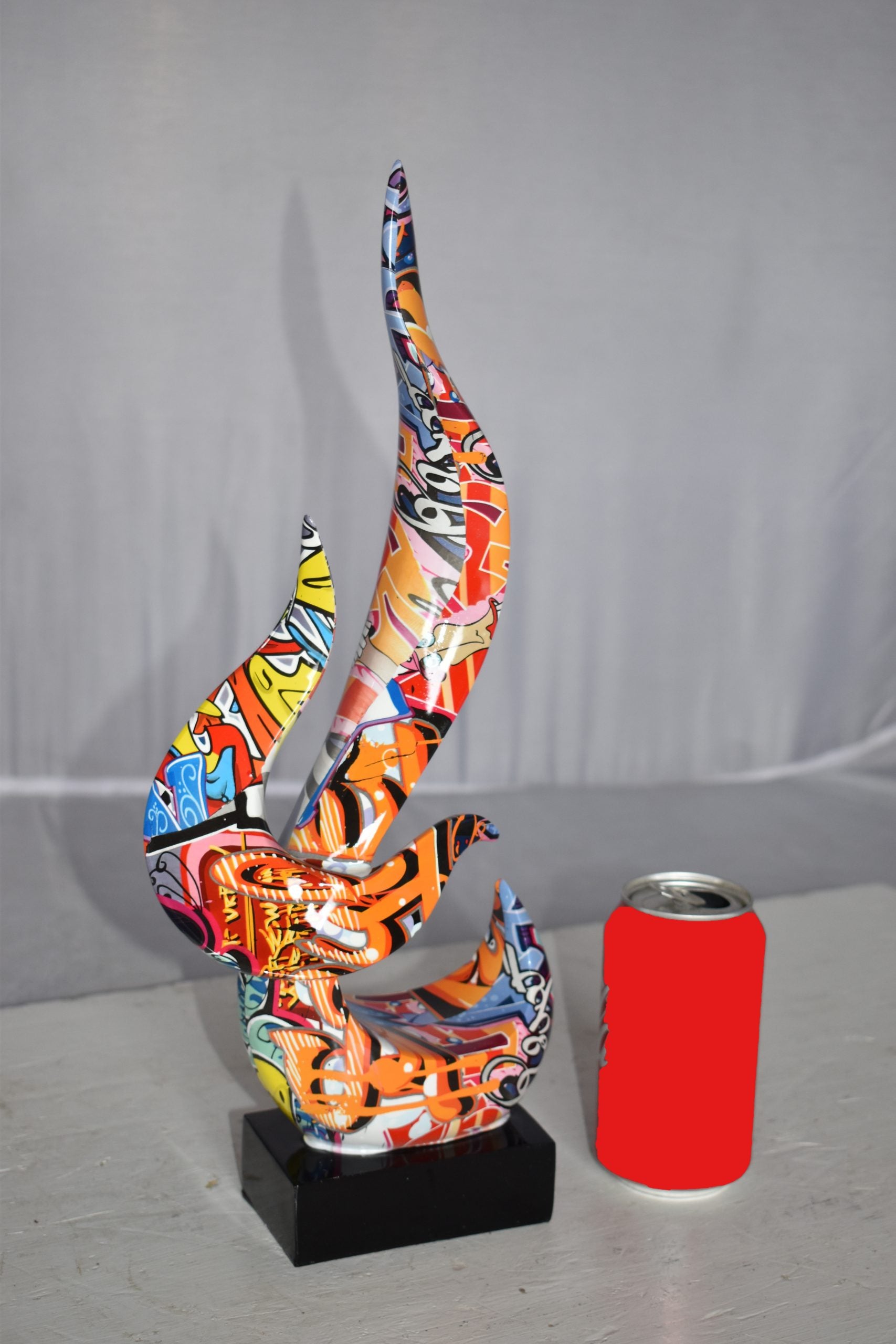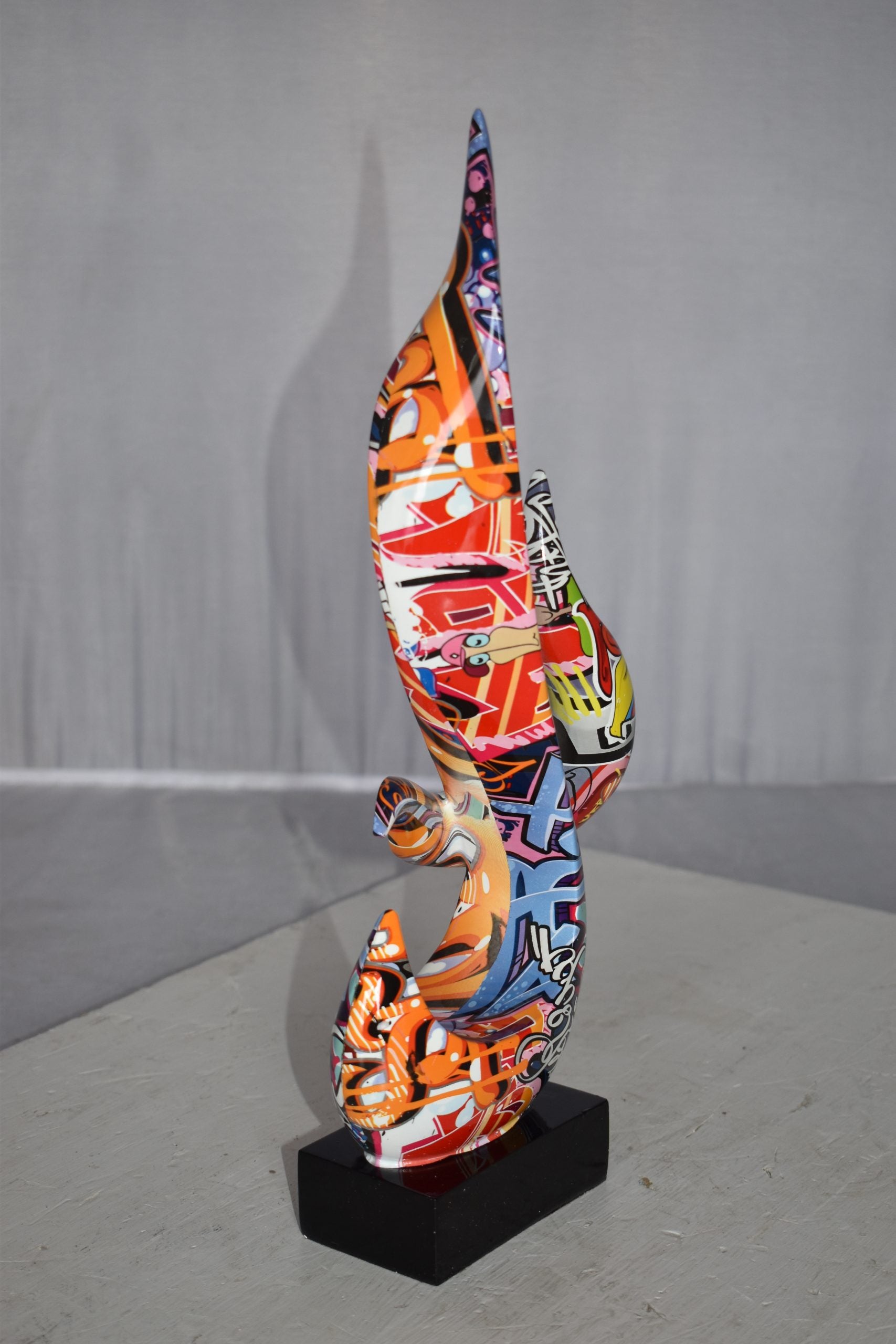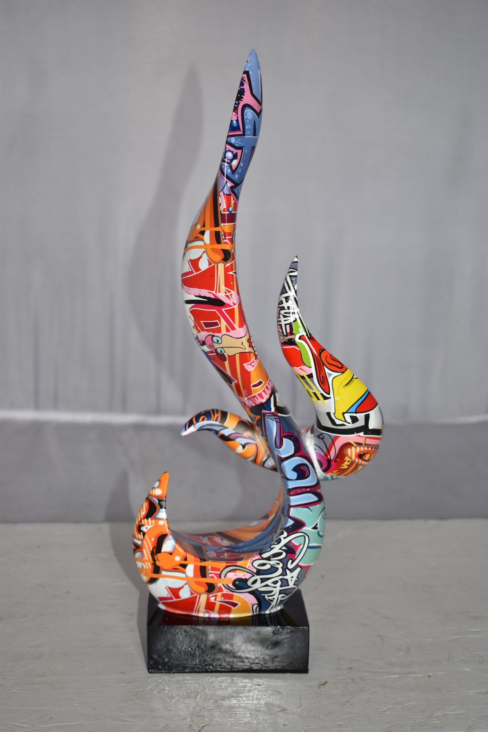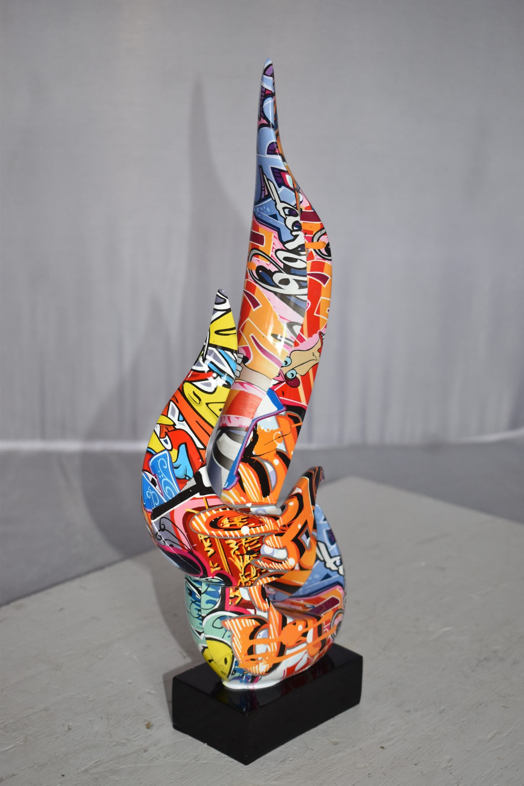 Modern Art Abstract of Fire Painted Graffiti Style Resin Statue 6" x 3" x 16"H