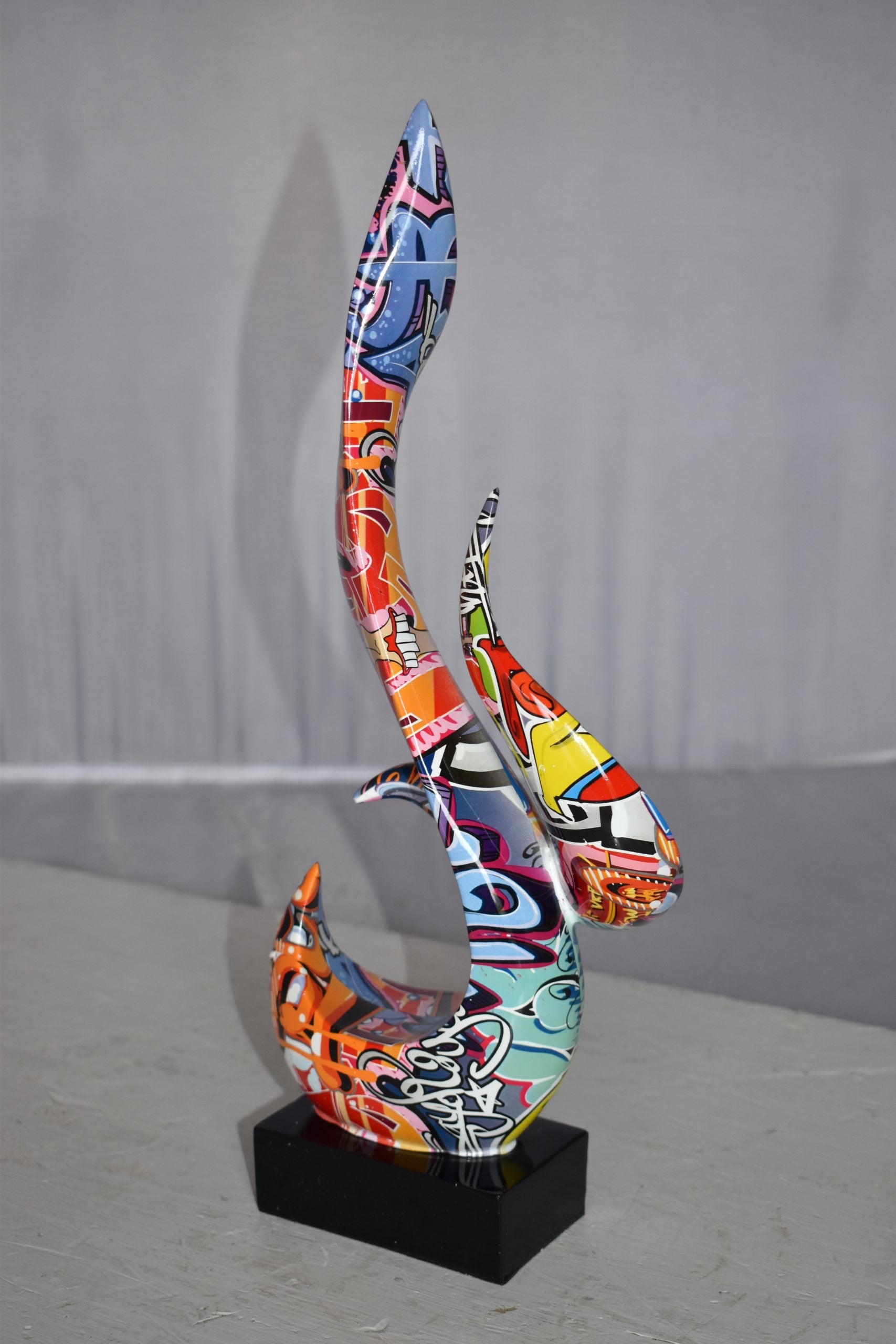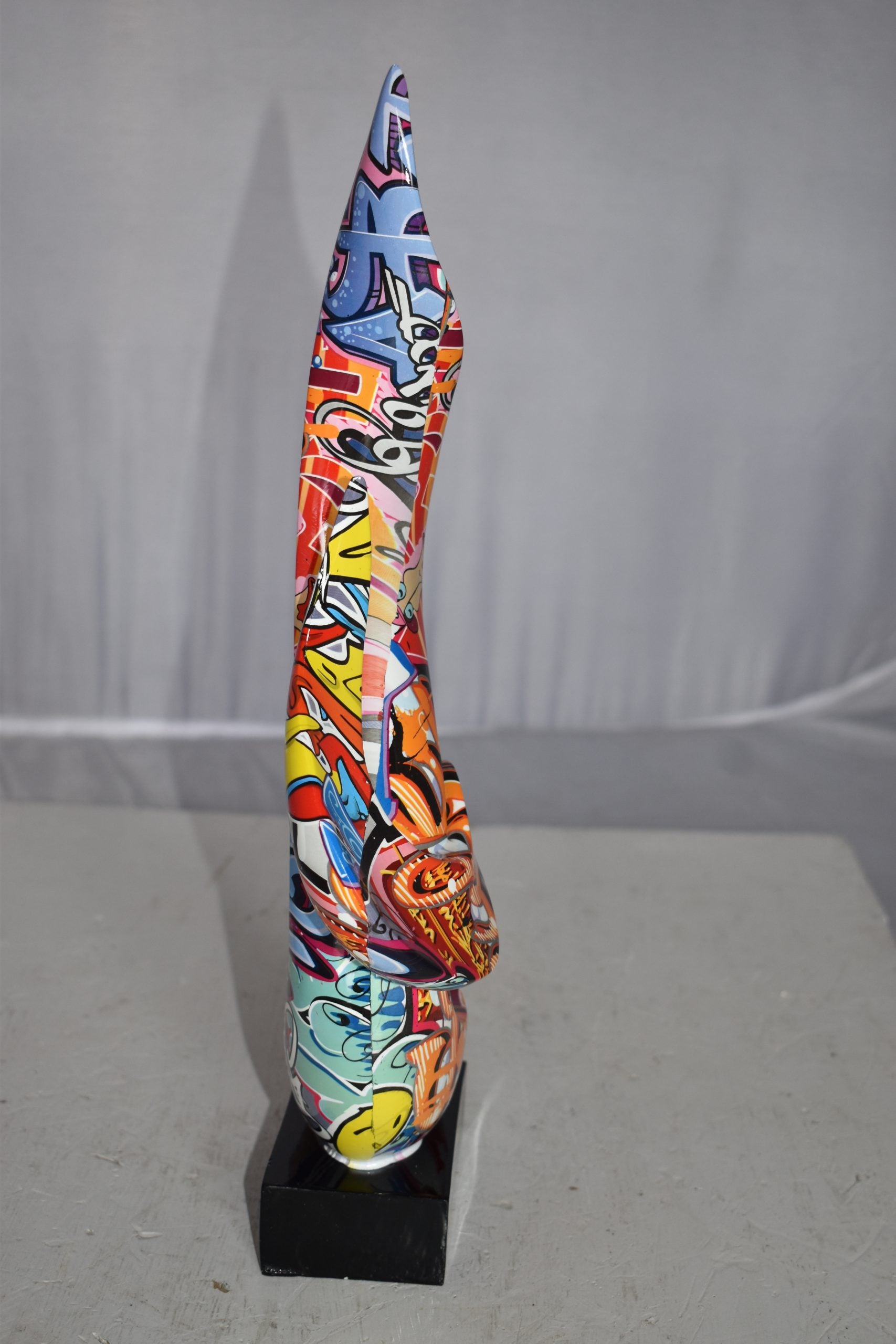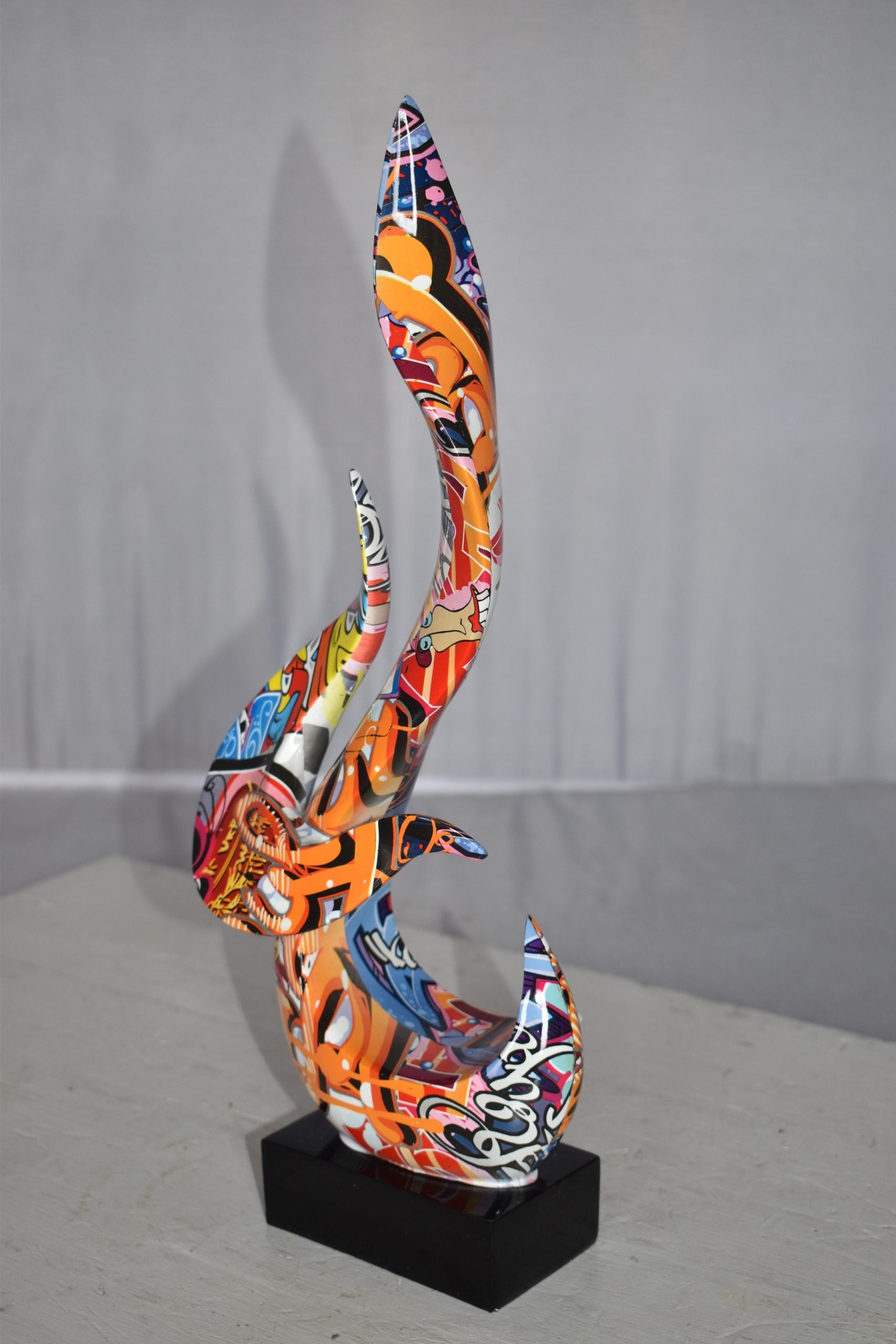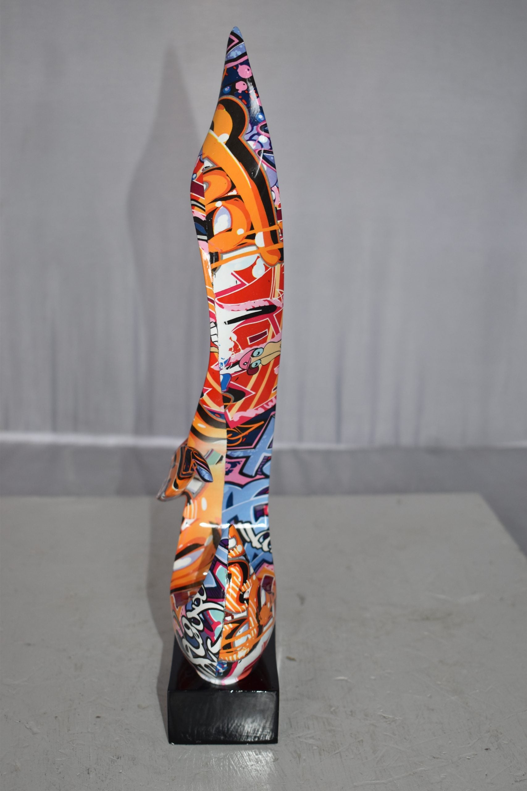 Modern Art Abstract of Fire Painted Graffiti Style Resin Statue 6" x 3" x 16"H