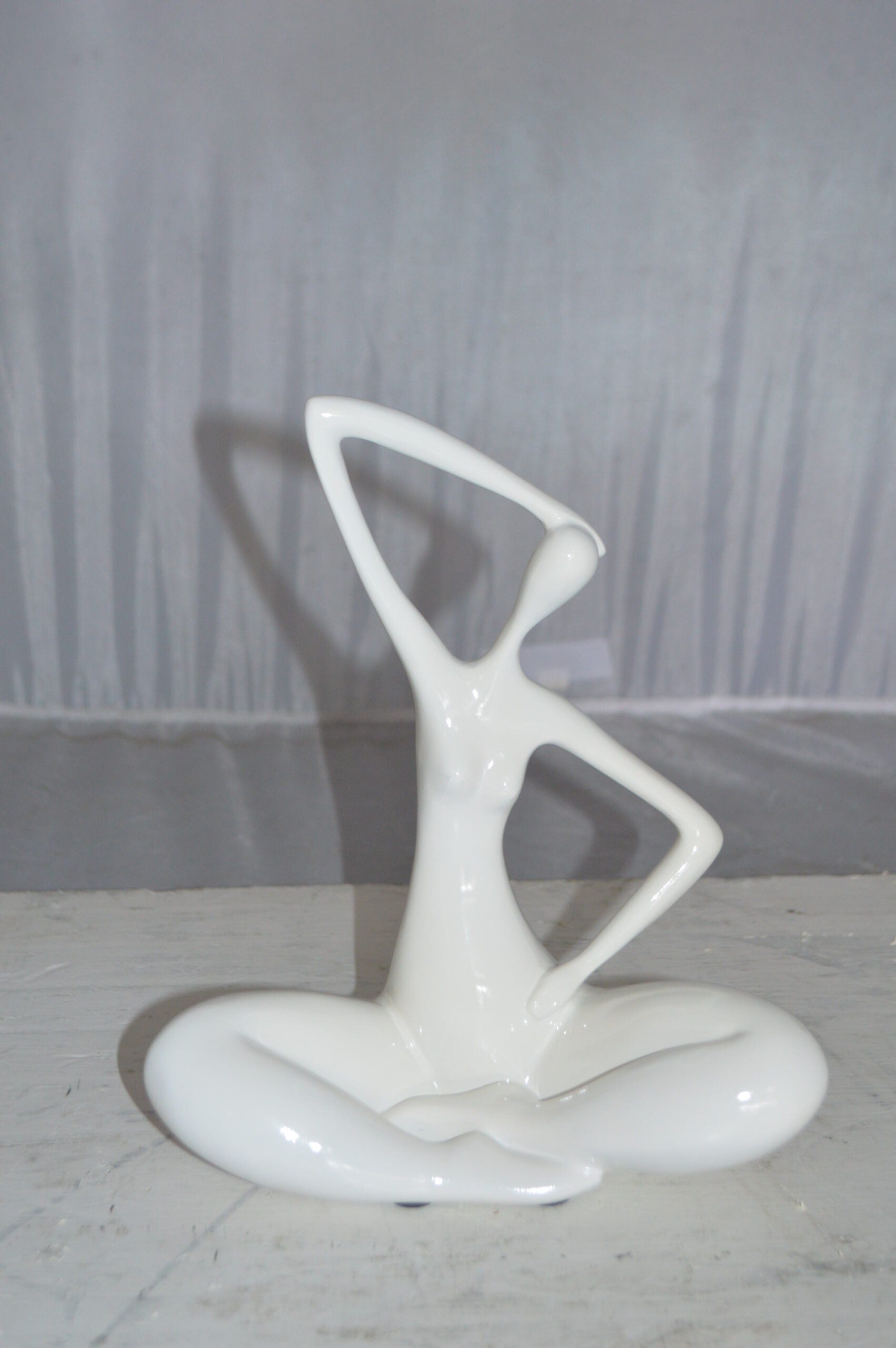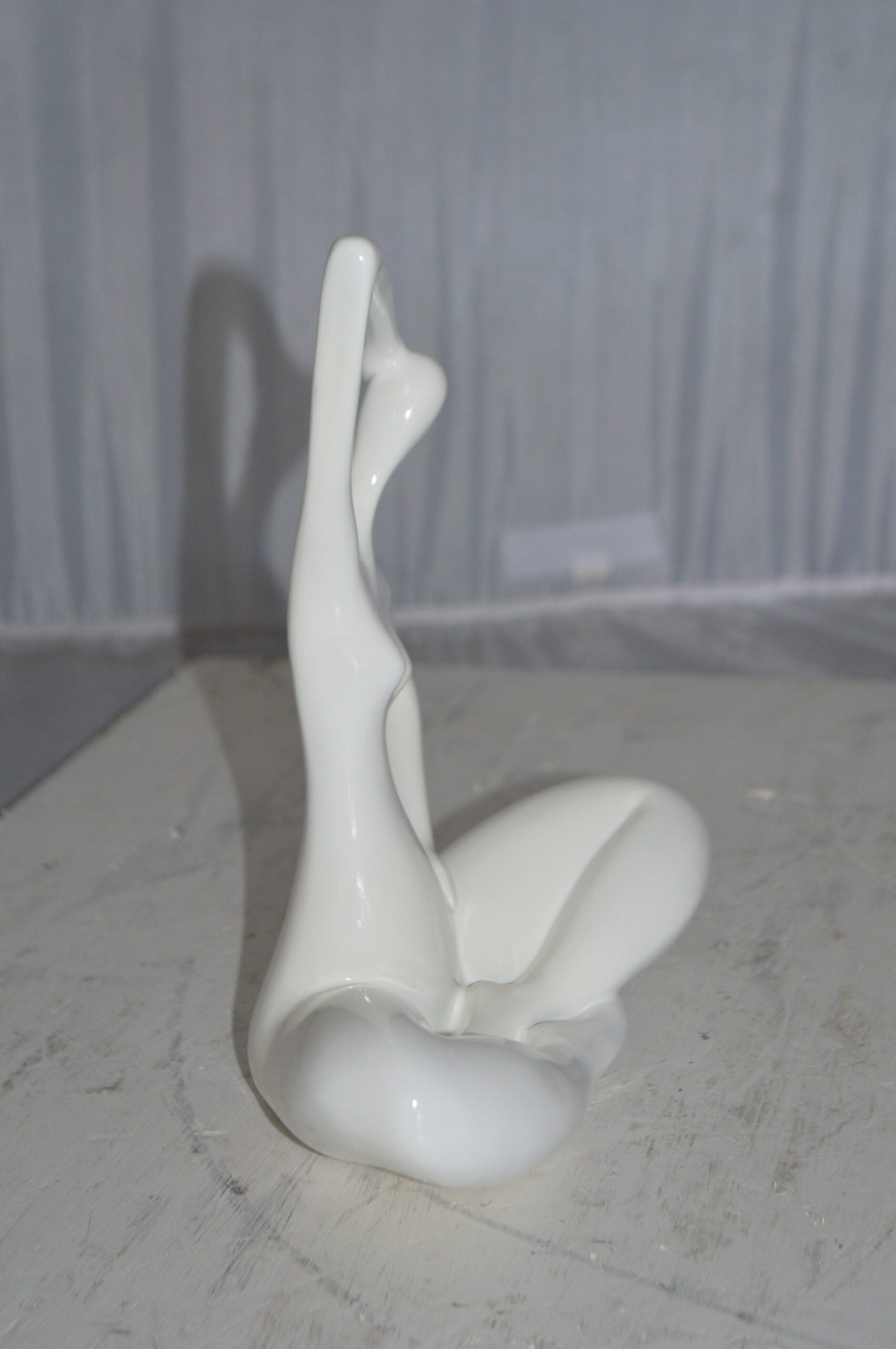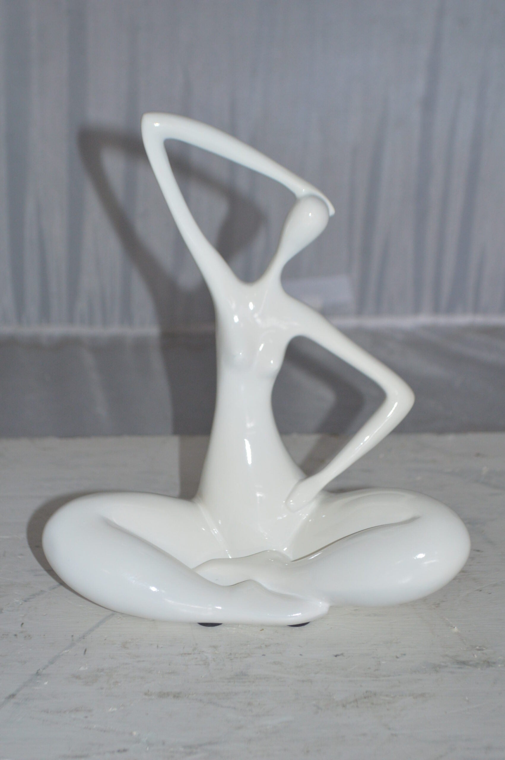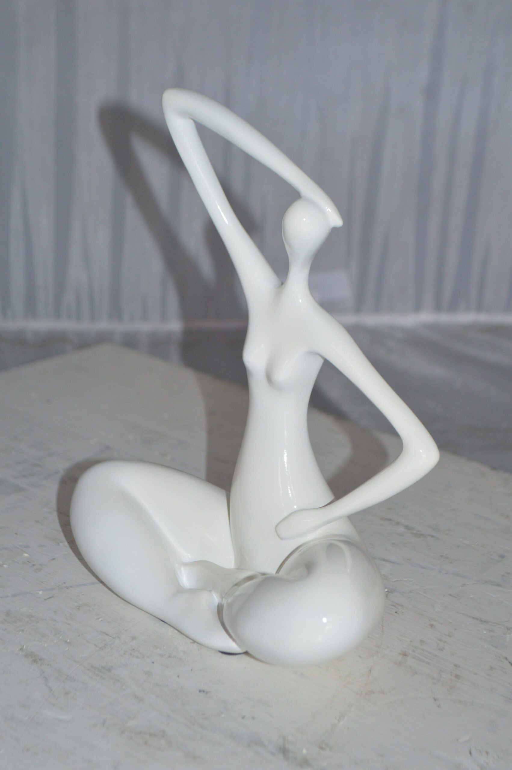 Enjoy this happy looking modern art, resin statue of a White Ballet Dancer Sitting. This modern abstract would be a great addition to your home. Resin casting is a method of plastic casting where a mold is filled with a liquid synthetic resin, which then hardens. Size: 9"L x 5"W x 11"H. Weight is: 3Lb